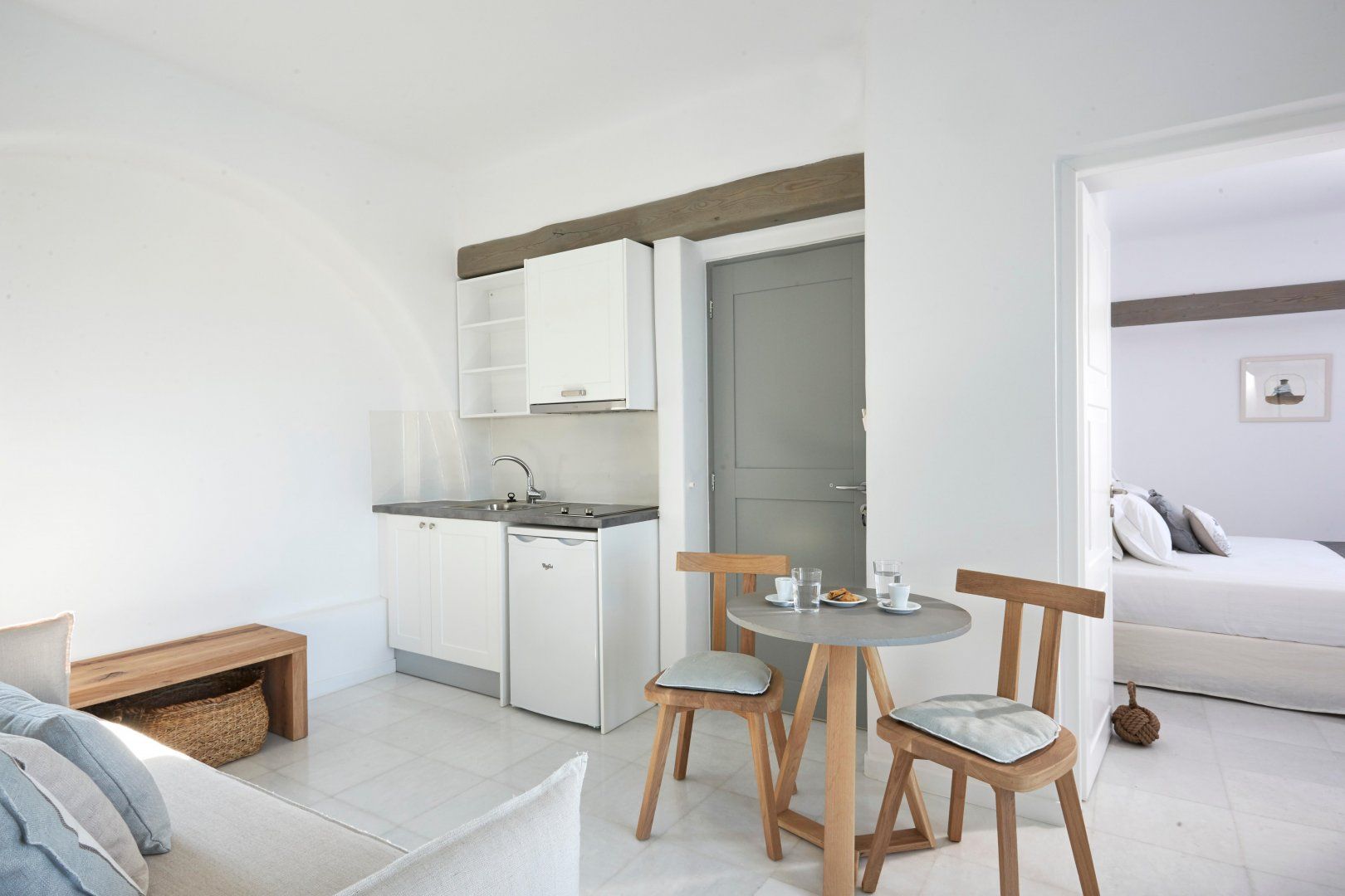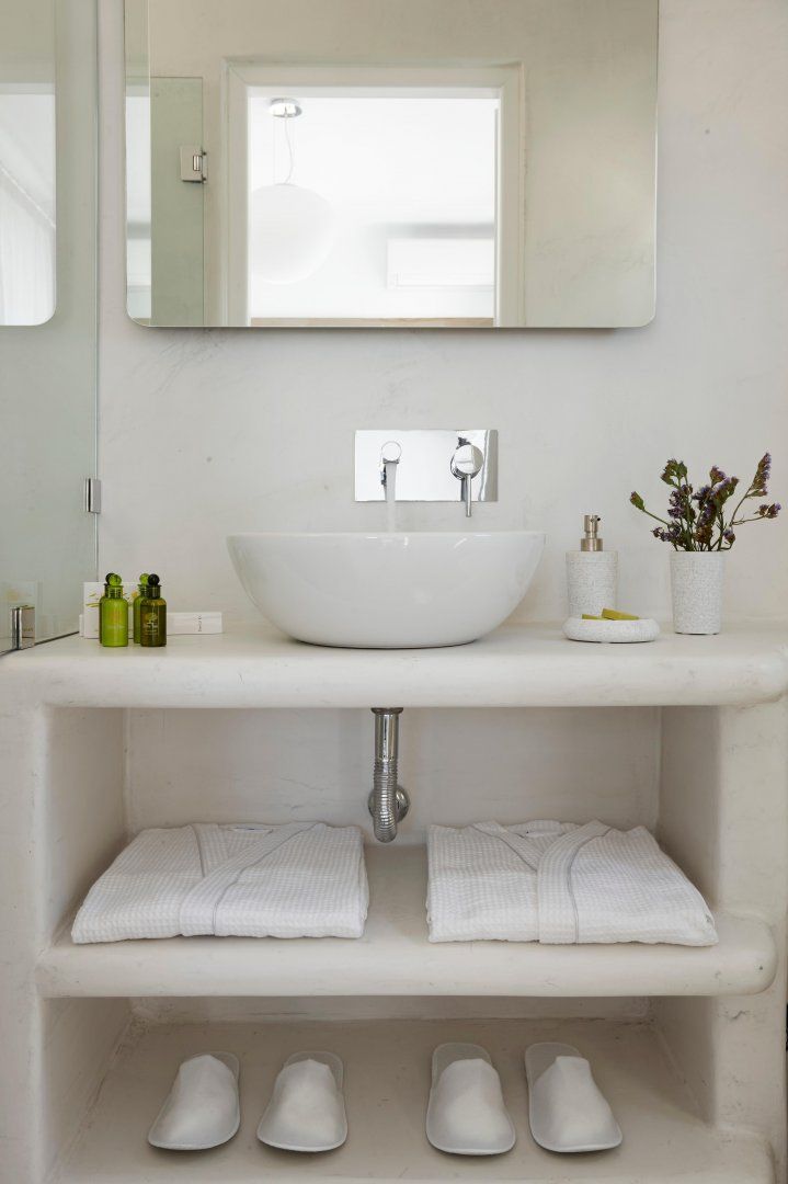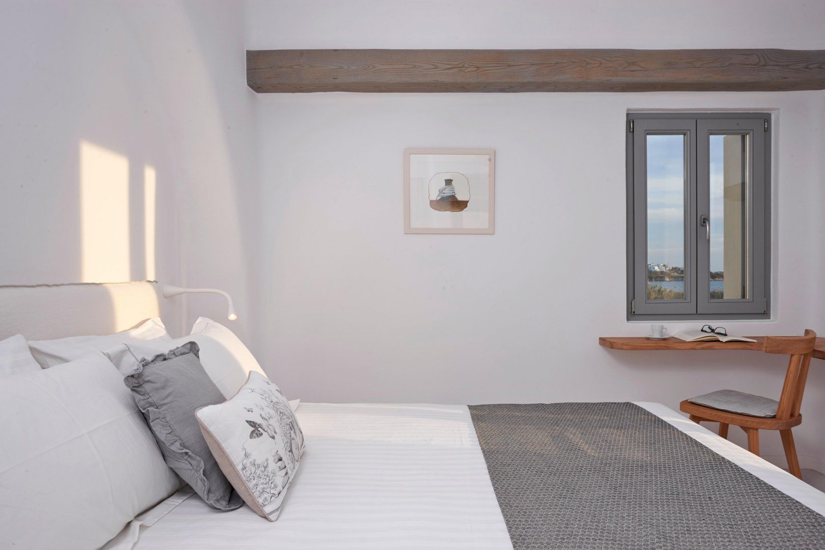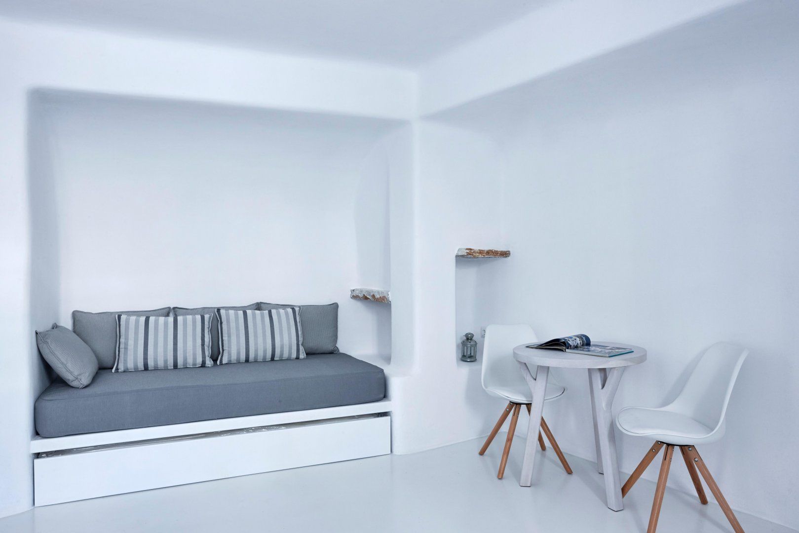 Inside, the home is clean and fresh, with touches of traditional Grecian architecture including organic wall alcoves and wooden ceiling beams. The overall mood is laidback and stress-free, setting the tone for your stay here.
