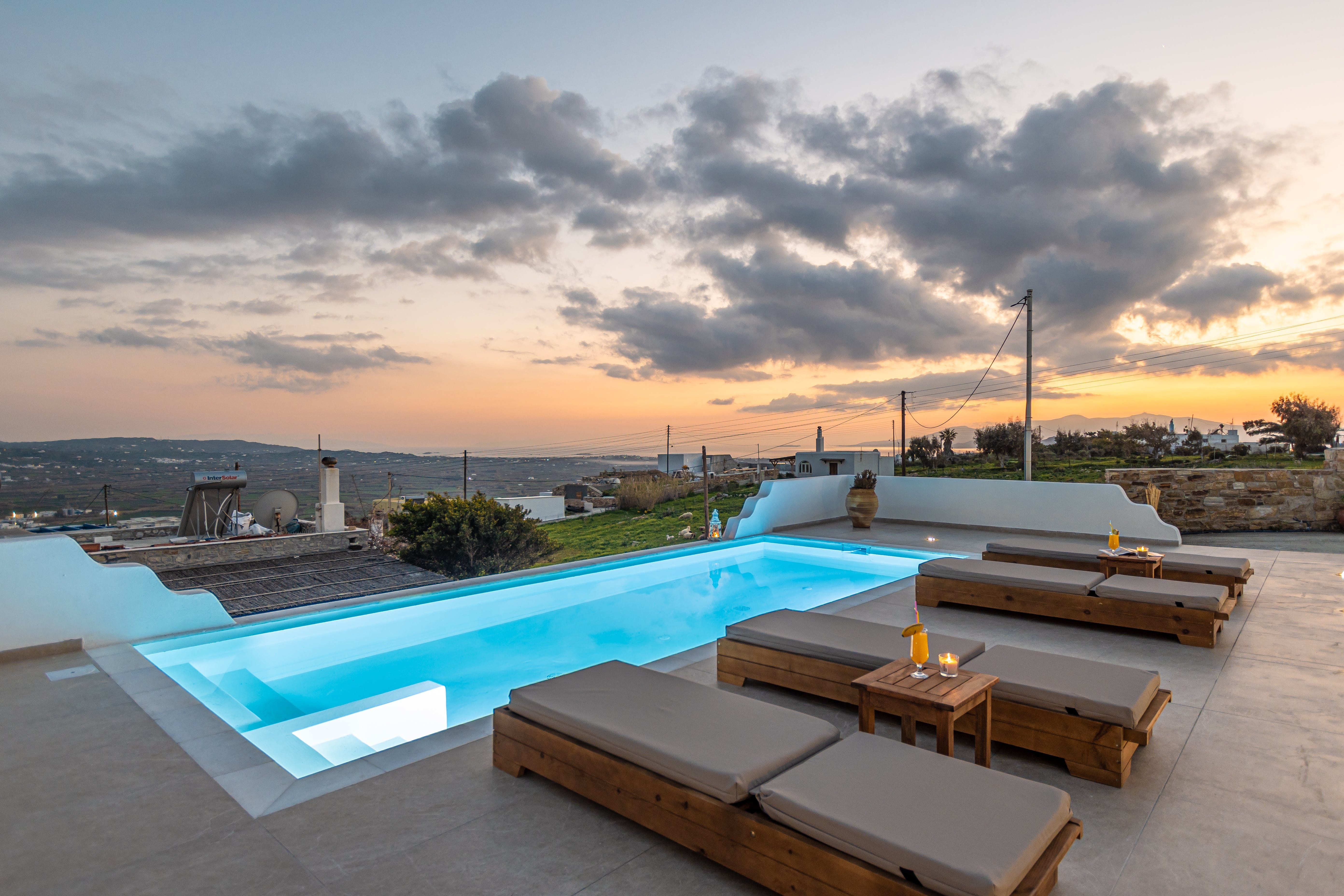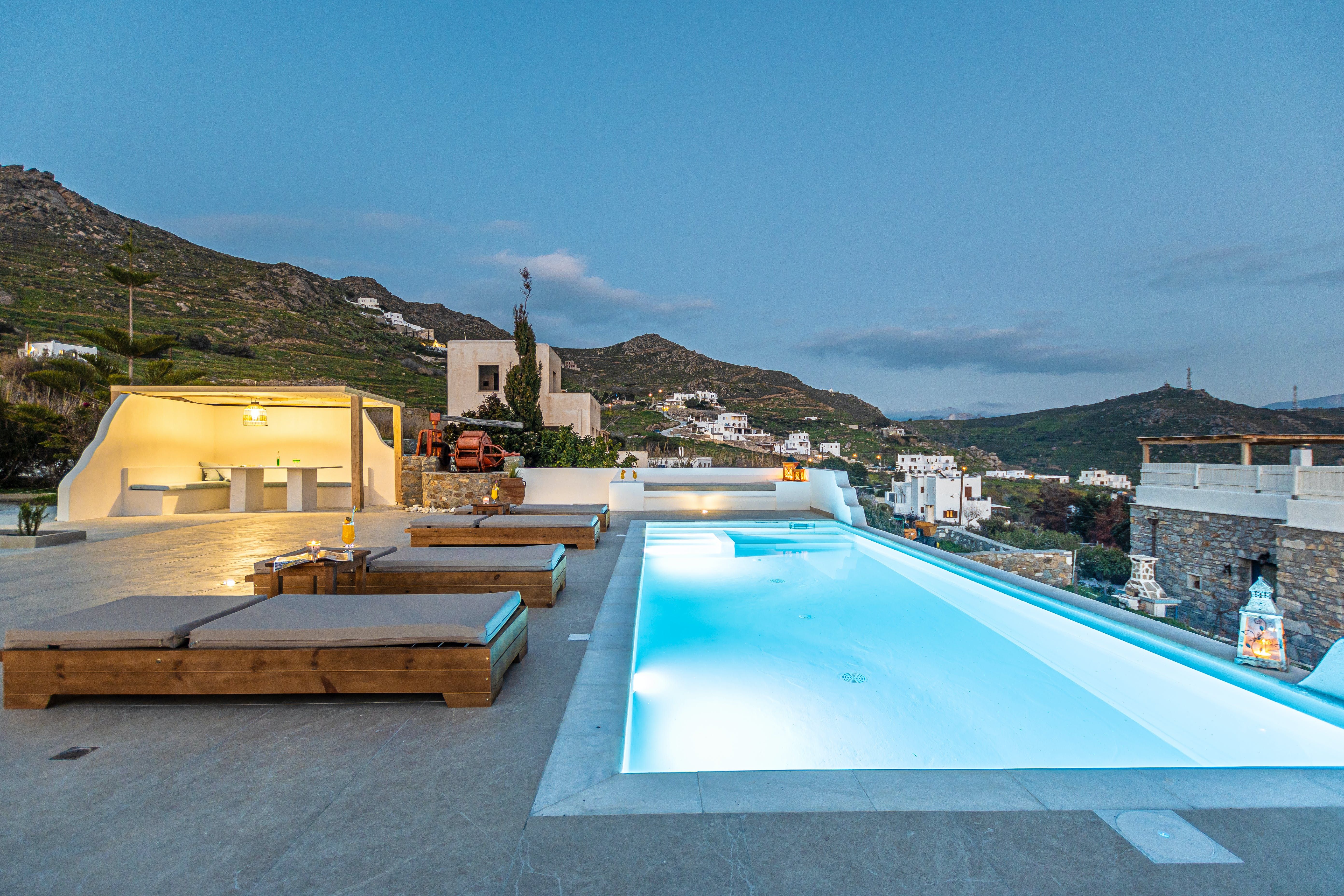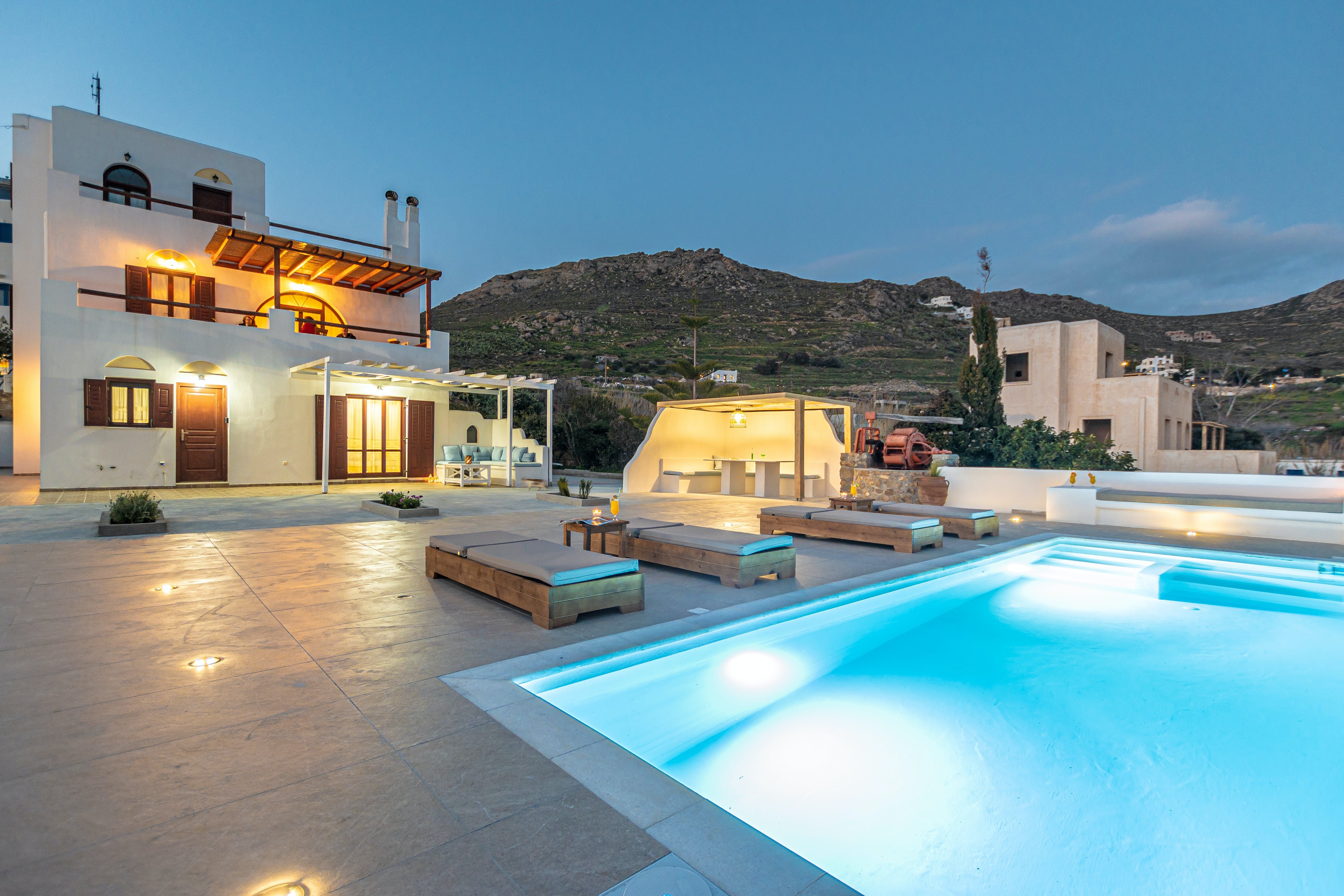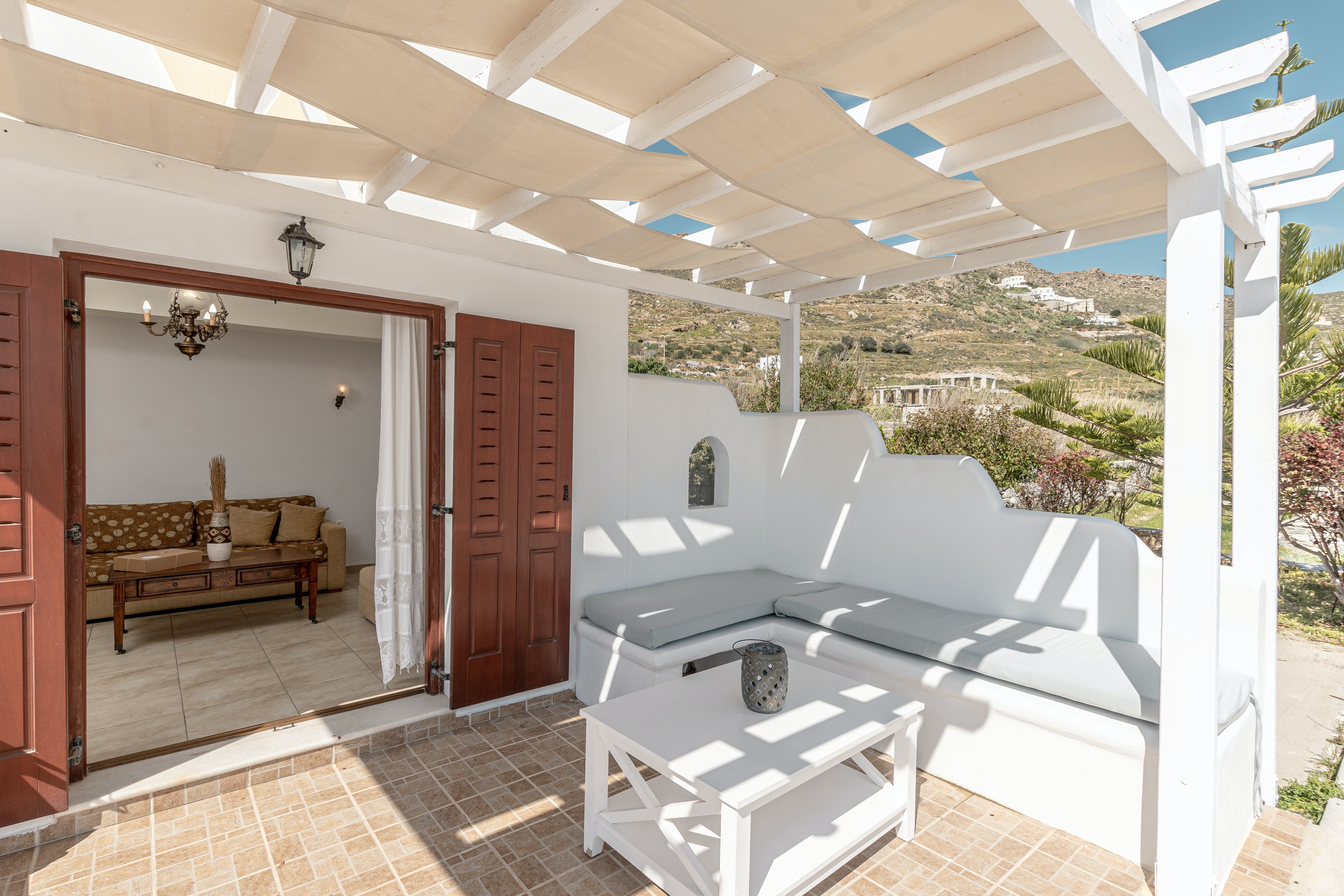 [This Idyllic Isle] offers an escape to a serene enclave nestled on a hillside of the picturesque island of Naxos, just a stone's throw from the majestic St. Polycarpos Church and a mere 2 km away from the quaint old town. It serves as a strategic haven for those eager to immerse themselves in the cultural heartbeat at Chora or bask on the sandy shores of Saint George Beach. The view of the setting sun against the azure waters and the embrace of Paros Island from St. Polycarpos is simply breathtaking. The intimate abode, blooming amidst roses, covers 95m2 within a plush 1000m2 estate, ensuring ultimate privacy for up to six guests. Bedrooms boasting twin beds, cosy living area by the fireplace, smart TV and free Wi-Fi access create a cosy nest with homey vibes. Step outside onto sun-washed seating shaded by pergola sails, perfect for leisurely alfresco meals.