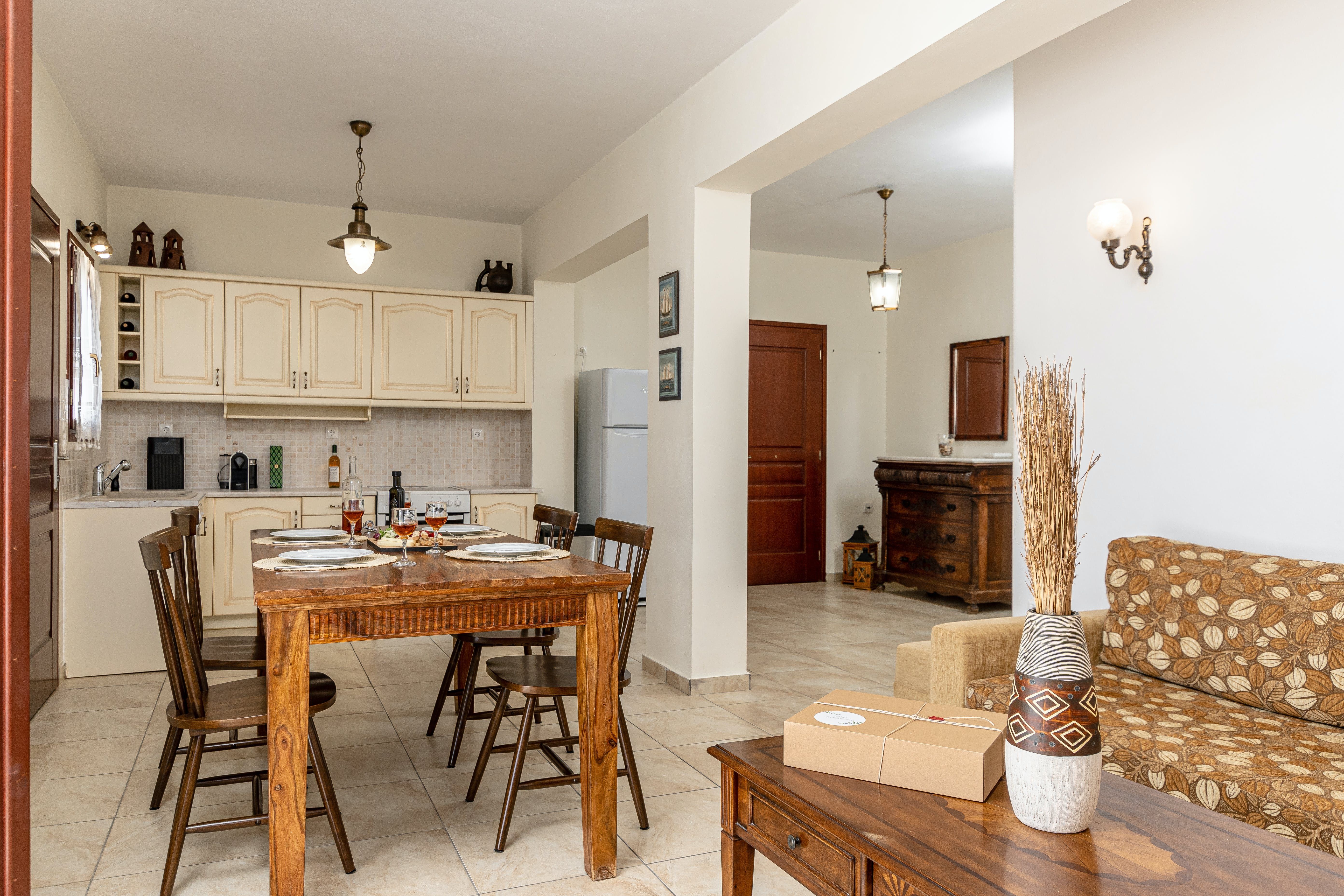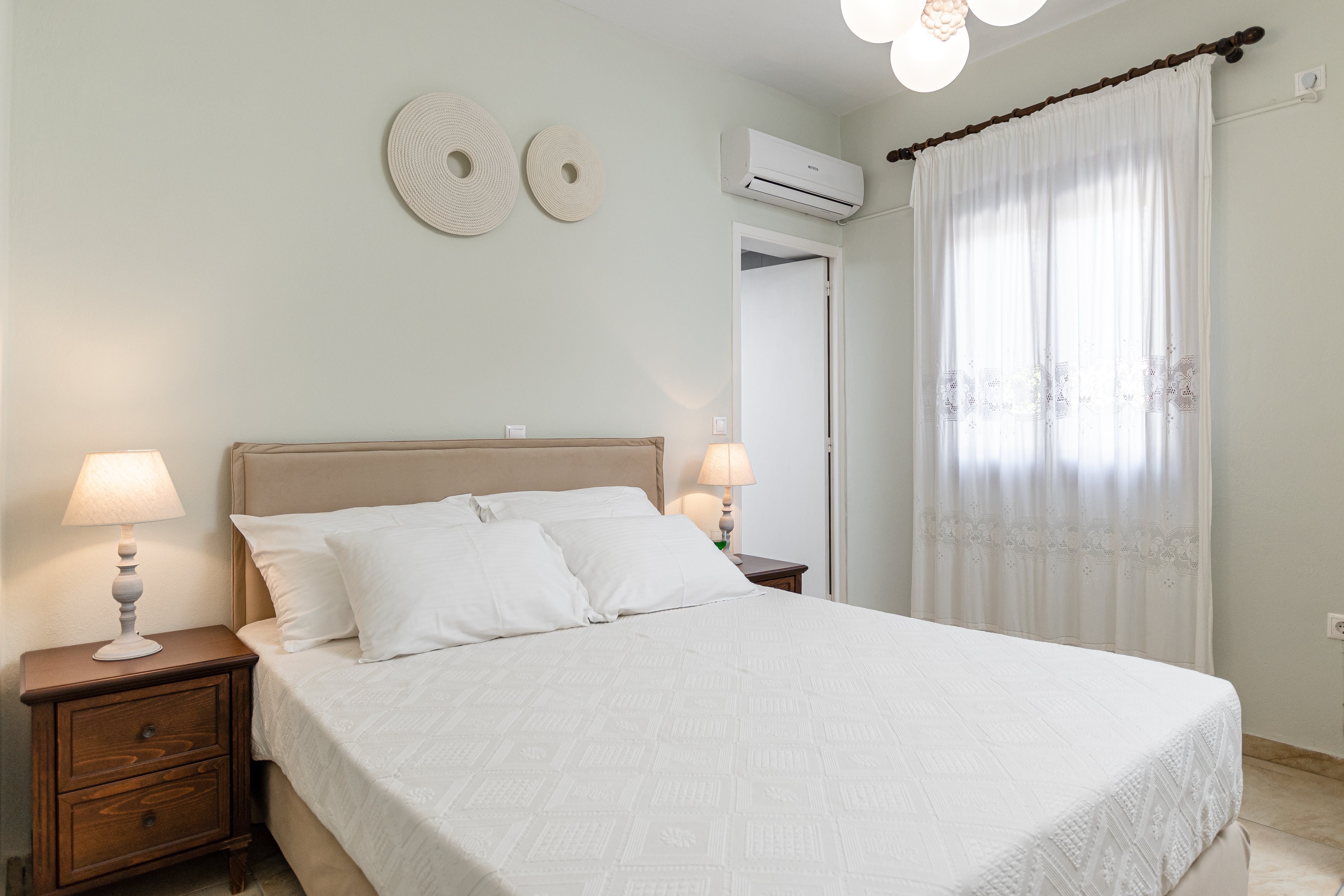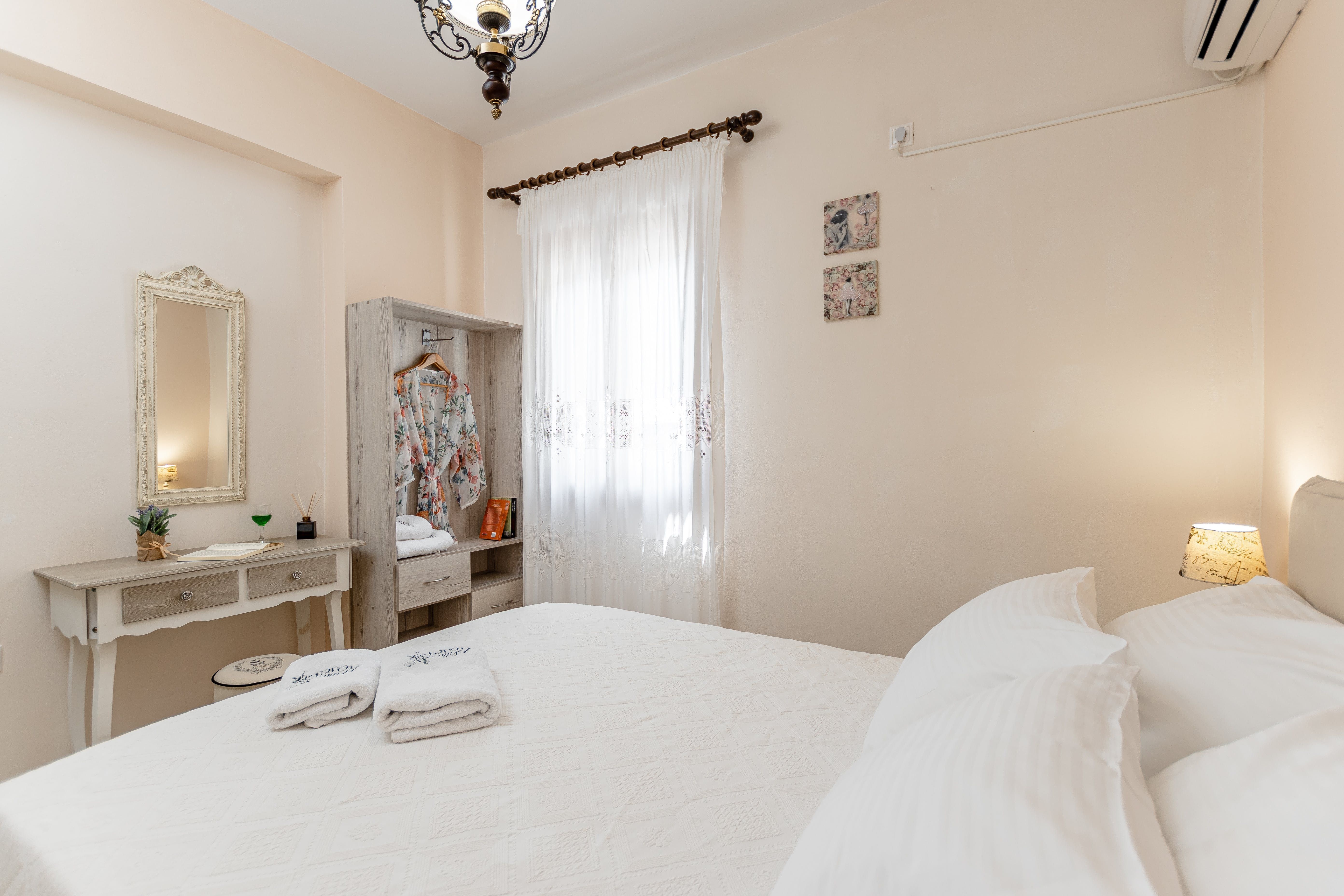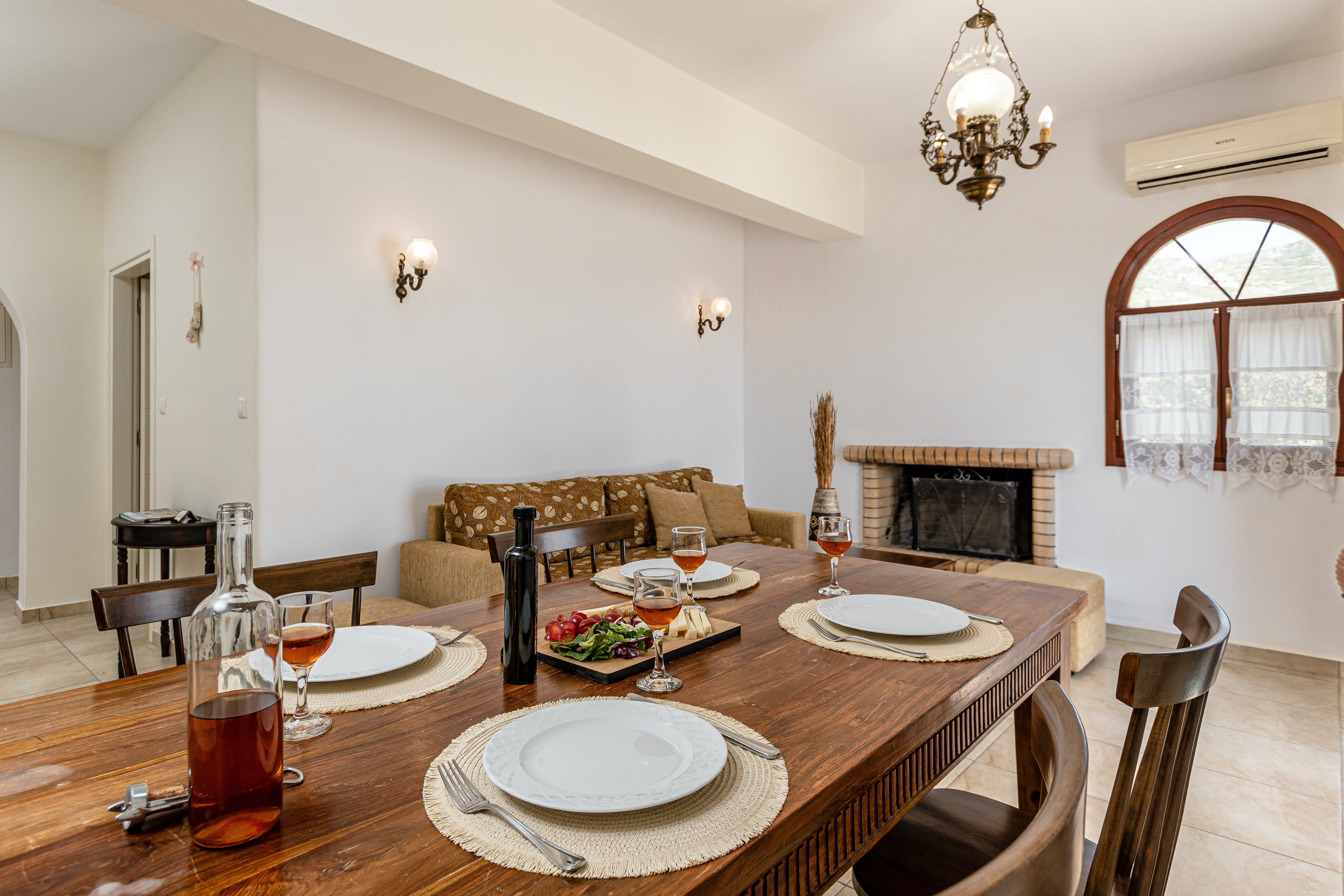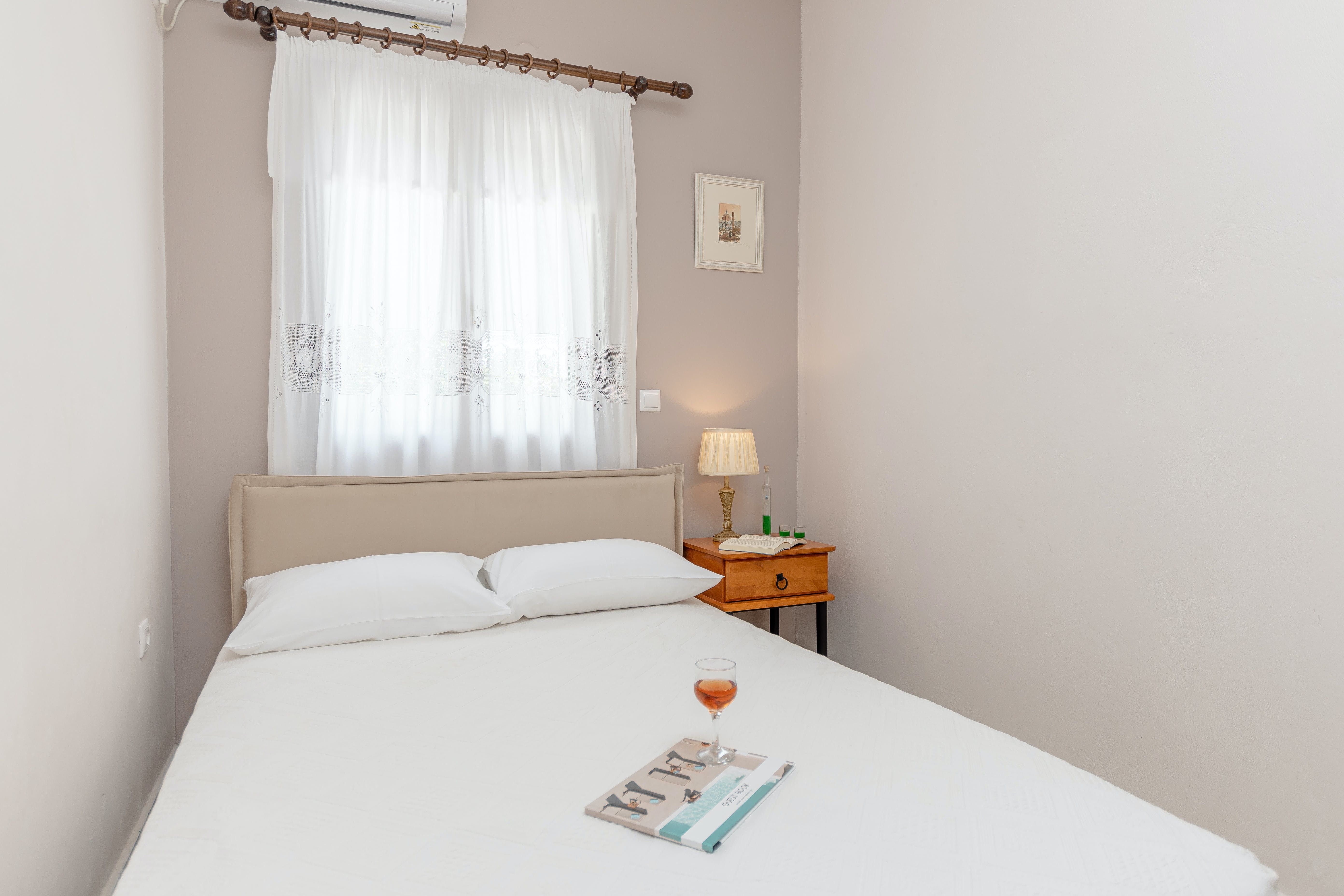 [This Idyllic Isle] offers an escape to a serene enclave nestled on a hillside of the picturesque island of Naxos, just a stone's throw from the majestic St. Polycarpos Church and a mere 2 km away from the quaint old town. It serves as a strategic haven for those eager to immerse themselves in the cultural heartbeat at Chora or bask on the sandy shores of Saint George Beach. The view of the setting sun against the azure waters and the embrace of Paros Island from St. Polycarpos is simply breathtaking. The intimate abode, blooming amidst roses, covers 95m2 within a plush 1000m2 estate, ensuring ultimate privacy for up to six guests. Bedrooms boasting twin beds, cosy living area by the fireplace, smart TV and free Wi-Fi access create a cosy nest with homey vibes. Step outside onto sun-washed seating shaded by pergola sails, perfect for leisurely alfresco meals.