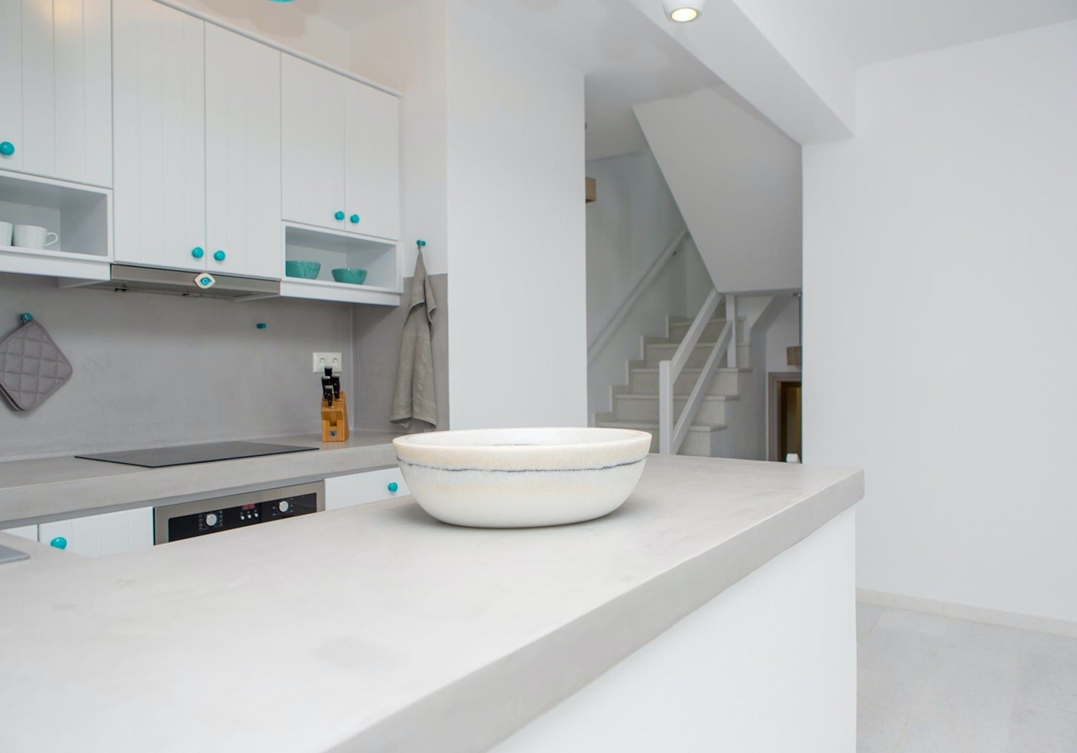 On the first level, guests will find a spacious living room with a TV and air conditioning, a fully equipped kitchen with a dining table, oven, refrigerator, kitchenware, coffee machine, kettle, toaster, and two single sofa beds. There is also a bathroom and two verandas with outdoor furniture and stunning sea views, as well as two bedrooms with double beds.
