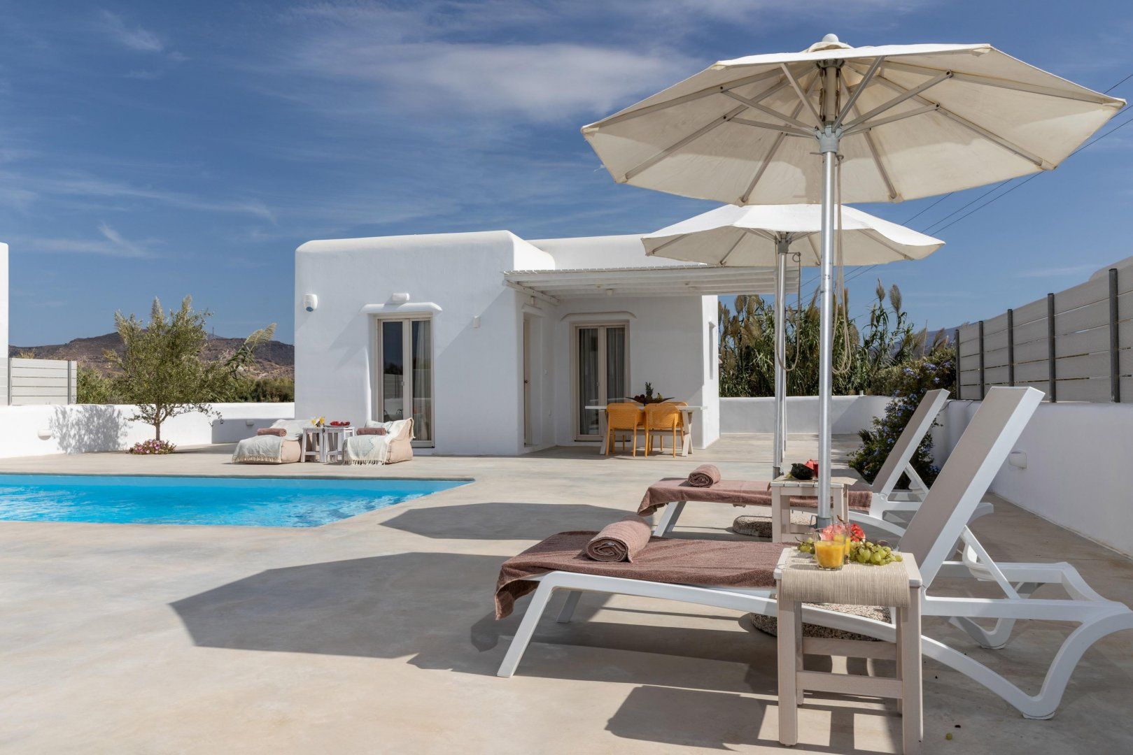 If a day at the beach is called for, walk 400 metres to Laguna Beach, famous for its windsurfing, or 600 metres to Blue Flag Agios Georgios Beach. You’re also just a six-minute drive from Naxos, where its port and the Temple of Apollo wait to be explored.