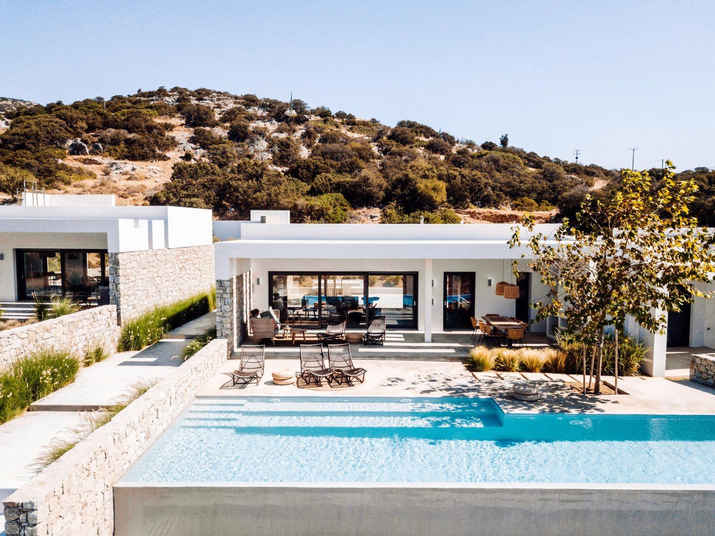This villa has serious wow-factor. It can be found on the island of Naxos, nestled below green hills and with sweeping views out to sea. The home is luxurious yet tranquil, with comfort and style at the forefront.