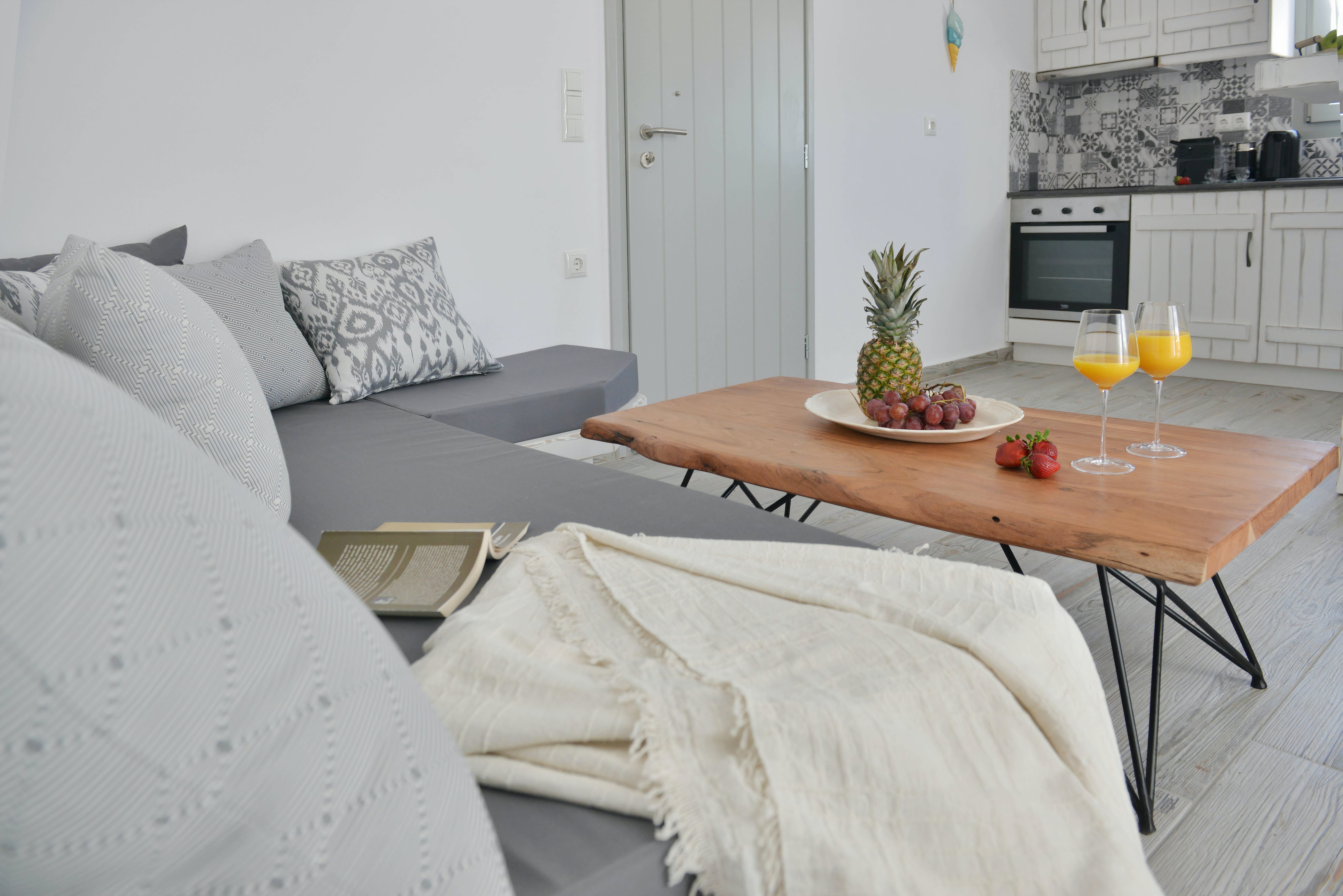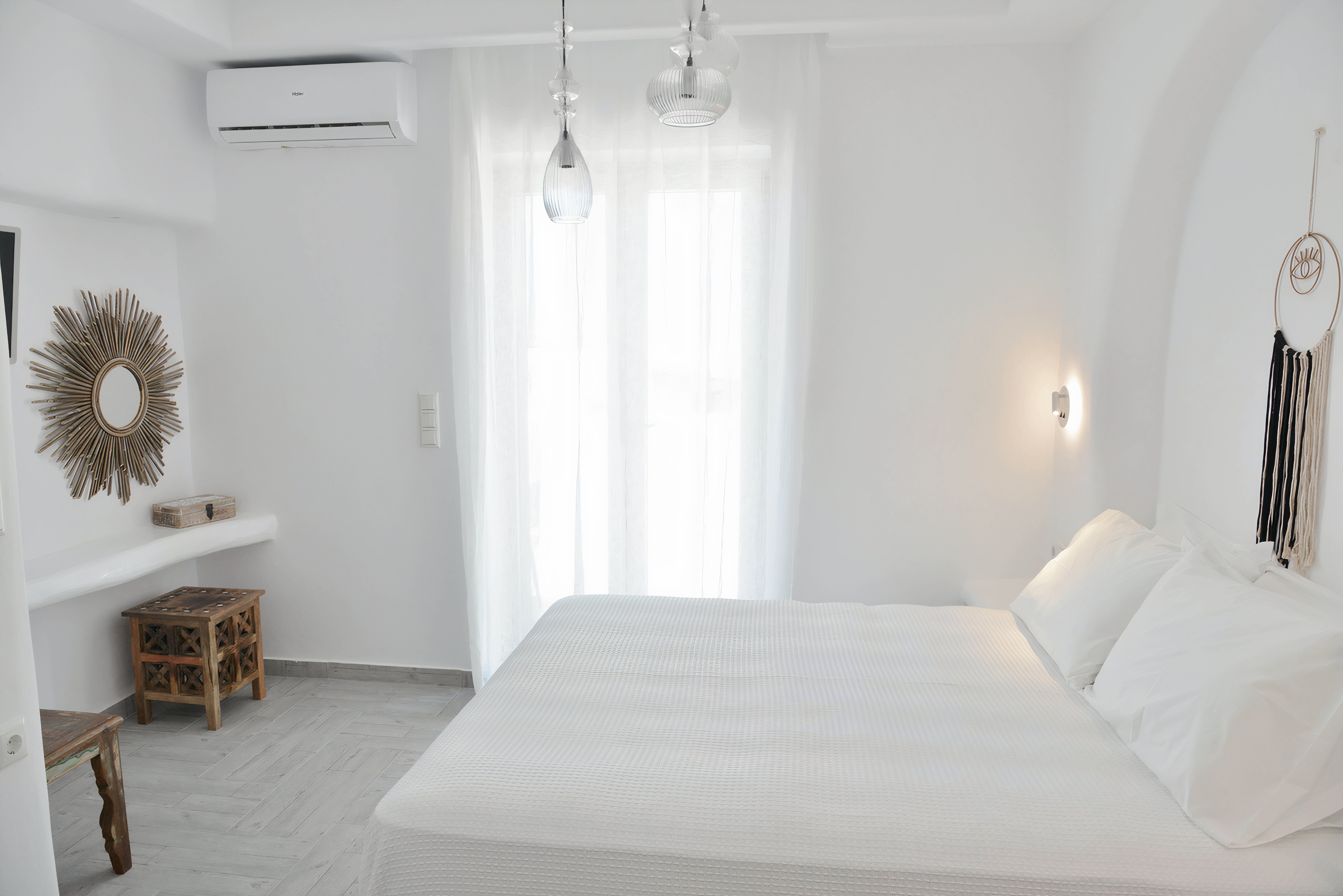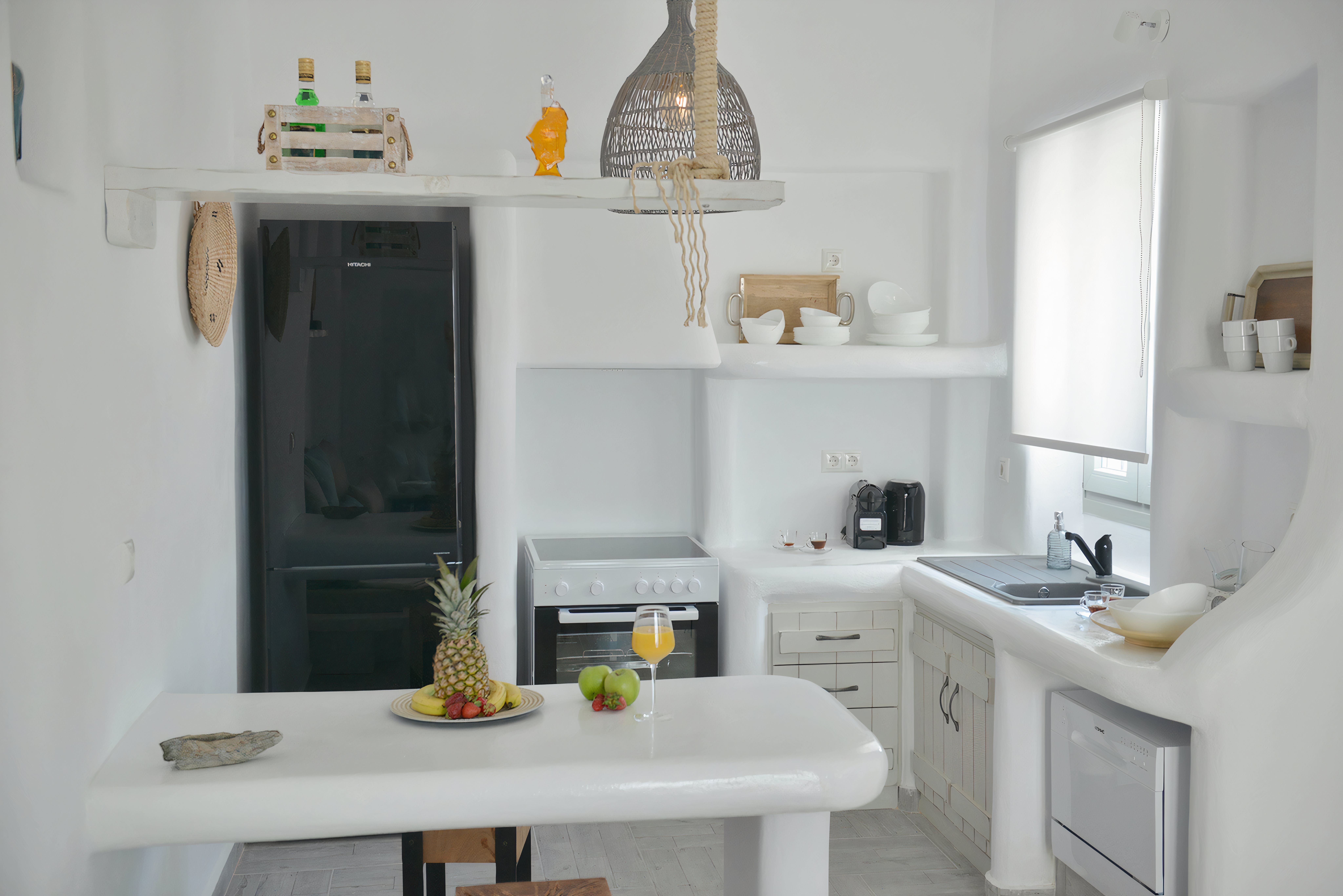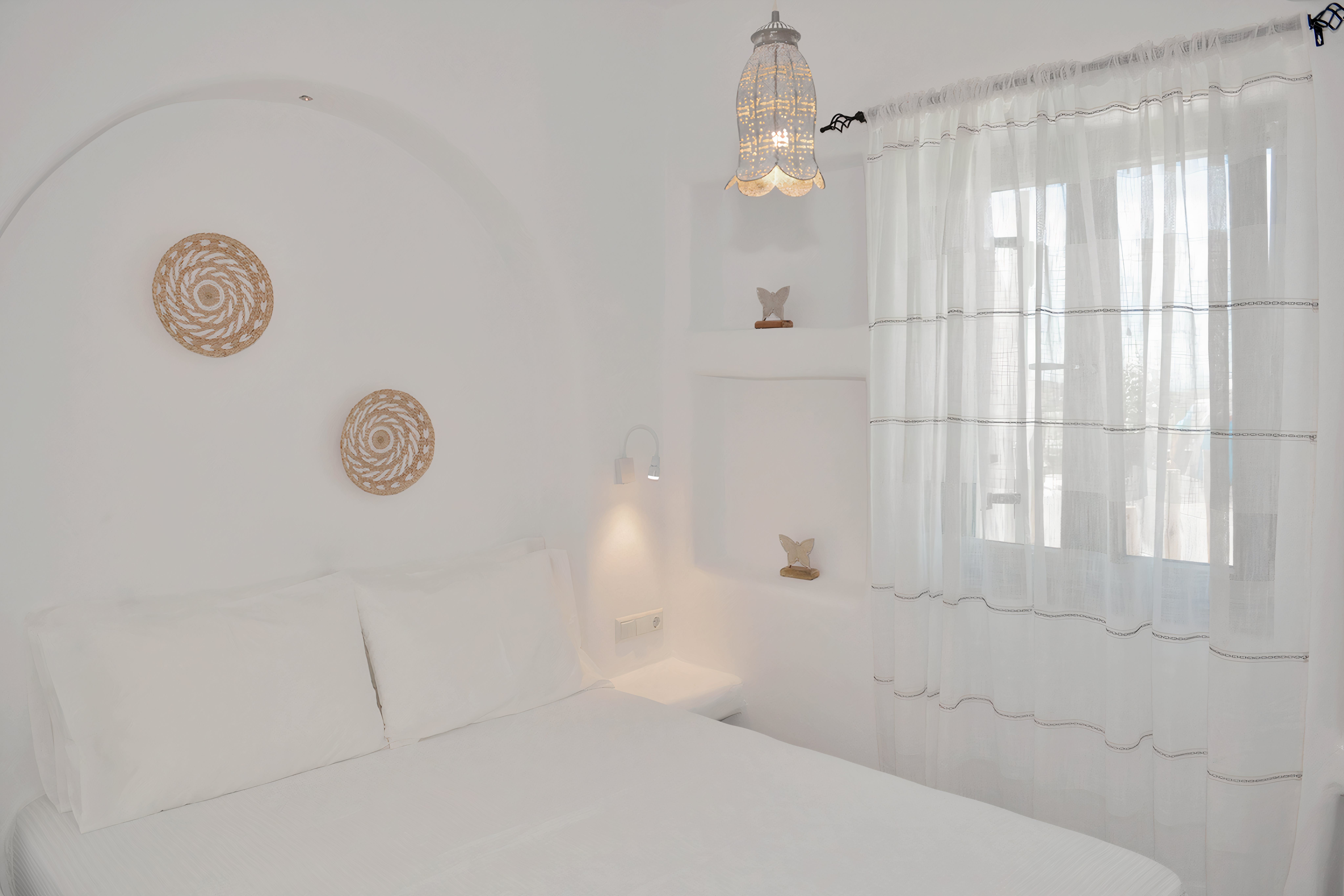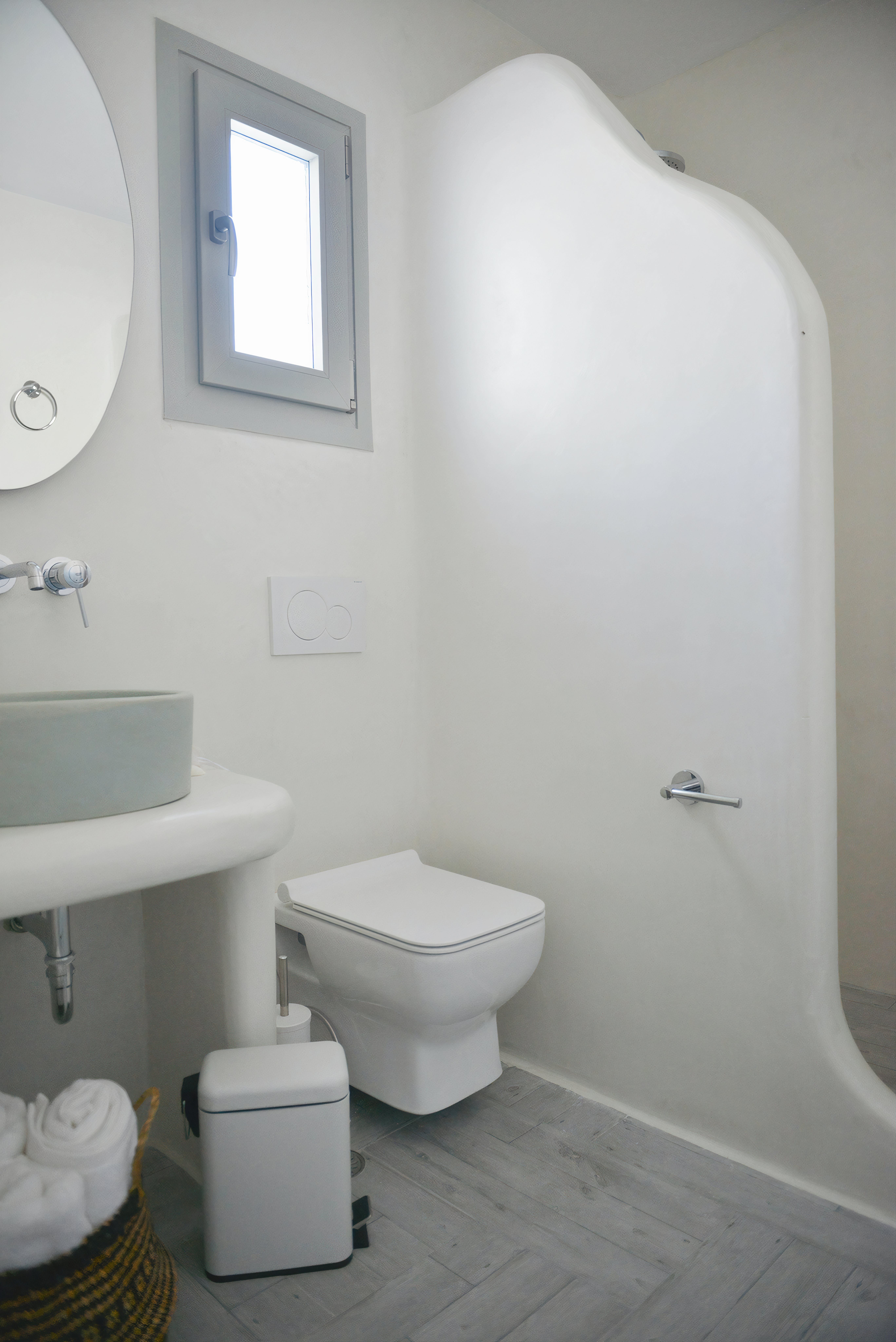 Inside the home, you're treated to plenty of curves and organic shapes that lend the space a warm, hand-finished feeling. Comfy seating areas both inside and out ensure that there's always a corner you can claim as your own, while the Jacuzzi pool and outdoor shower are perfect for cooling off beneath cloudless Cycladic skies.
