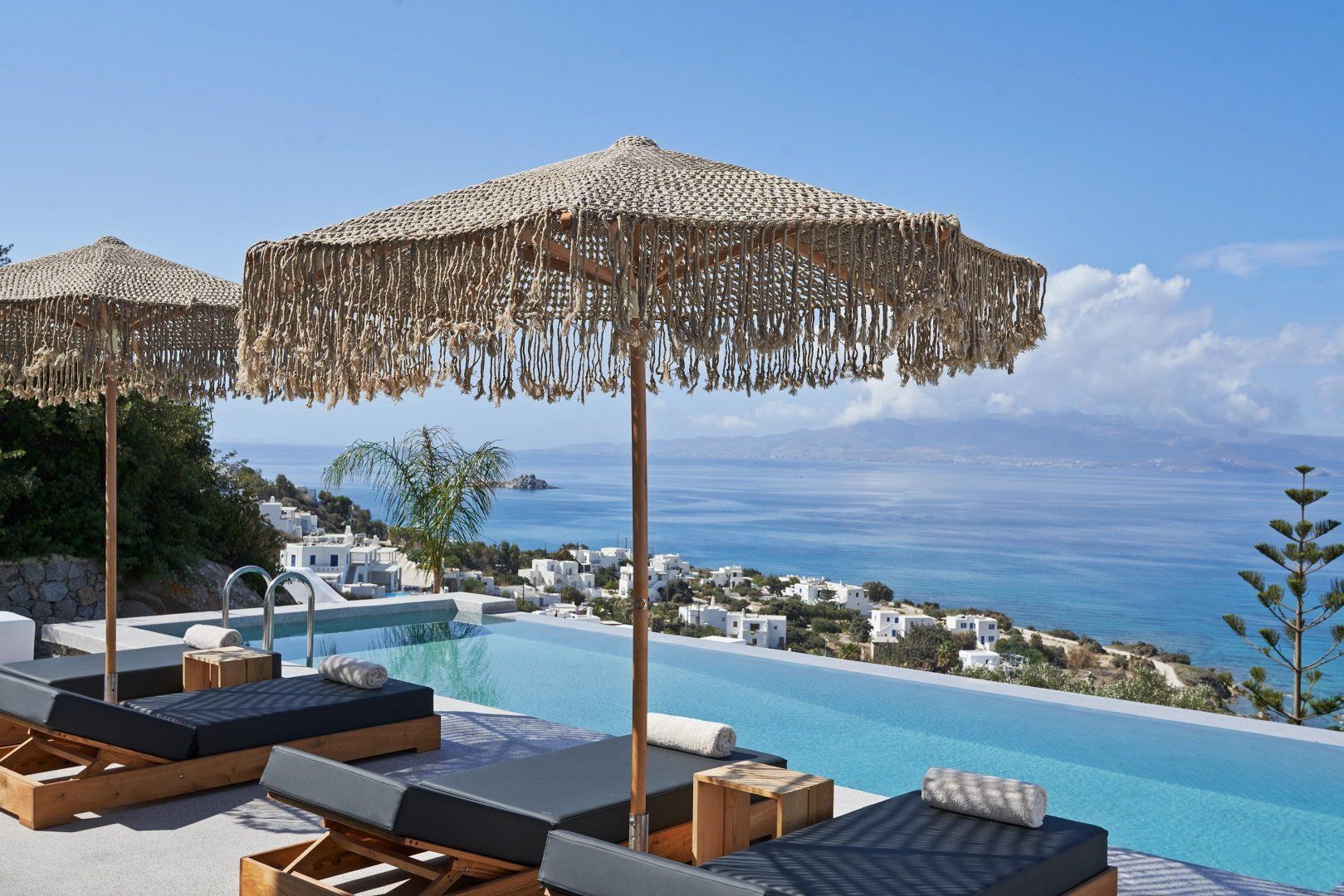 If you’re looking for a home that simply oozes laid-back luxury, well, this is the one for you. Punctuated with the traditional Greek cleanliness of whitewashed stone, you’ll find earthy tones and golden creams, bringing the stunning sunset scenes into this sprawling villa. If you're not wowed by the crystal clear blue pool and opulent sun loungers, you will be by the lavish living, resting and dining areas that use the space so elegantly.
