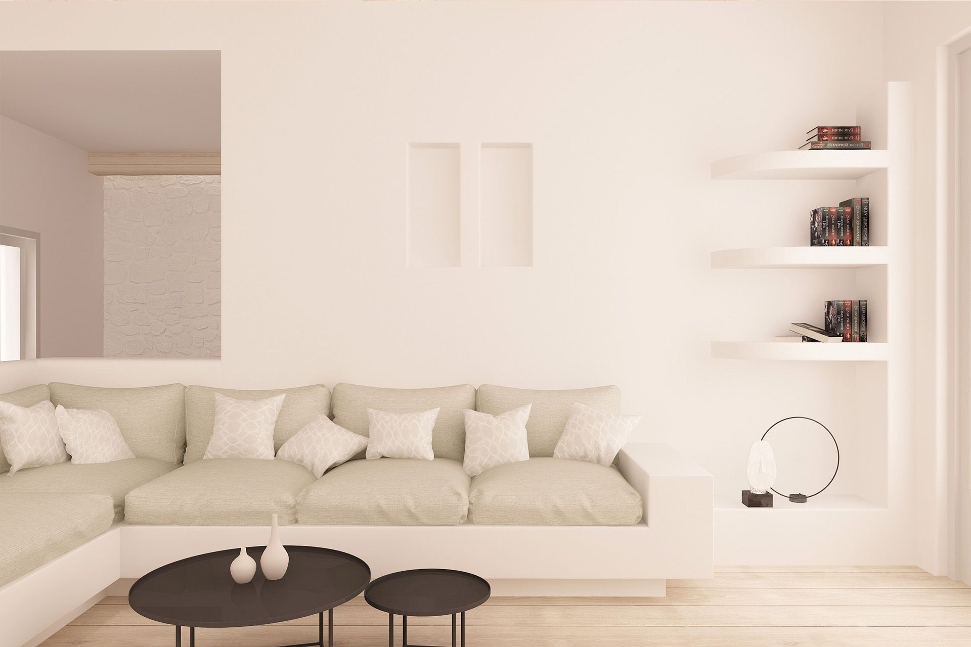 As you arrive, your eye will immediately be drawn to the view. The pretty blue vista is instantly calming – as you breathe in the sea air and drink in the view, you’ll feel your worries melt away. The infinity pool faces the sea, adding another inviting blue shade to the colour palette. The shallow end of the pool has built-in sun loungers, so you can sunbathe while dipping a toe in the water – it’s the most tranquil feeling.