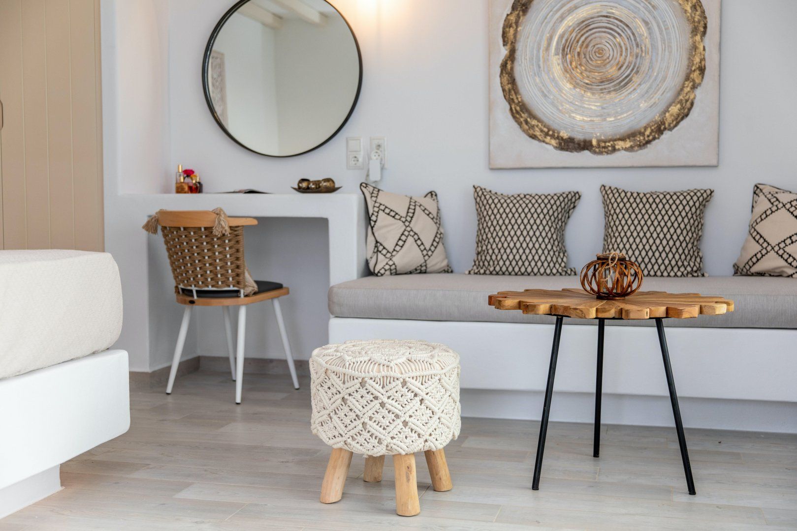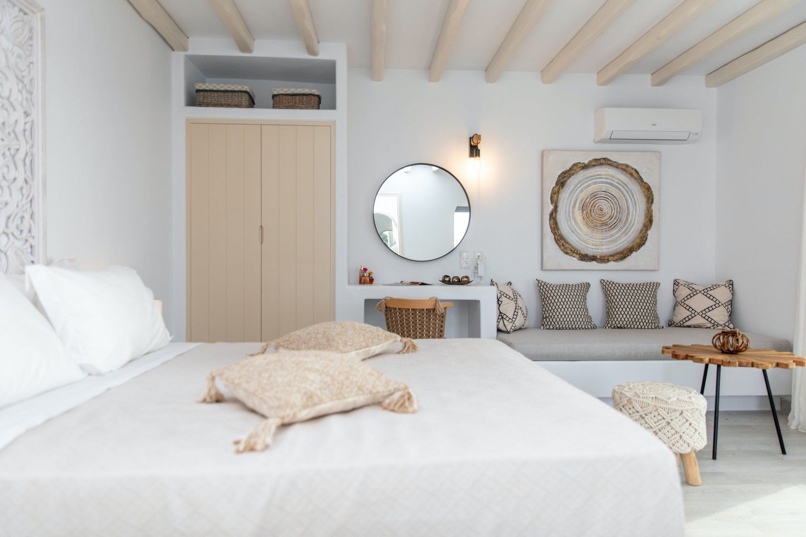 Perched on a hilltop within walking distance of Agios Prokopios Beach and a short car ride from Naxos, this room offers a restful stay for a couple or solo traveller. There’s no kitchen here, so you’ll need to head out at mealtimes. Fortunately, there are plenty of tavernas within driving distance of your doorstep. Our favourite feature was the terrace – we couldn’t get enough of the private pool, especially after a nap on the loungers.