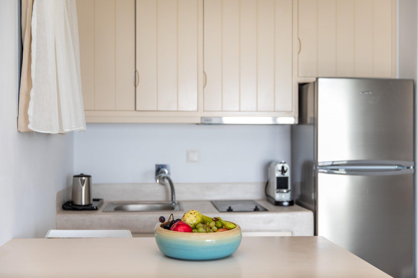 Outside, the inviting pool is just what’s needed on long, hot afternoons and the neat terrace is ideal for watching burning sunsets. If you’re keen to explore a little, take the five-kilometre drive to Naxos Town for charming cobbled streets, traditional tavernas and the intriguing Archaeological Museum, filled with ancient Cycladic art.