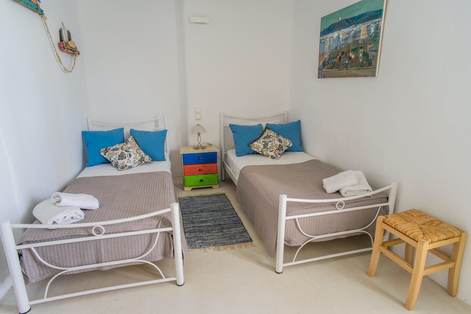 Seeking a coastal break in the Cyclades? This villa is nestled in a small complex by the Aliki shoreline, where sandy stretches and restaurants lead you 700 metres to Faragas Beach. Spread over three levels, the bedrooms await in the basement and on the mezzanine, overlooking antique furniture to enhance the traditional interior. This home's highlights include sea-facing balconies and a leafy terrace with a jacuzzi pool. Why not hire a massage therapist after chartering a boat in the bay?