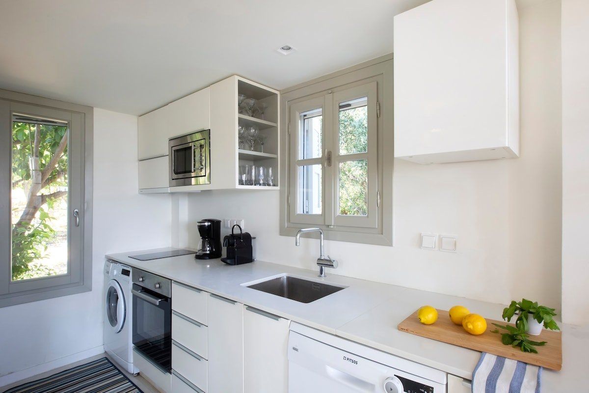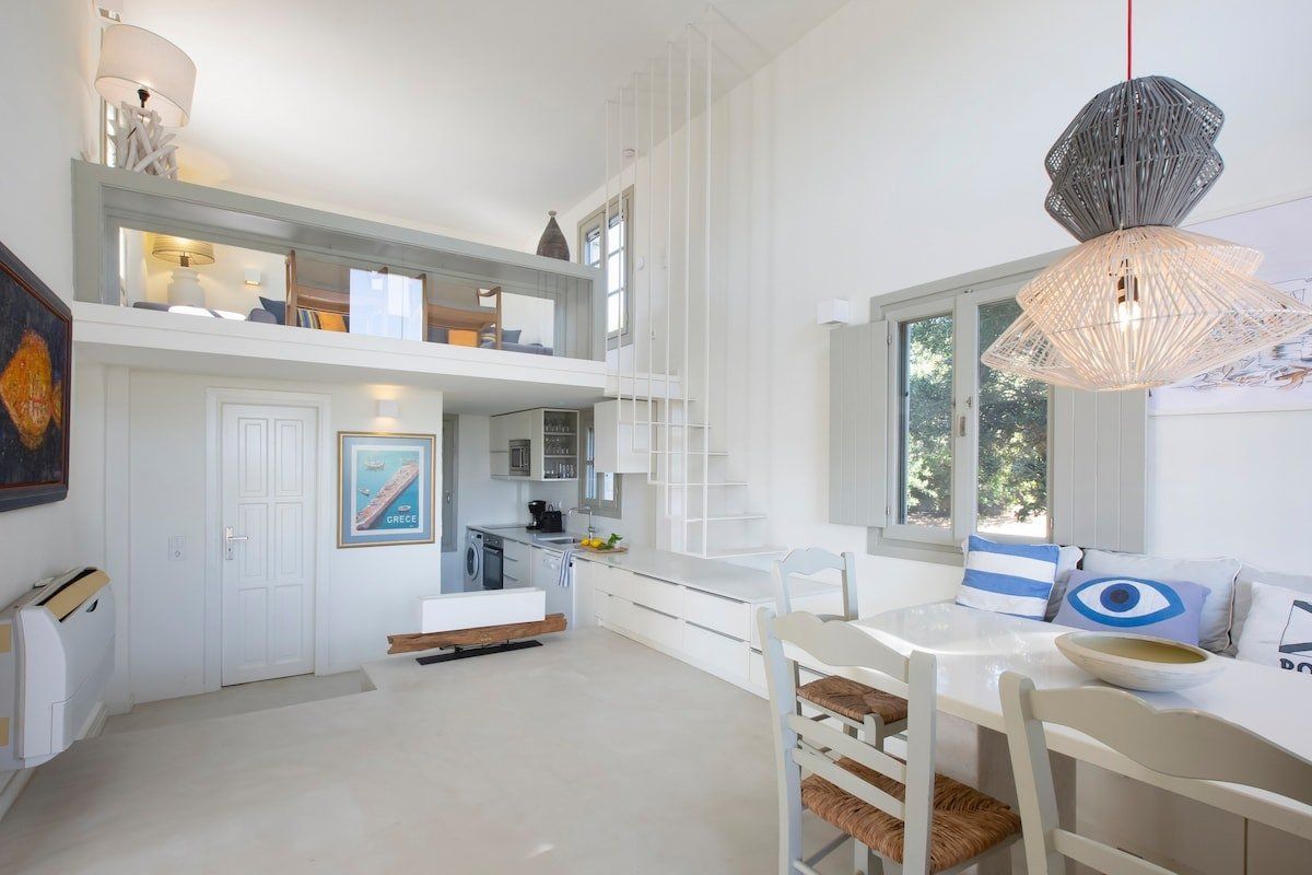 You’ll find this sun-soaked home on the northeast coast of Paros, an idyllic island in the heart of the Cyclades archipelago. Inside the home, timeless Greek design forms a hassle-free and functional environment. It’s all clean lines, blue accents and plenty of natural light – especially in the living area. Wake up with a coffee at the breakfast table or enjoy a moment of stillness on the mezzanine level. Spend all morning outside by the pool, dipping your toes in the cool water and snoozing on a lounger.