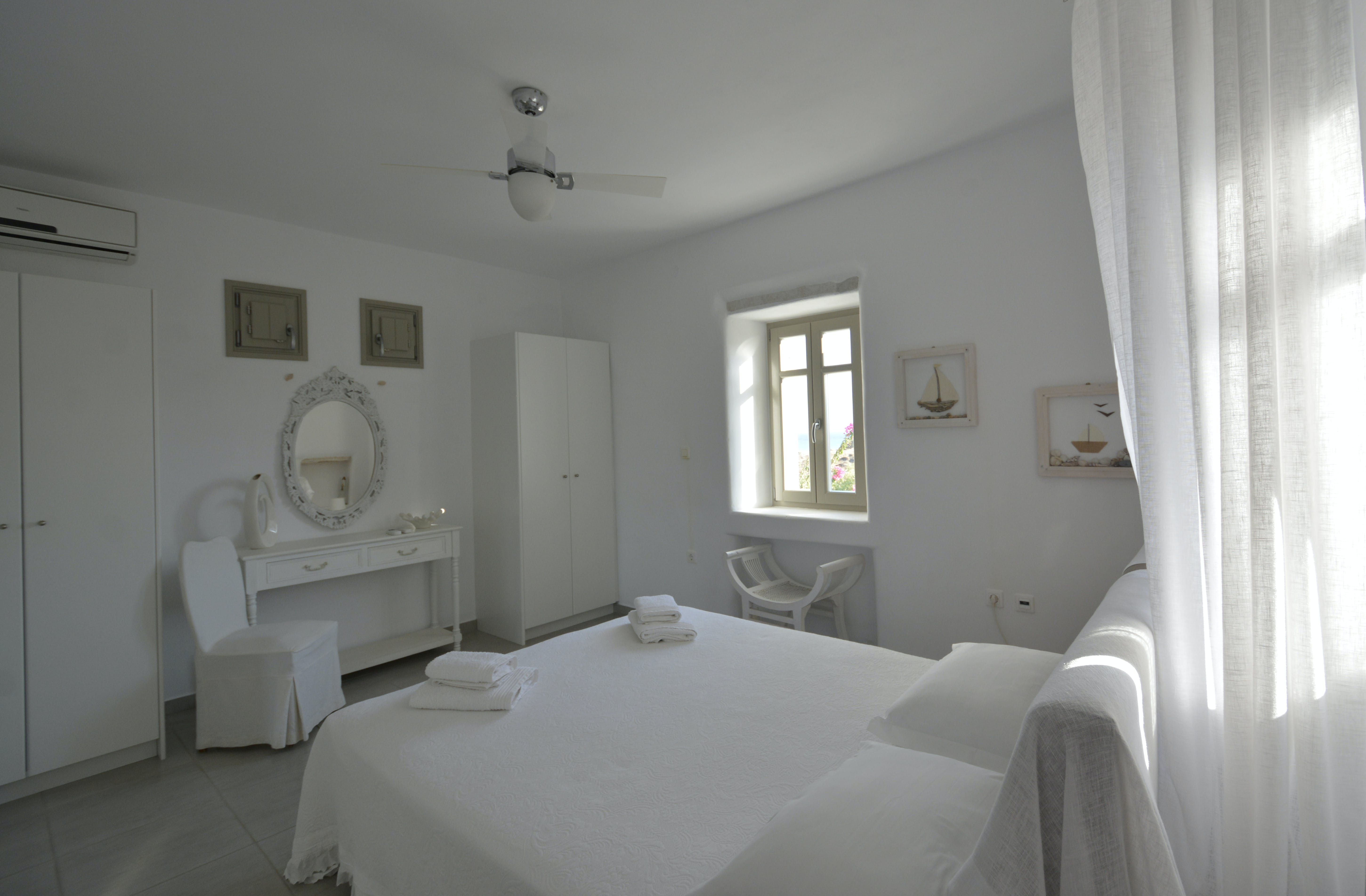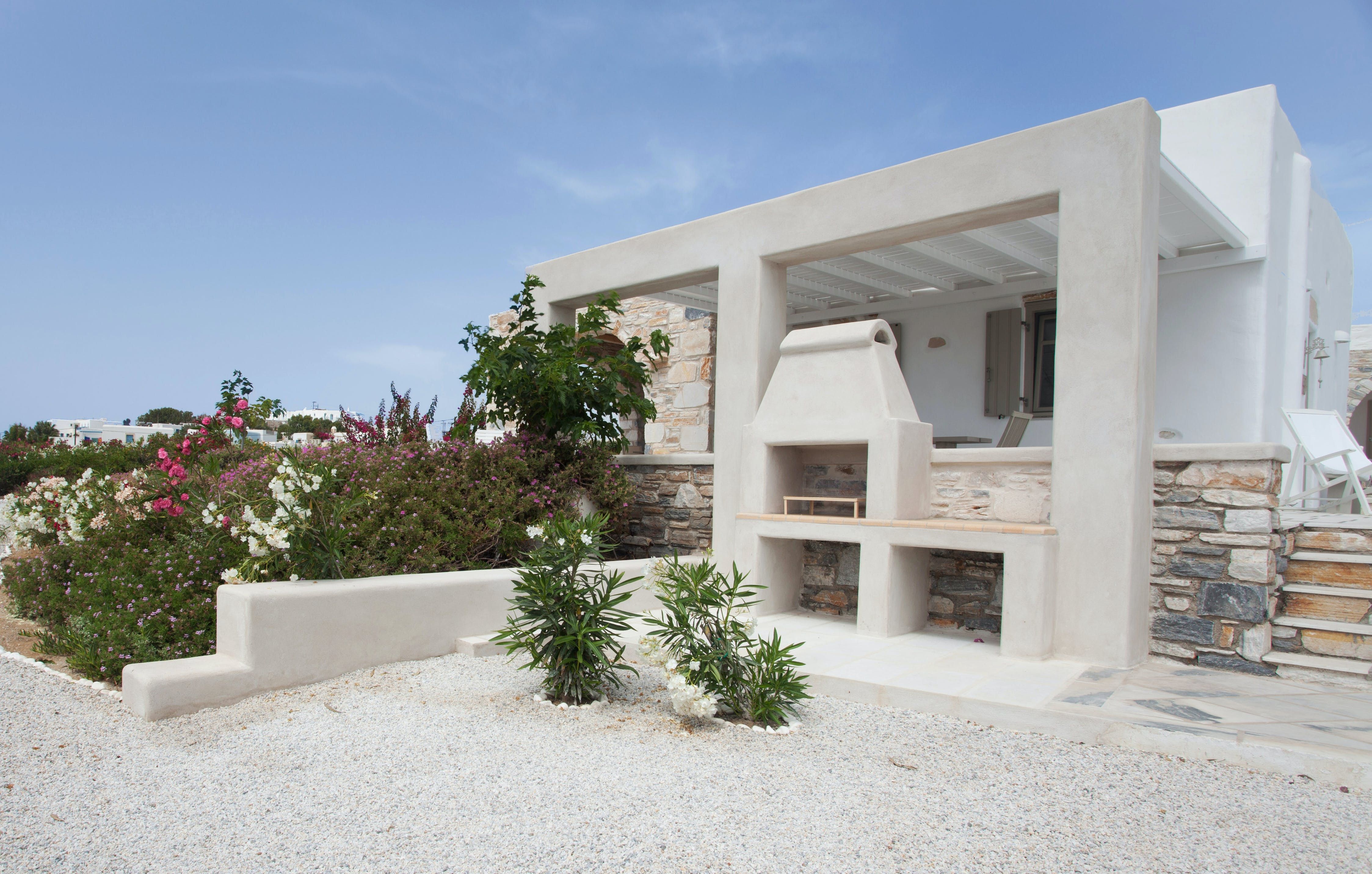 Set just a short stroll from Paros’ New Golden Beach, this home is an easy-going base for a seaside stay. Inside, things are simple and unassuming, with all the essentials for a comfortable holiday. But the real magic happens outdoors. You’ll have shaded terraces for long alfresco lunches, a rooftop spot for sunbathing with sea views, and access to a shared pool when you need to cool off. Part of a small residential complex, it’s ideal for families – and if you’re travelling in a larger group, the neighbouring villas can be rented together. It's worth noting that one person will sleep on a sofa bed in the twin bedroom, so it's probably best suited for a little one.