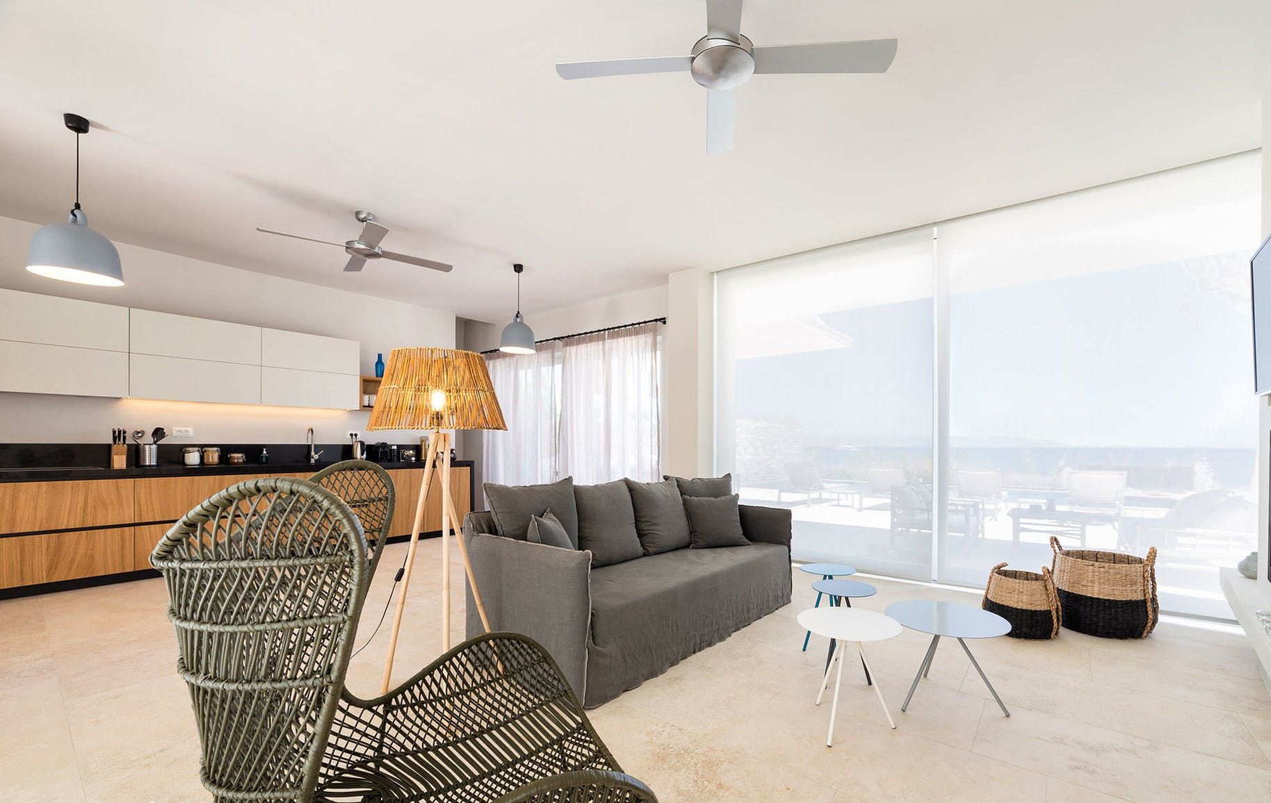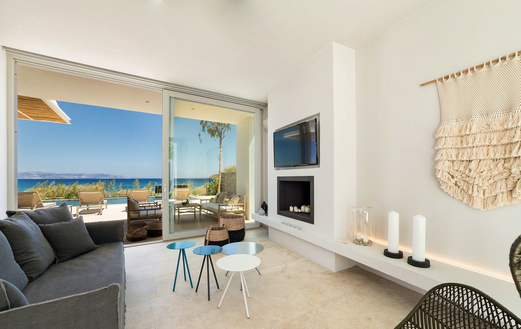 For an idyllic Grecian summer getaway, this villa could be just the thing. Combining stone unique to this island and whitewashed walls with high architectural designs, the blend makes for a beautiful home. With large patio doors on either side of this home and chic touches of wicker and bamboo, this villa conquers indoor-outdoor living.