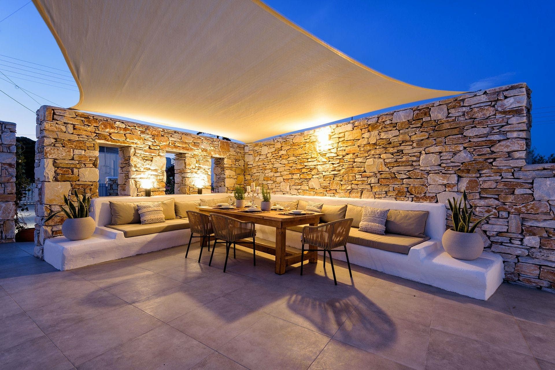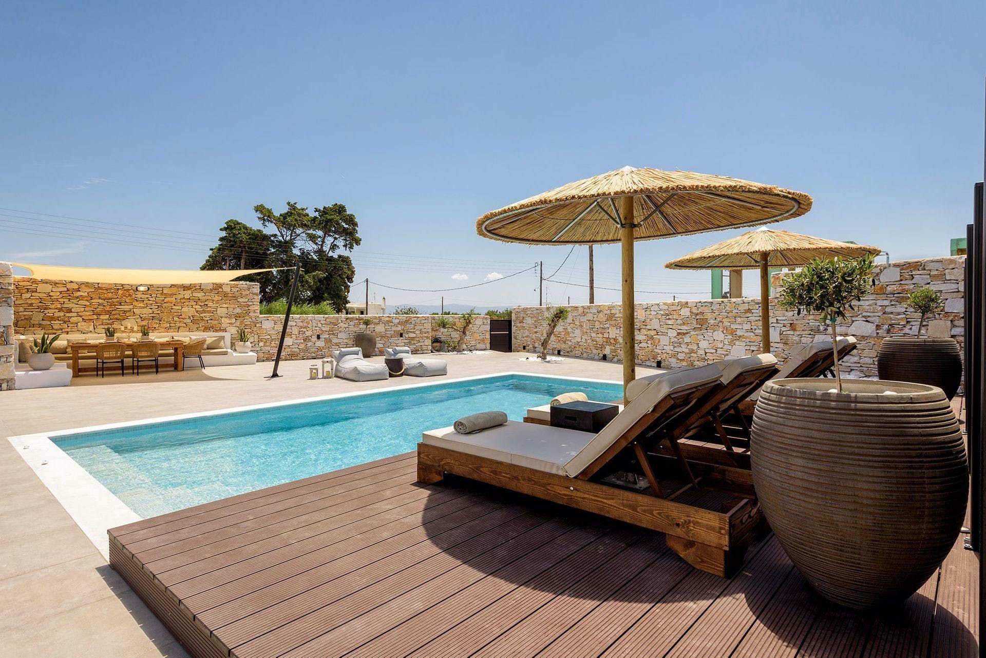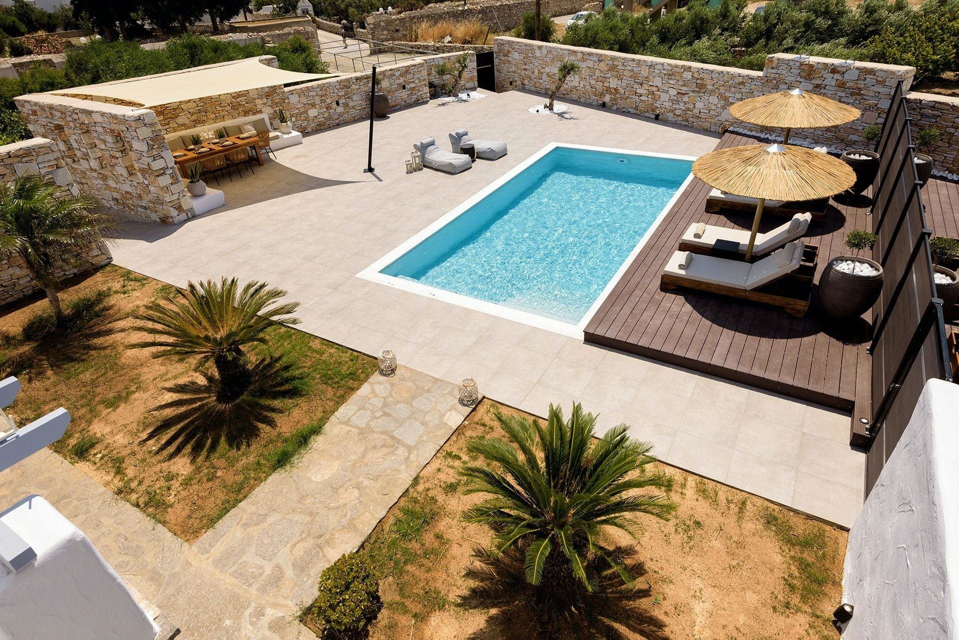 A beautiful villa in Drios, southeast of Paros Island, offers a serene oasis for up to 8 guests. Immerse yourself in the tranquility of this charming property with a private swimming pool and indulgent amenities. The mesmerizing counter-current swimming system and hydromassage in the pool will provide exercise and relaxation. Situated just 100m from Drios beach and 1km from the renowned Golden beach, enjoy the convenience of nearby restaurants, cafes, and mini markets. This spacious villa comprises three airy bedrooms, a fully equipped kitchen opening into the inviting living room, and two modern bathrooms. Take delight in the picturesque terrace overlooking mountain views. Revel in luxury amenities like daily maid service, concierge assistance, and complimentary Wi-Fi. Unwind in your private haven at Serene Oasis – an idyllic getaway for your Paros retreat.