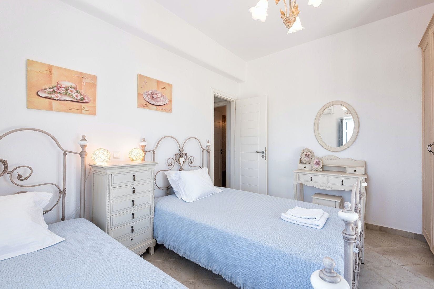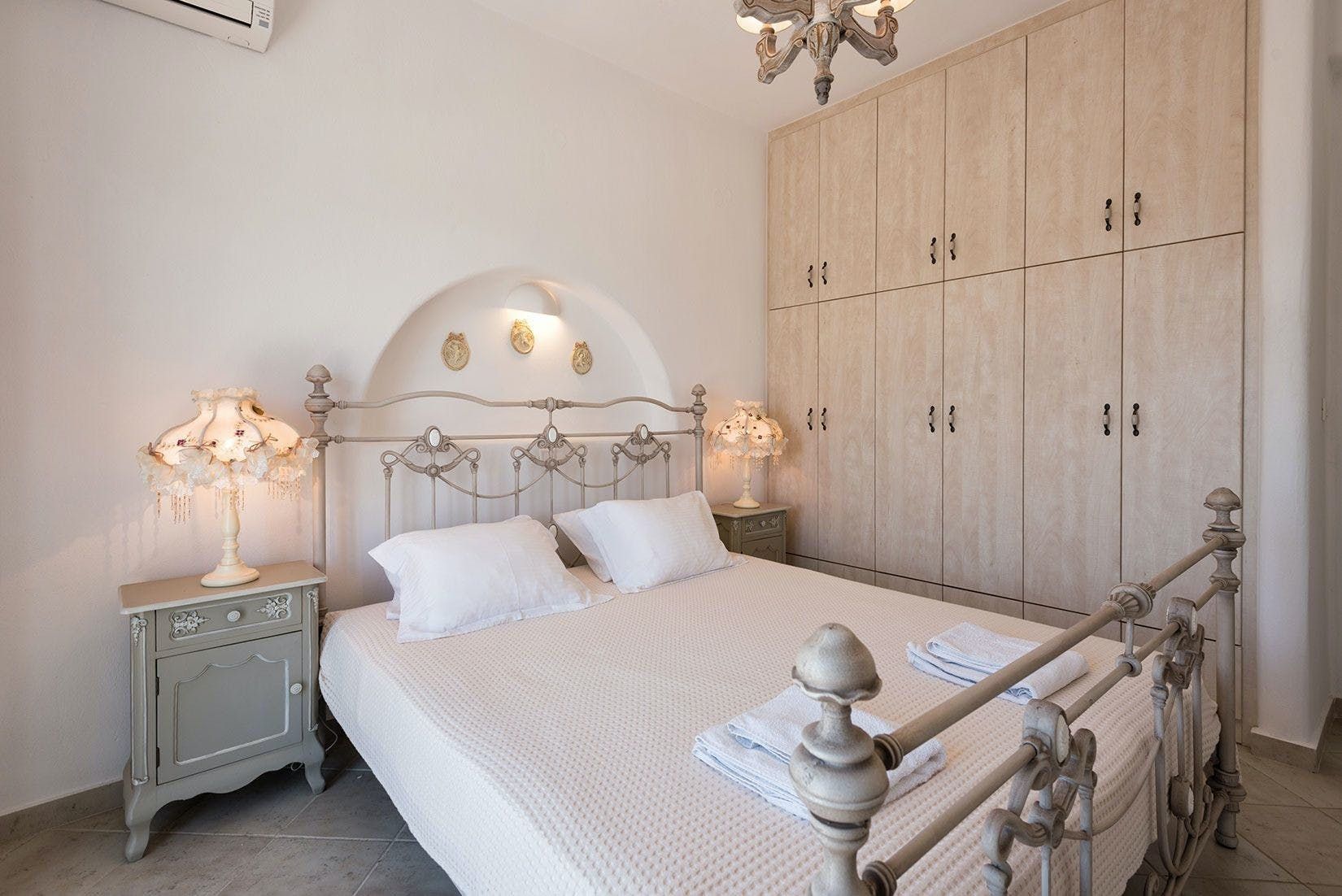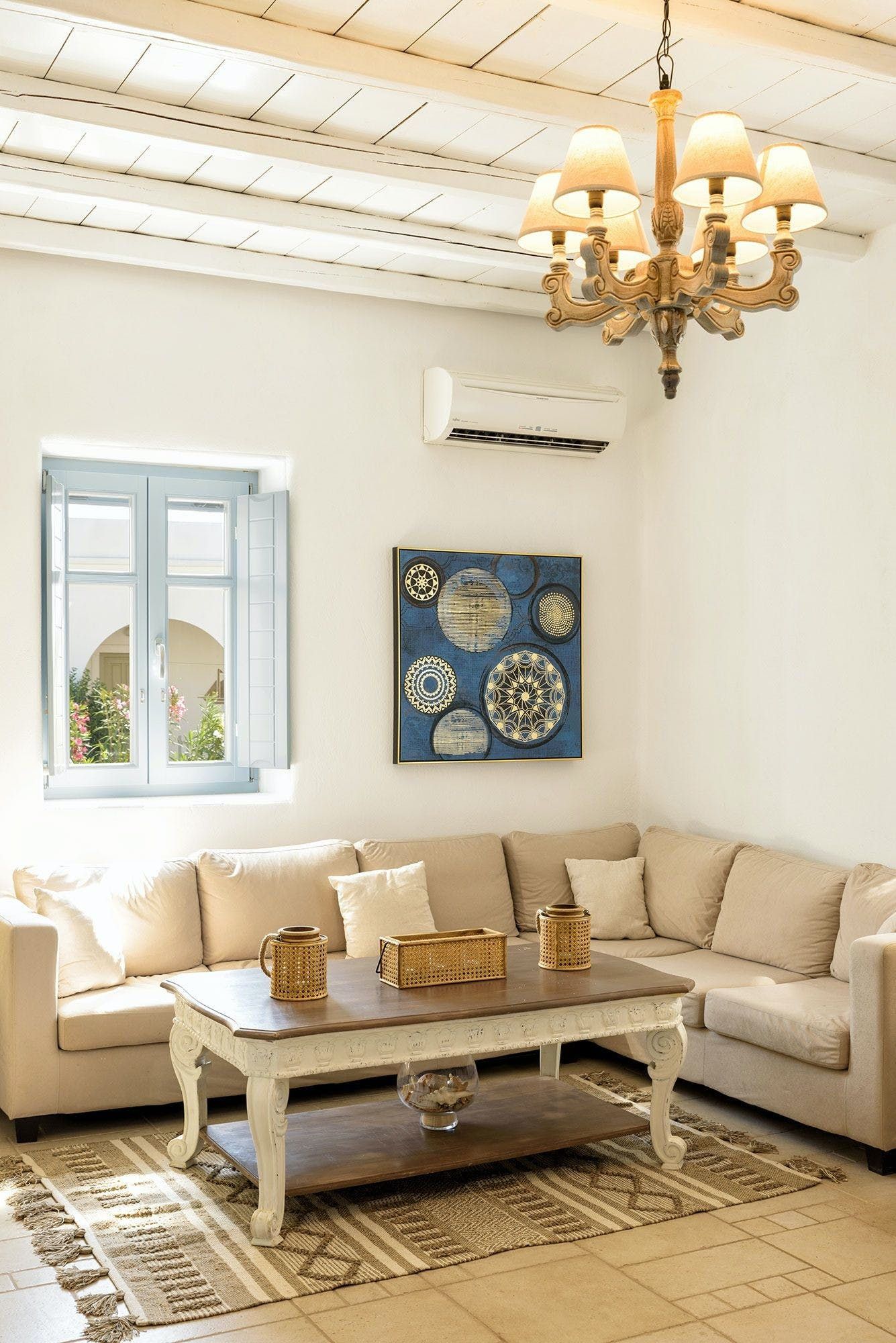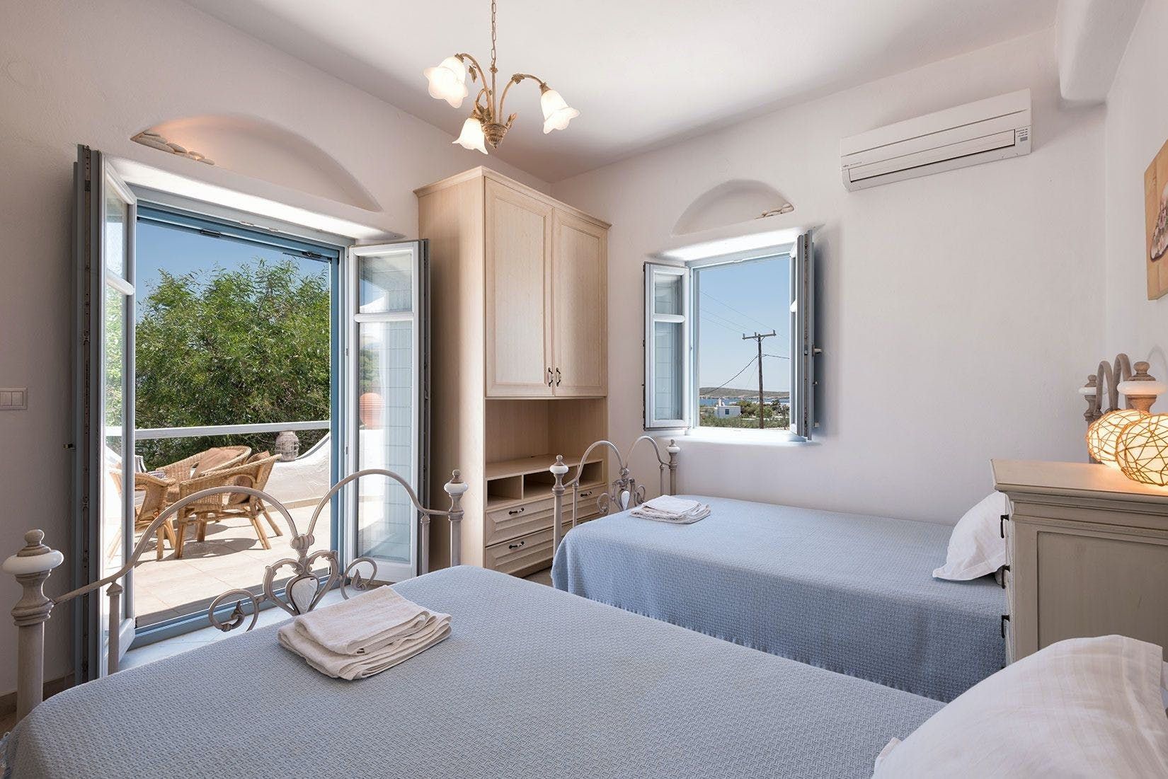 A beautiful villa in Drios, southeast of Paros Island, offers a serene oasis for up to 8 guests. Immerse yourself in the tranquility of this charming property with a private swimming pool and indulgent amenities. The mesmerizing counter-current swimming system and hydromassage in the pool will provide exercise and relaxation. Situated just 100m from Drios beach and 1km from the renowned Golden beach, enjoy the convenience of nearby restaurants, cafes, and mini markets. This spacious villa comprises three airy bedrooms, a fully equipped kitchen opening into the inviting living room, and two modern bathrooms. Take delight in the picturesque terrace overlooking mountain views. Revel in luxury amenities like daily maid service, concierge assistance, and complimentary Wi-Fi. Unwind in your private haven at Serene Oasis – an idyllic getaway for your Paros retreat.