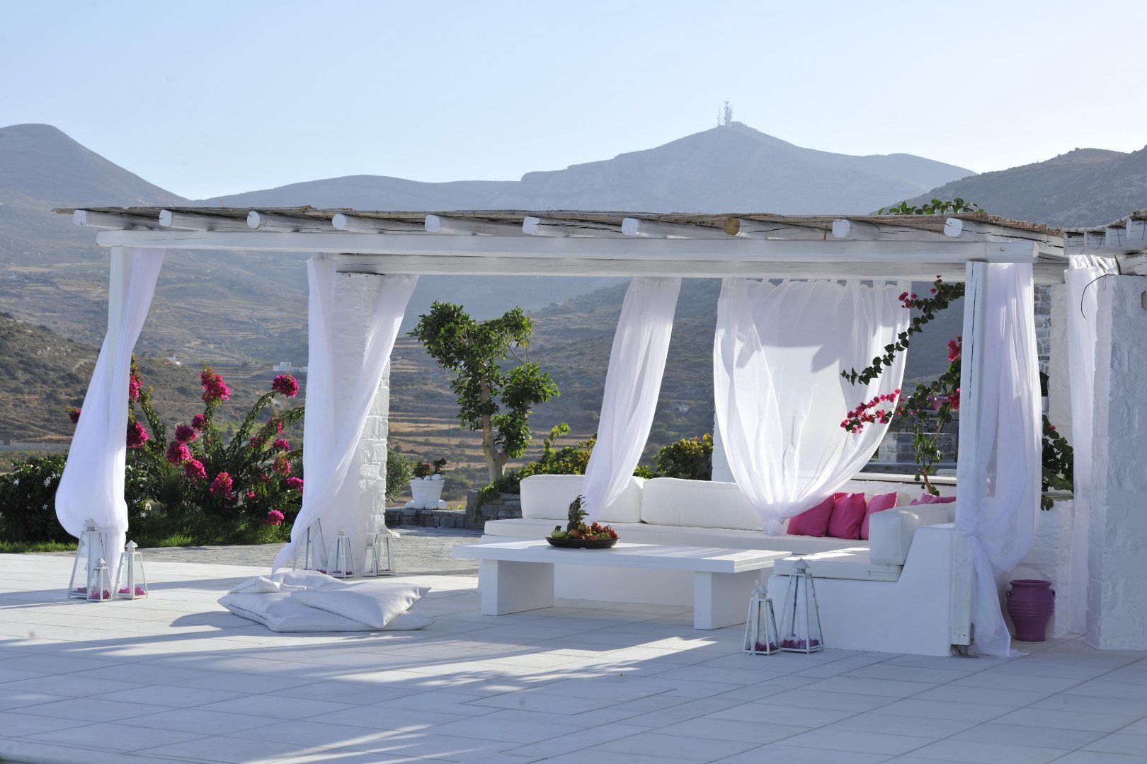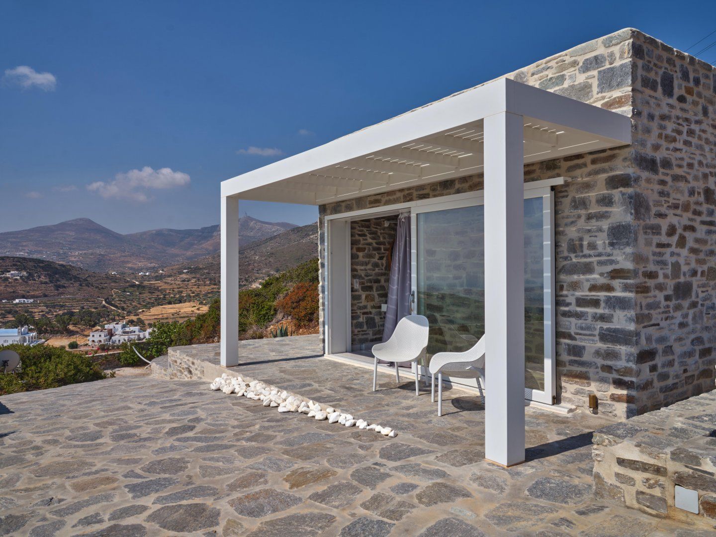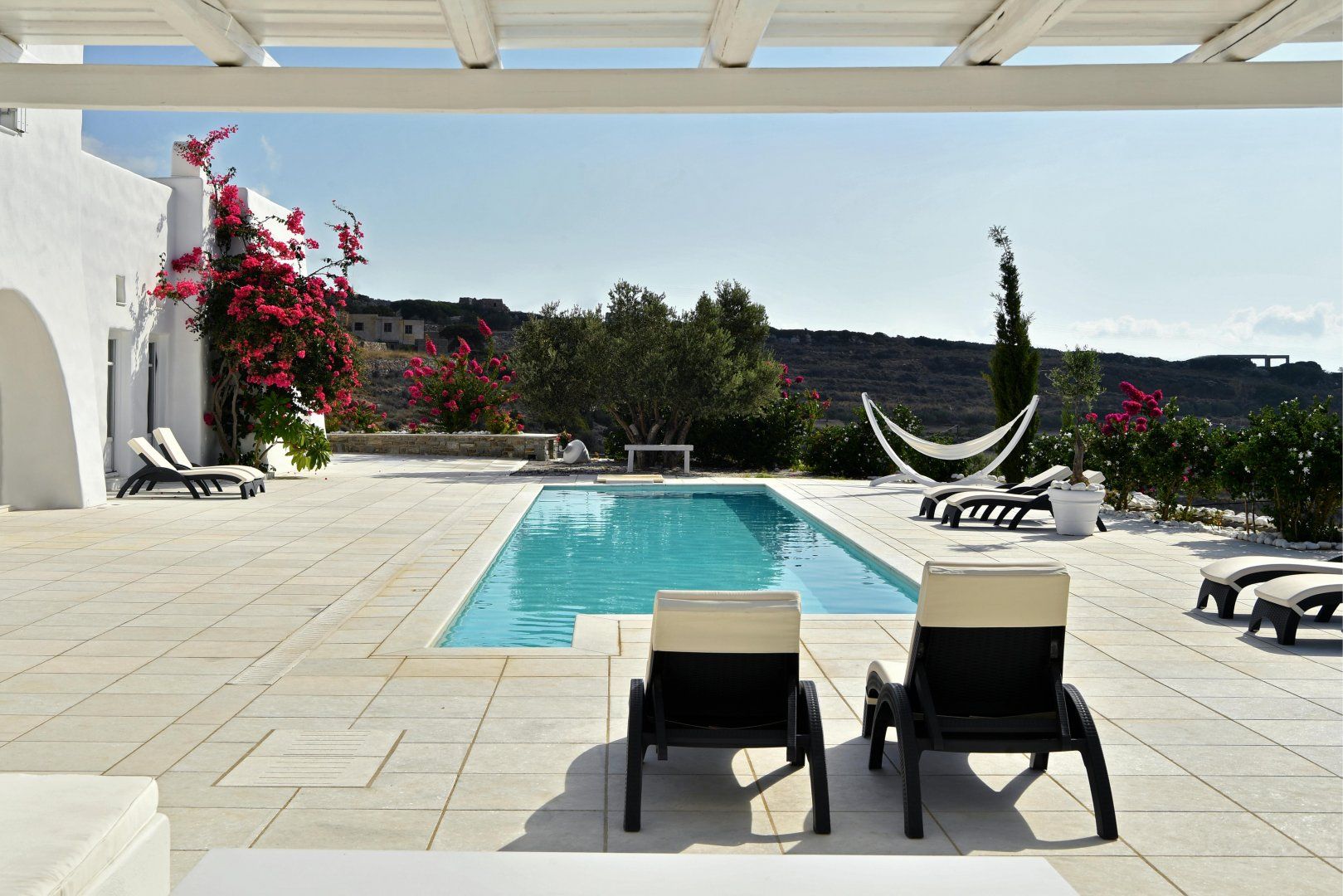 It's fair to say that nature has been kind to this hilltop villa on the island of Paros. As well as the stunning views of the mountainous landscape and the dazzling Aegean Sea, there's something of a microclimate at the address — the temperatures are generally two to three degrees lower than the rest of the island and there's substantially less humidity.