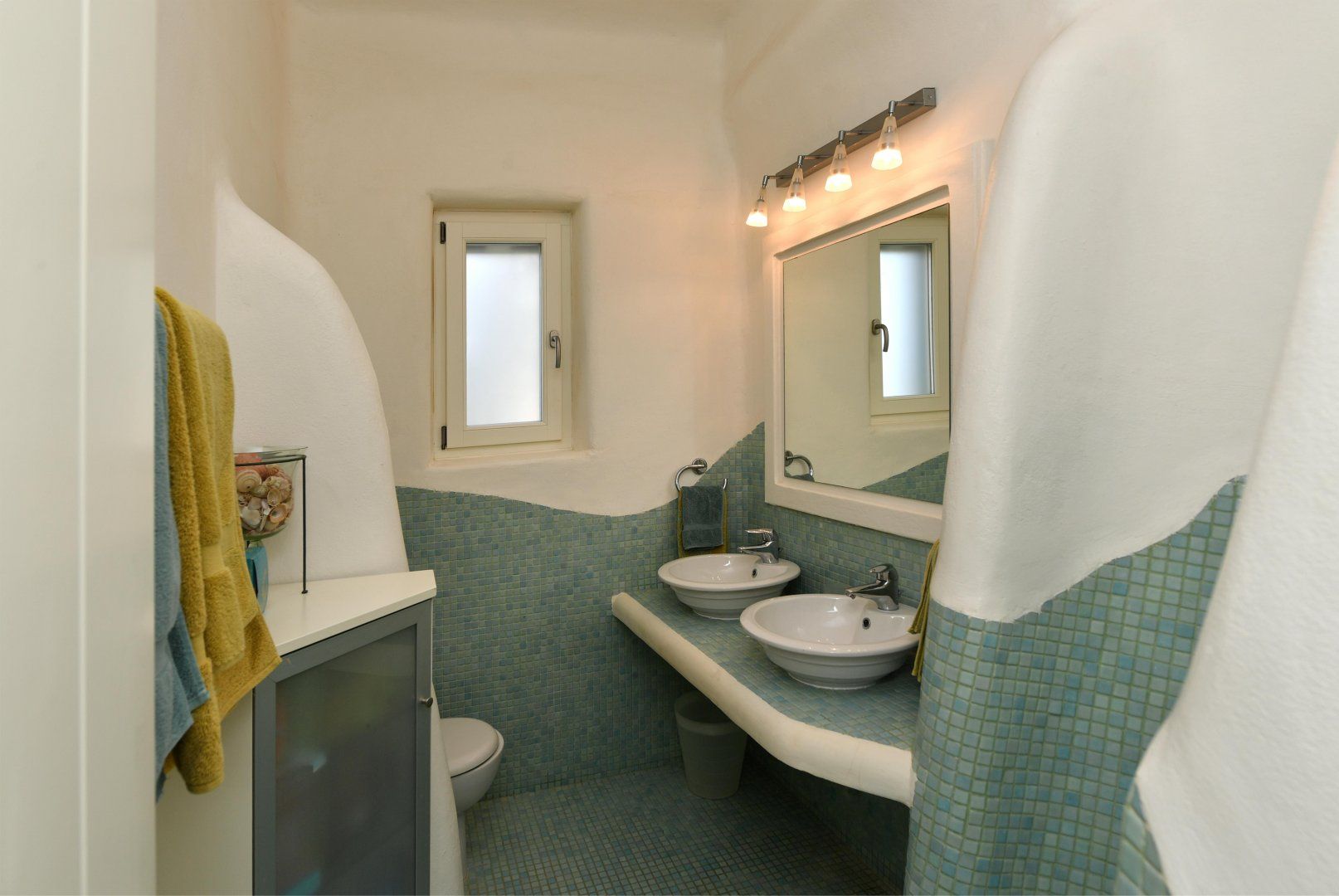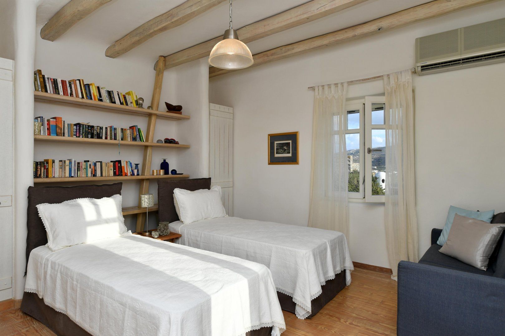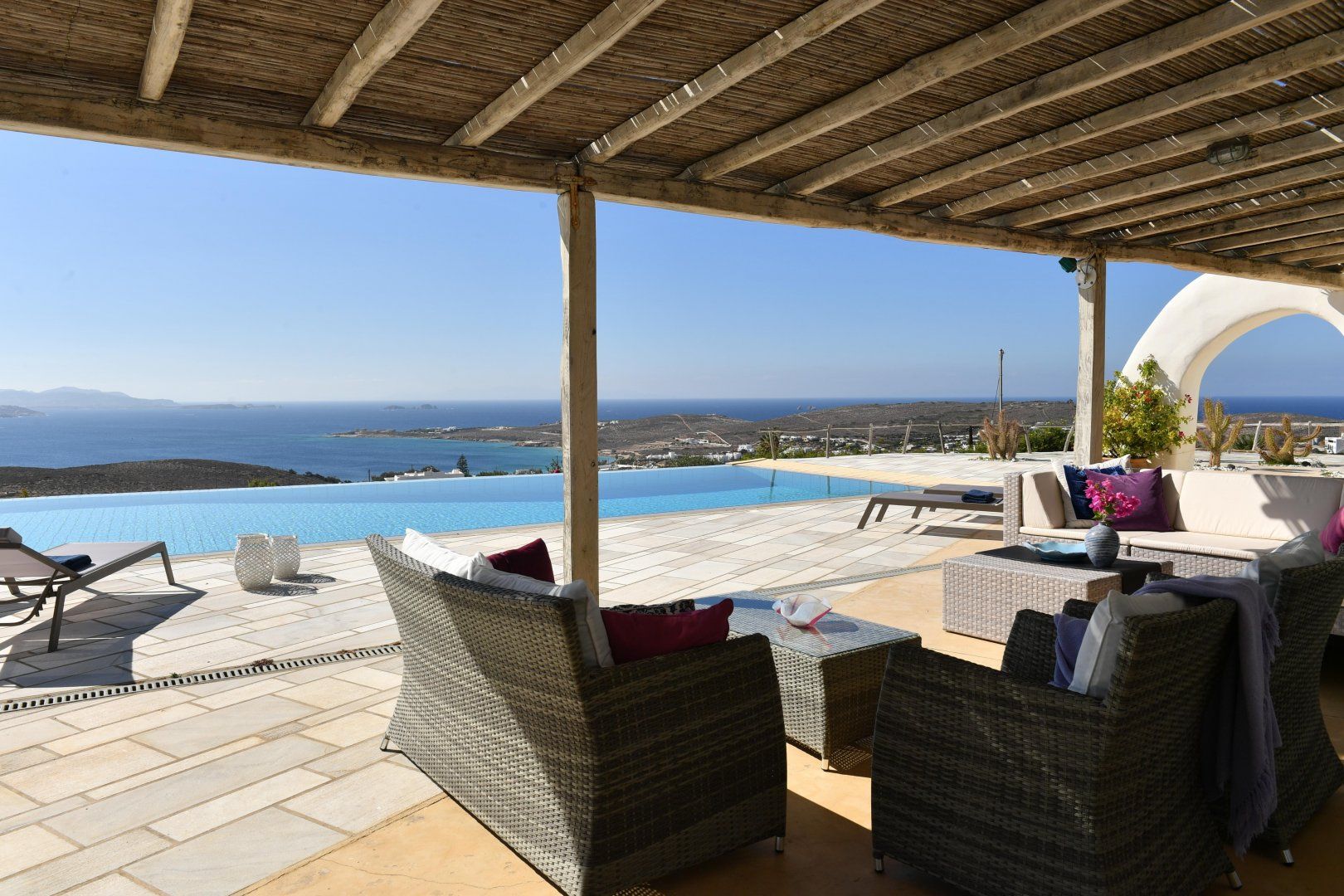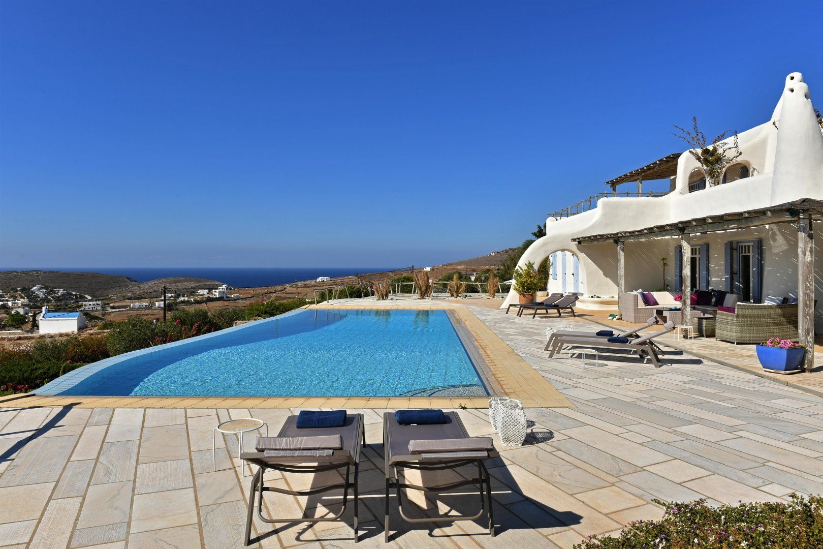 The island of Paros is begging to be explored if you can drag yourself away from this private paradise. Parikia, the capital, is only a seven-minute drive – head there for eateries, cultural landmarks and cobbled alleys lined with pretty white houses and flowered balconies. Sandy, picturesque beaches are a dime a dozen here and are all easily reached by car – including Krios, Marcelo and Livadia, just five minutes away.