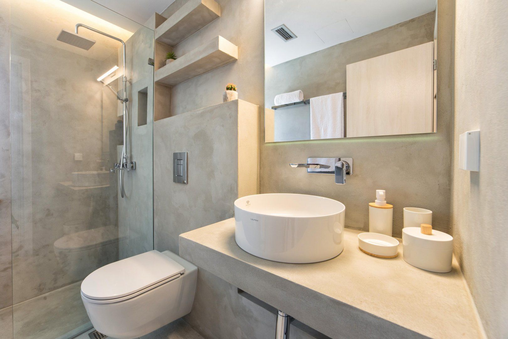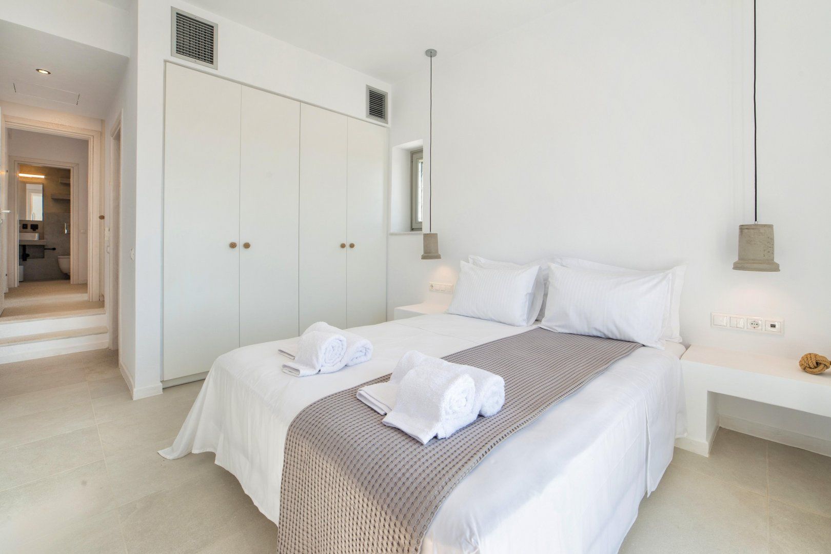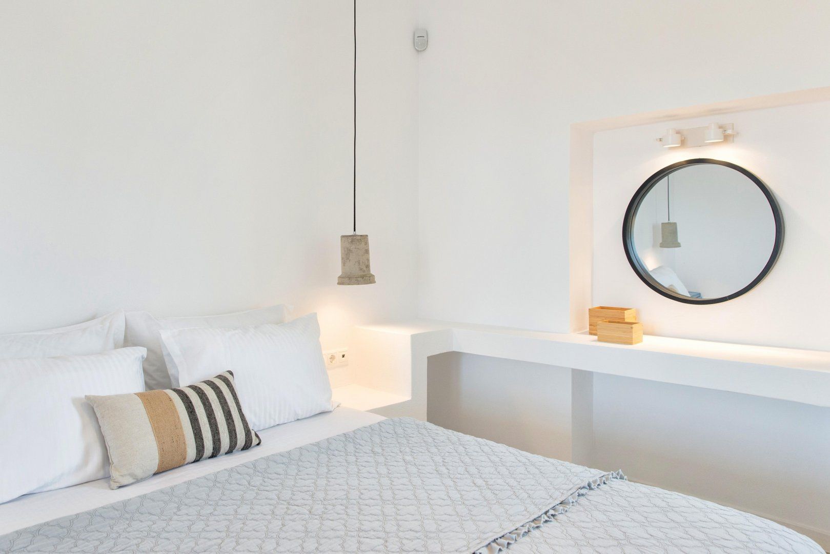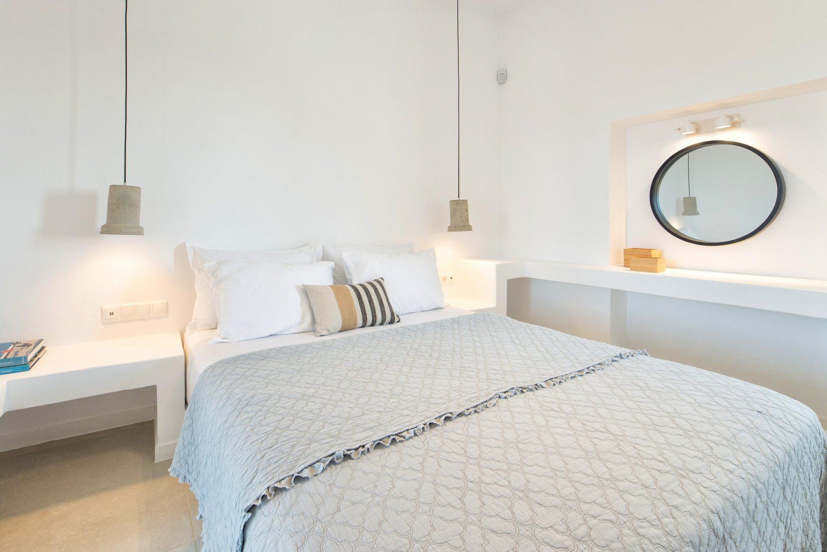 The building embraces Cycladic architectural trends for clean lines, boxy shapes and pure white walls. The outside space is dominated by the swimming pool, which is surrounded by loungers and a covered terrace area that's home to a traditional stone barbecue. It's perfectly possible to spend your whole day out here, admiring the Mediterranean panorama.