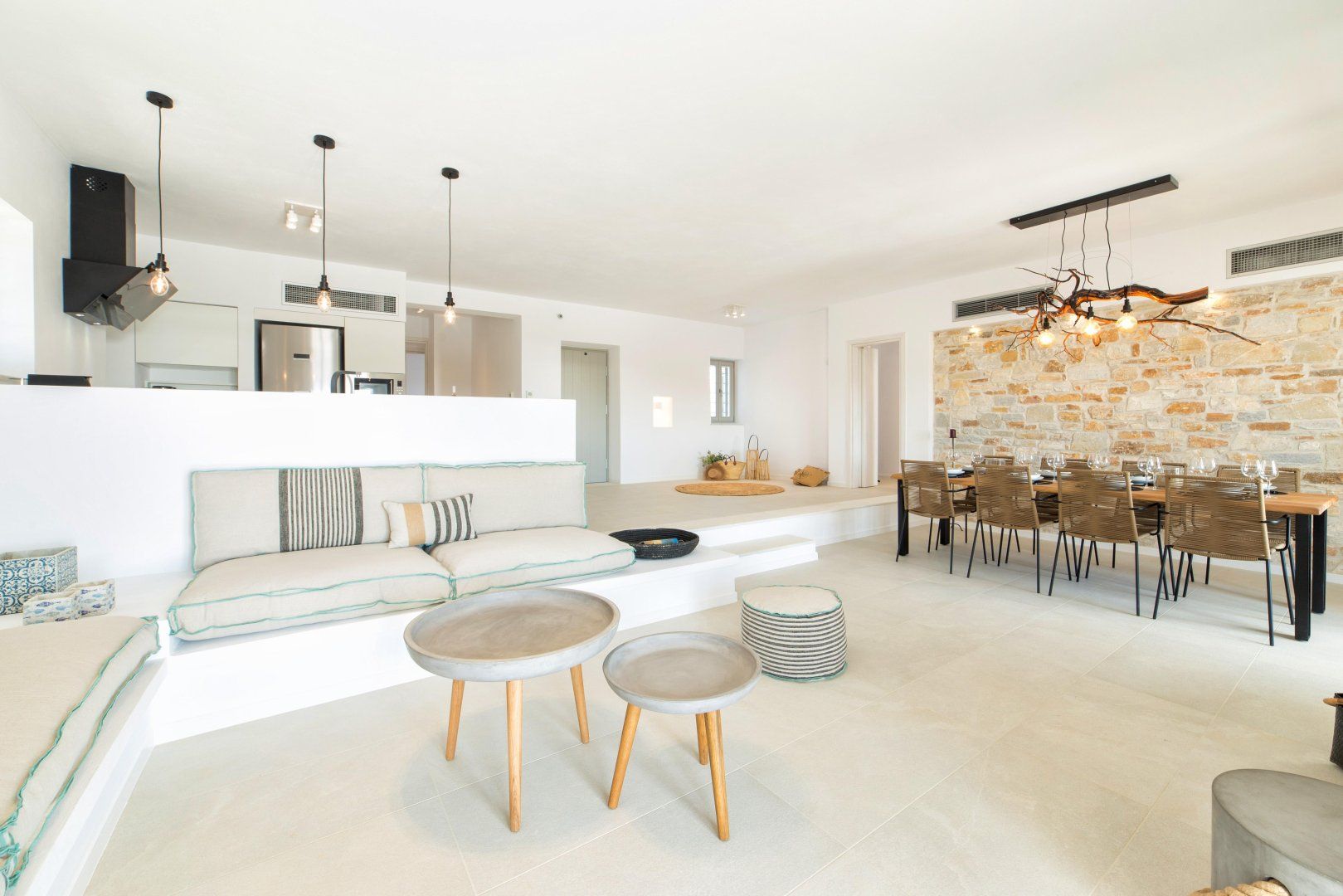 When presented with this prime spot in the south of Paros with a glorious view of the sparkling Aegean Sea in the distance, the two civil engineers that designed this villa decided to opt for simplicity. Judging by the finished project, we'd say that was a wise choice.