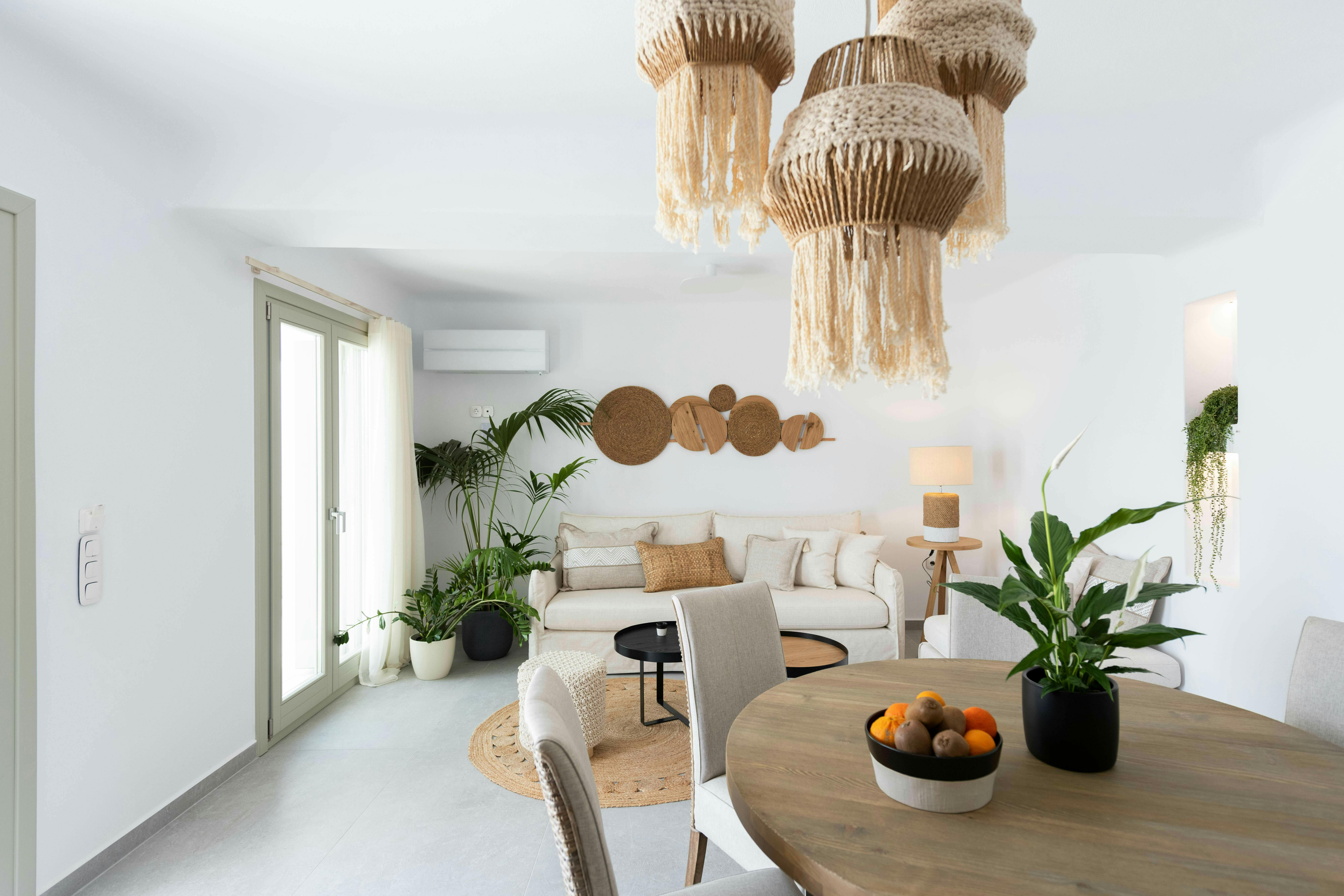 With stunning views of Antiparos and the sparkling Aegean Sea, this villa is perfect for enjoying the colourful sunsets. Relax by the private pool and later dine on the terrace or unwind in the modern open-plan living space. We love that both the elegantly designed bedrooms have their own en-suite bathroom too. And the location is great for exploring the island. It’s just a two-minute drive from the ferry port where you can get boats over to Antiparos, while the capital town, Parikia, is under a ten-minute drive away. Or for a day at the beach, the nearest is just under 2 kilometres from this home.