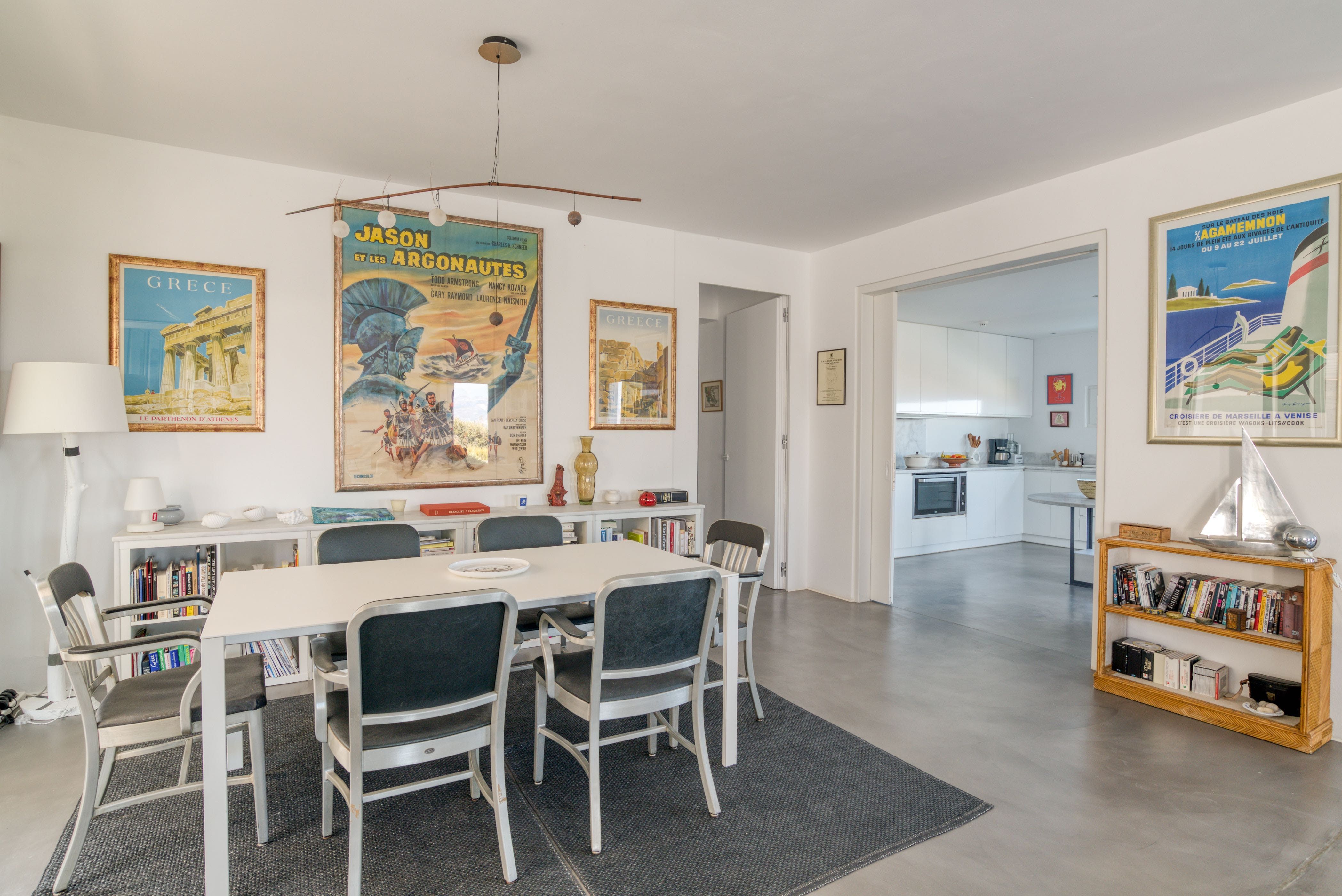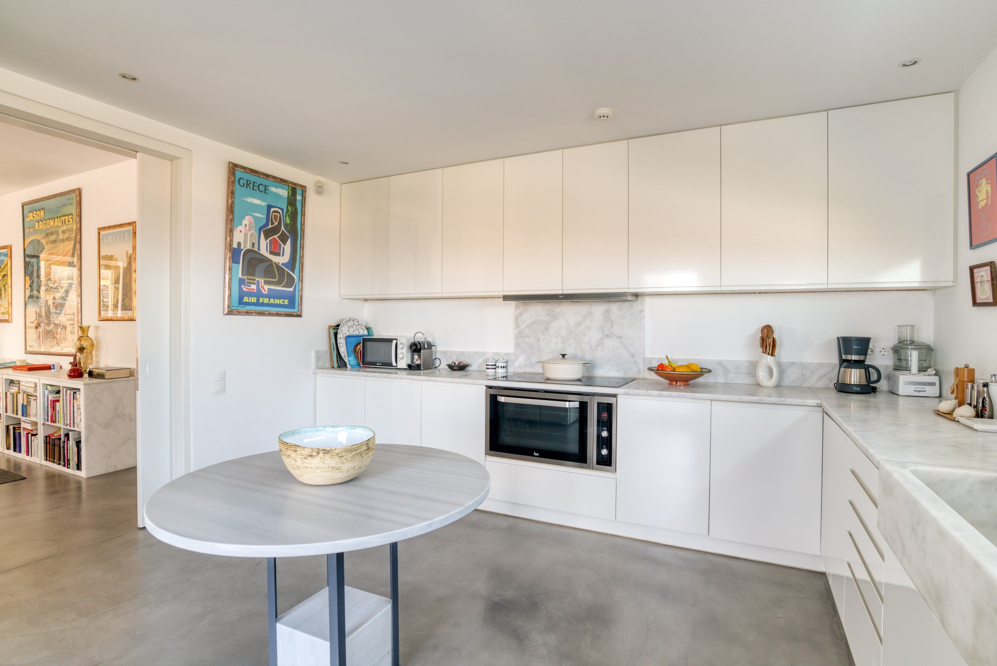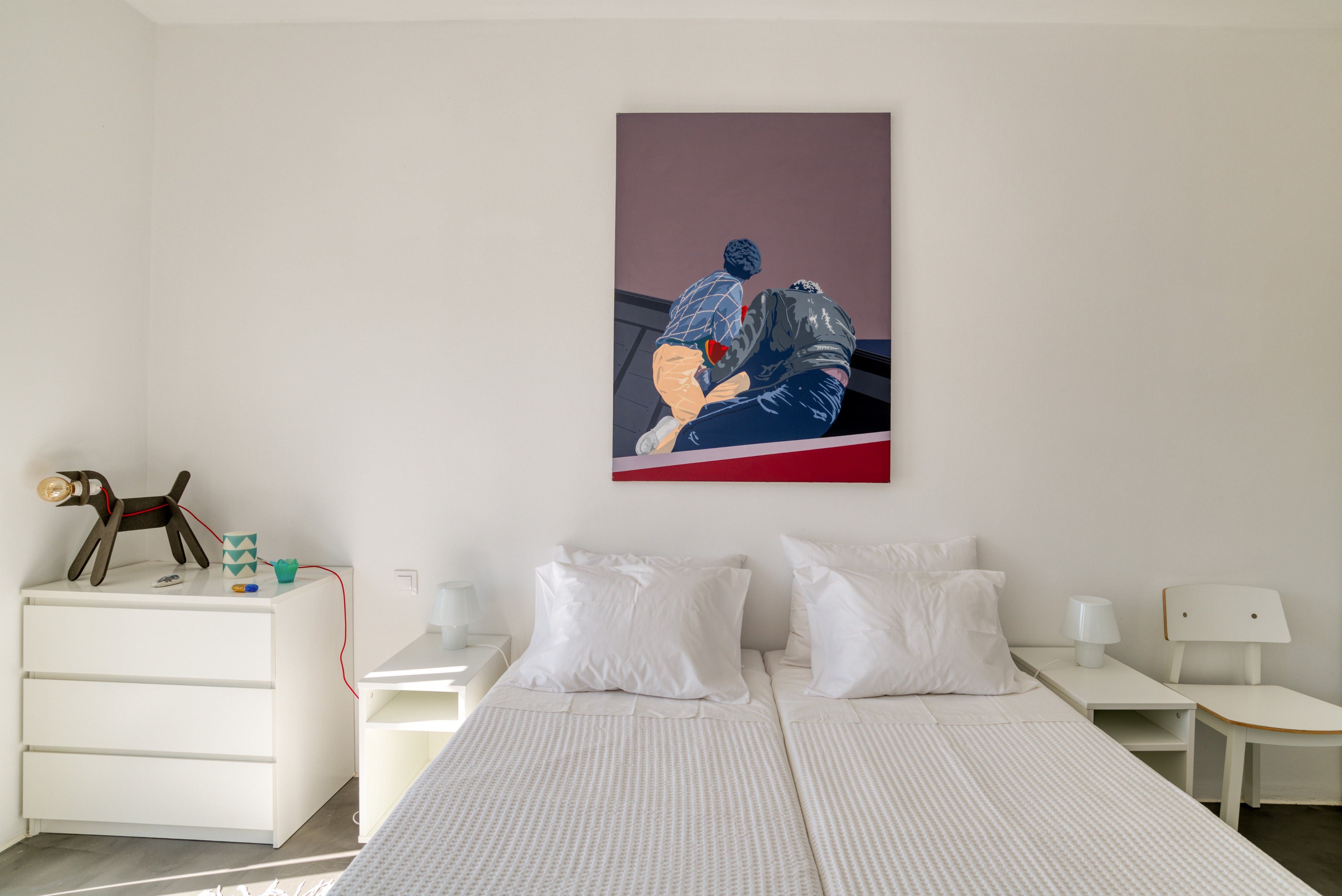 Stepping inside, you can see that this place was curated by a French auctioneer, with bold modern artworks sitting on gallery-white walls at every turn. The vintage chairs and old-style writing bureaus in the living room give the feeling of staying in a museum, and there’s a marble fireplace for cosy evenings in. The dining room is a delightful medley of vintage prints and book-stuffed shelves, and the bedrooms continue the artsy retreat theme.