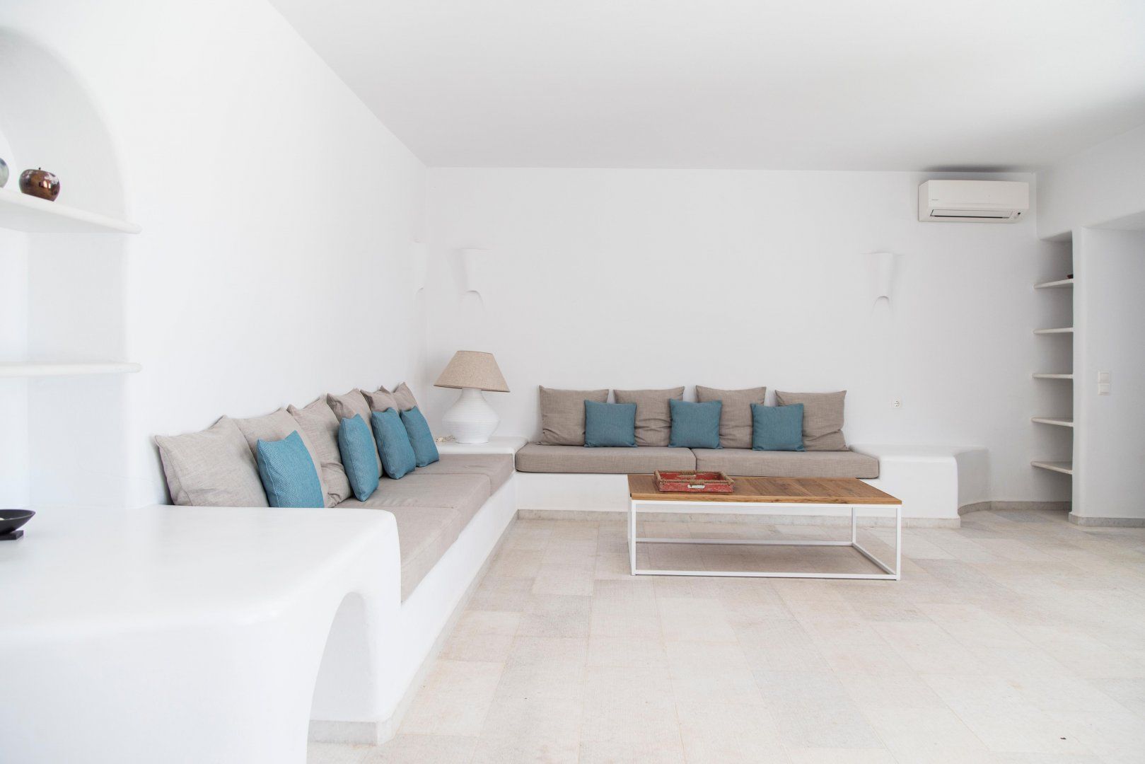 Found on the northeast coast of Paros, this white-washed villa rests on the glimmering coastline of Santa Maria. With crystal clear Cycladic waters lapping on the estate's shores, wake up with a mindful soul that feels relaxed, rejuvenated and in touch with the surrounding natural beauty.