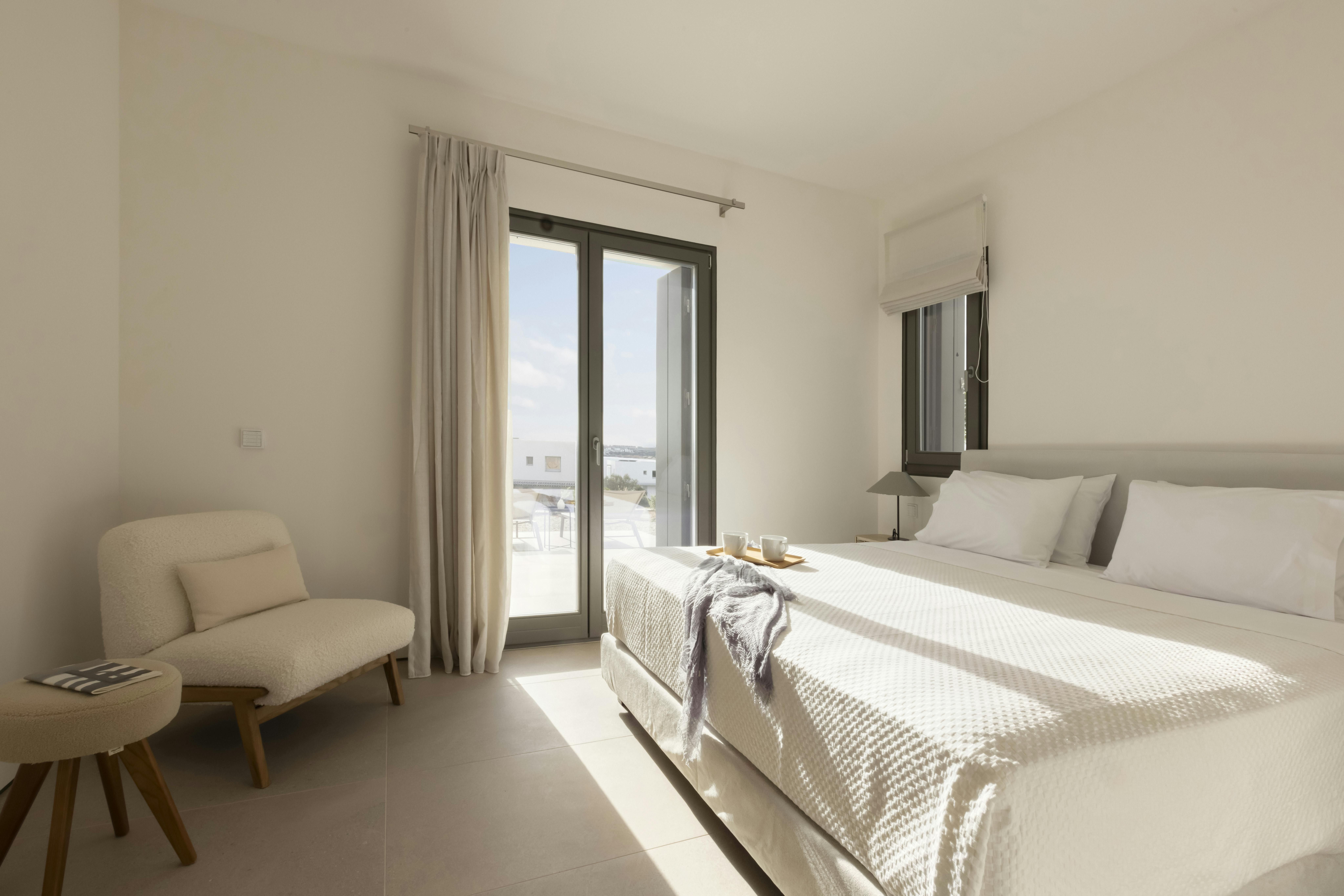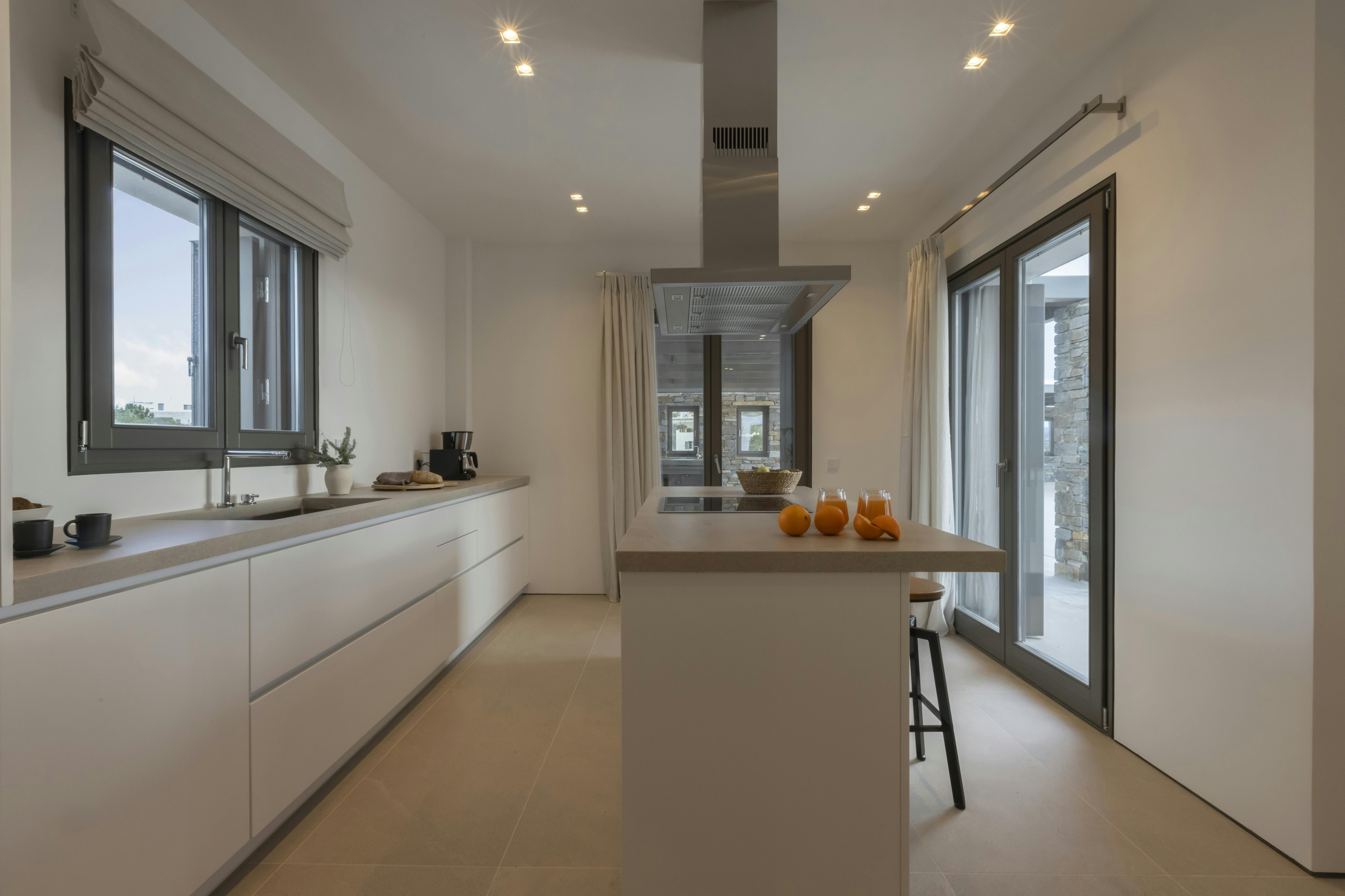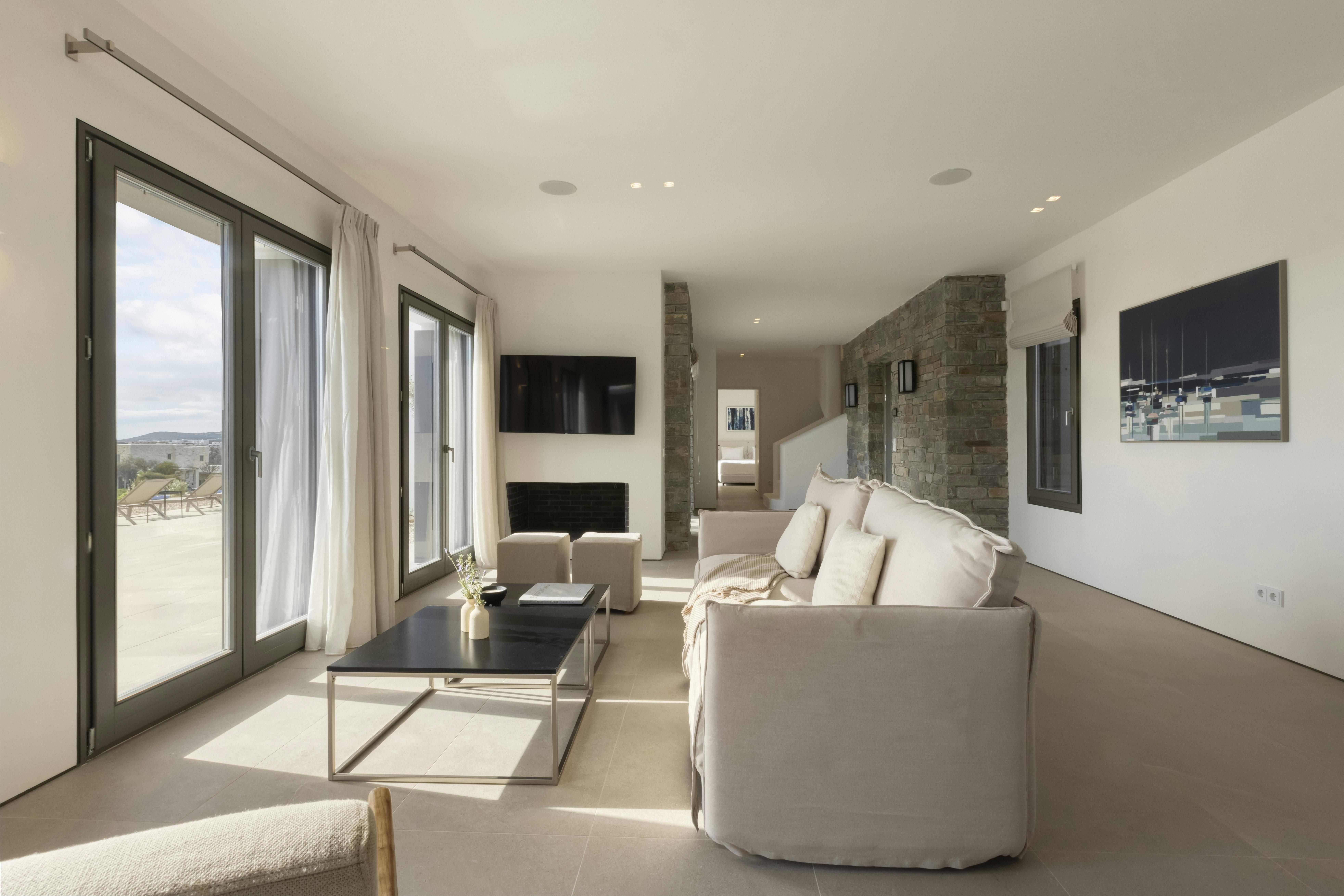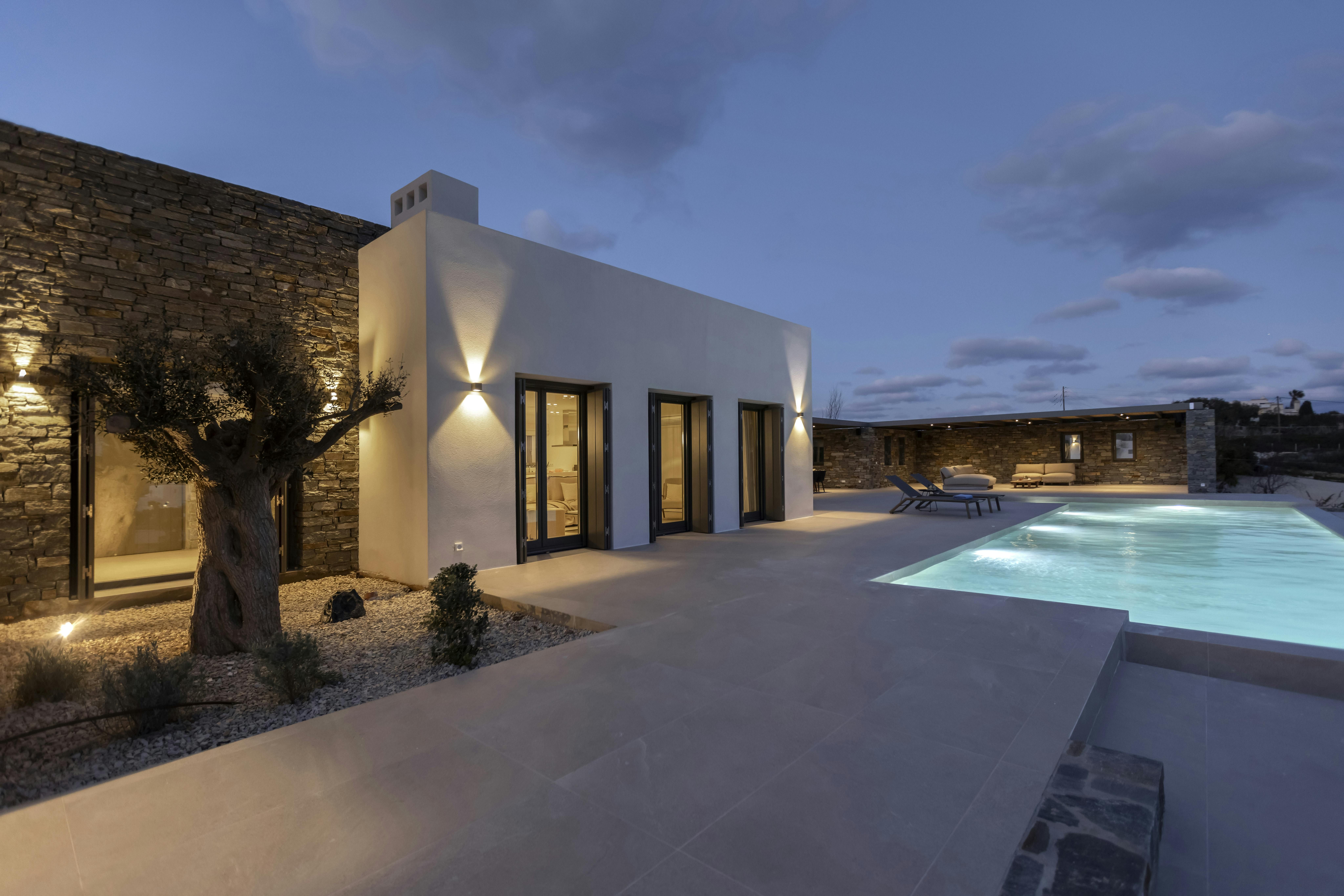 This villa boasts private access to the beach, just a two-minute walk away. The style is contemporary and sleek, with bright, open spaces that offer plenty of room to unwind and come together. Get your favourite playlist going on the outdoor sound system and stretch out by the infinity pool, with lunch served alfresco on the terrace and sunset drinks in the lounge. When you're ready to explore, the nearest village is 5 kilometres away, with the port only thirty minutes down the road.