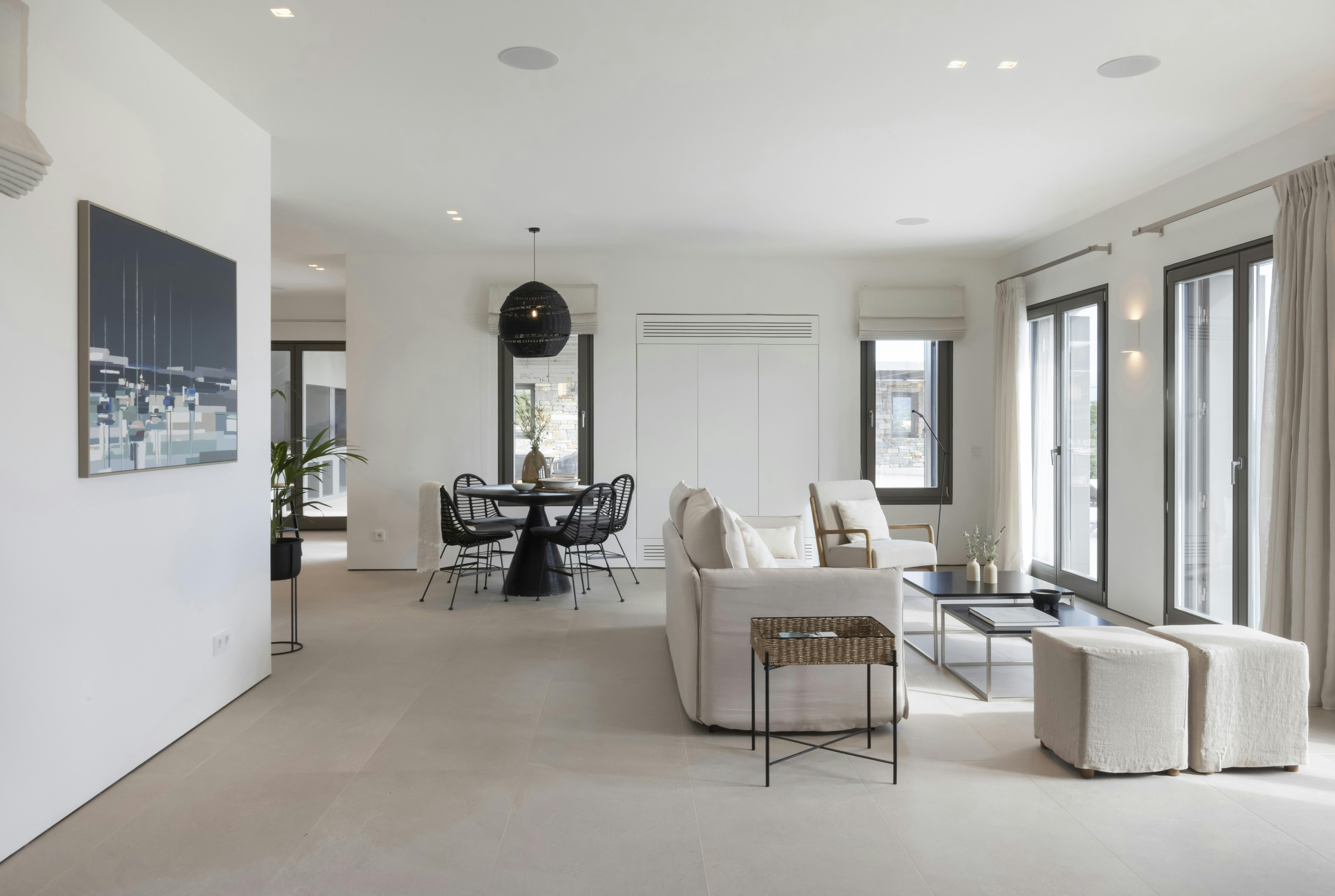 With private access to the beach – only a two-minute walk away – and sweeping sea views, it's hard to beat the location of this island home. Travelling as a big group? There's enough space for all twenty of you to pile in here across two separate villas, each with five bedrooms, its own kitchen, living space, and private pool. Plug your playlist into the outdoor sound system and fire up the barbecue for alfresco feasts, or better yet, bring in a private chef to do the hard work for you. When you fancy a change of pace, the fishing village of Naoussa is just 5 kilometres down the road.
