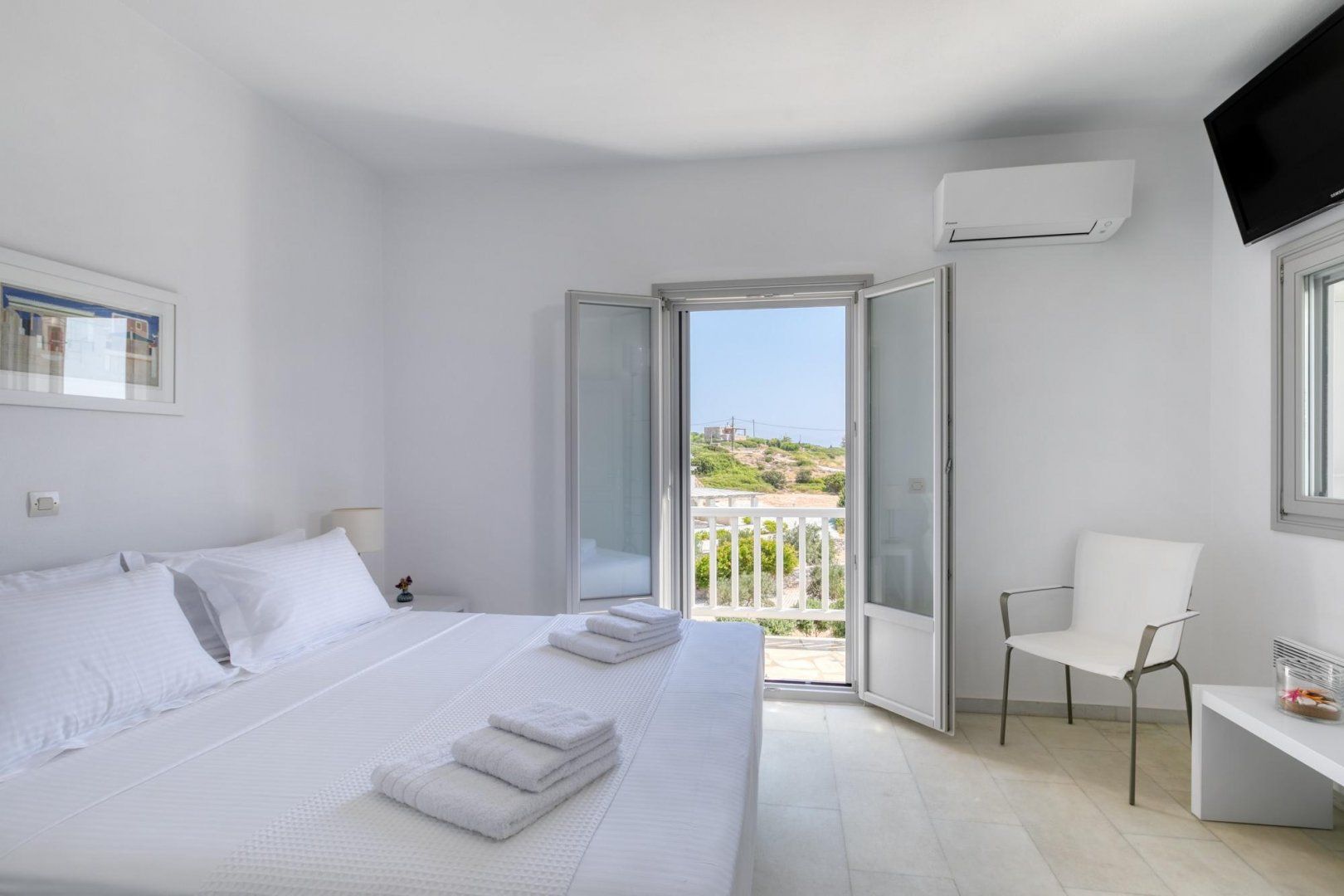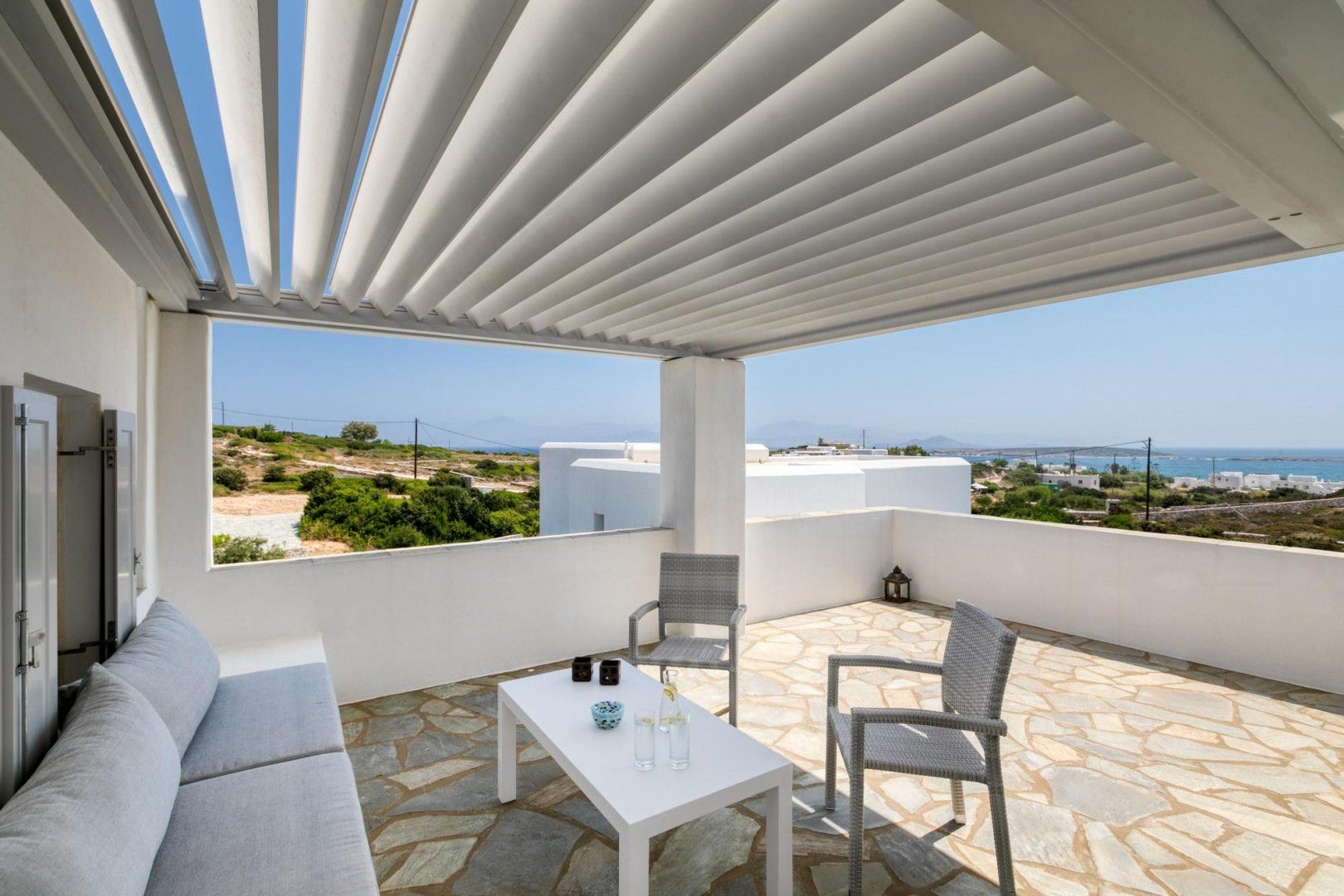 Tucked away in a quiet spot in the north of the island of Paros, this gorgeous family-friendly villa entices guests with views across the glistening waters of the Aegean, towards the nearby islands of Naxos and Filidi.