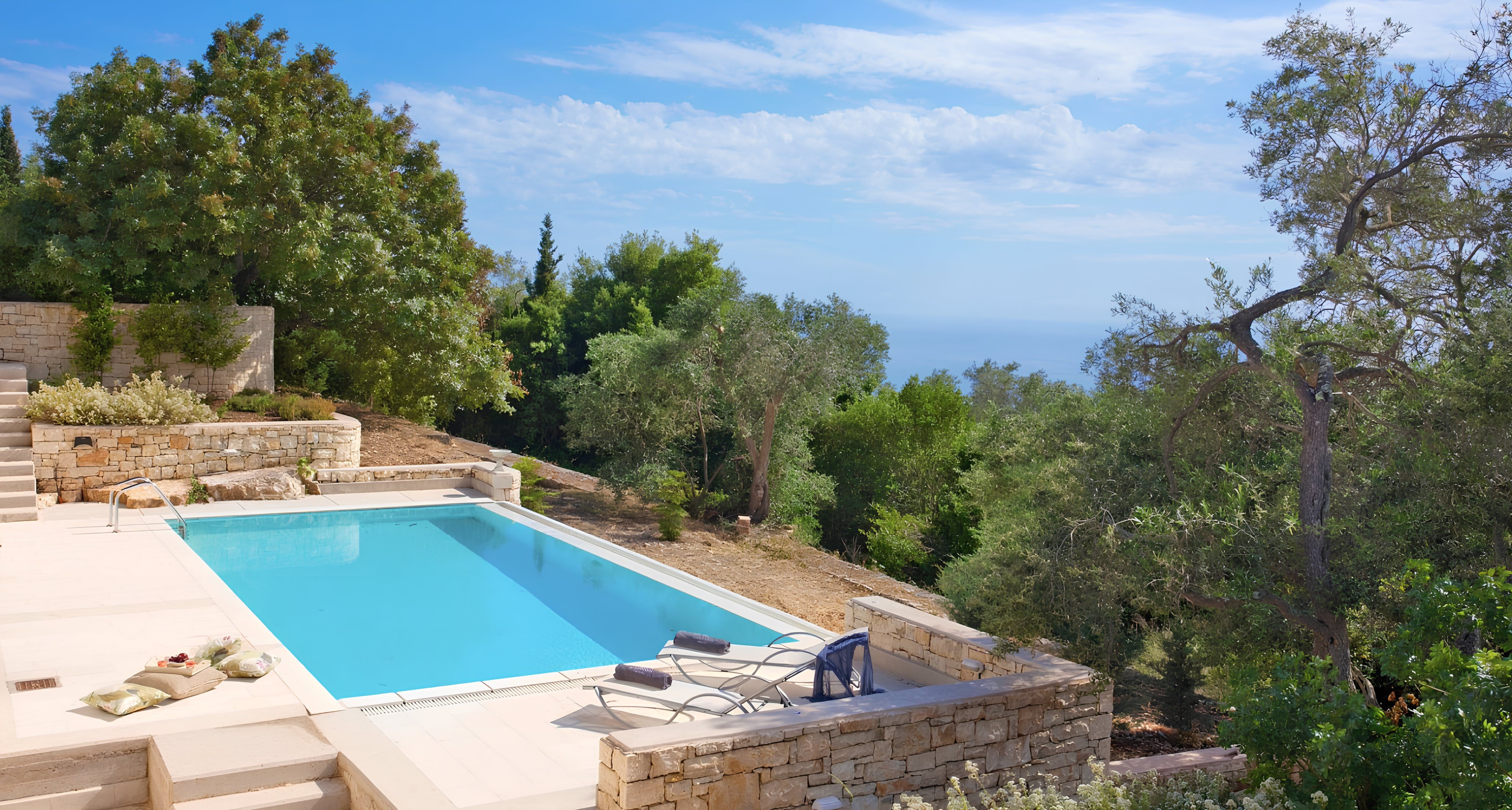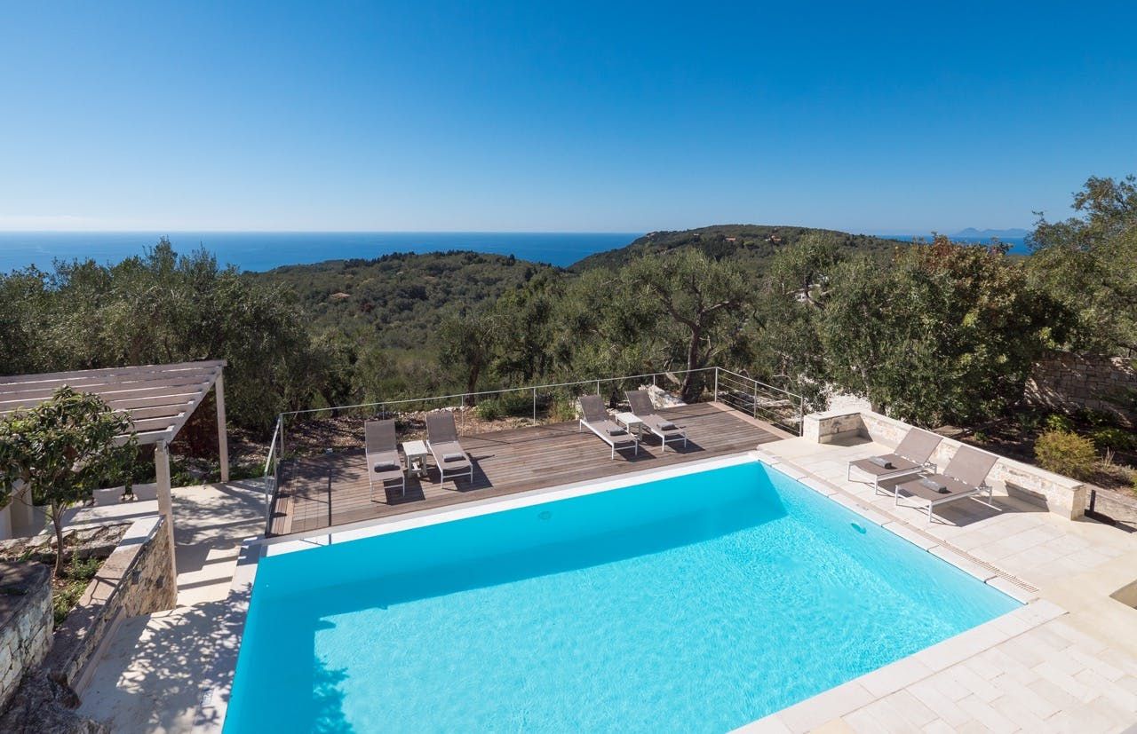 This stone villa offers breathtaking views of the Ionian Sea and is situated just a five-minute drive from the Blue Caves. The home features an outdoor pool, a terrace for lounging, and two alfresco dining areas – enjoy breakfasts with the early morning sun and dinners with the sunset. The interiors are bright, with plenty of space for a group of friends or family to enjoy quality time. Bear in mind that although this home benefits from a coastal location, a car is necessary here to get the most out of your stay.
