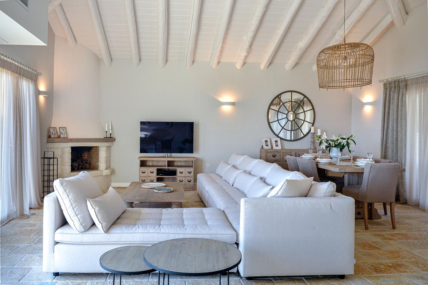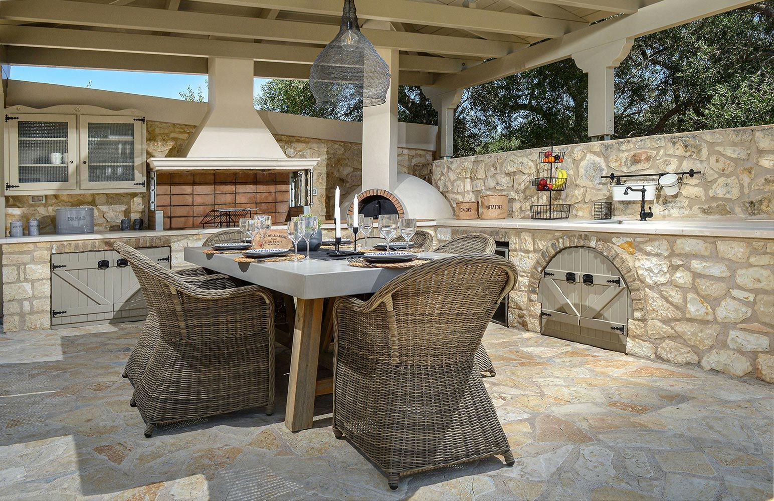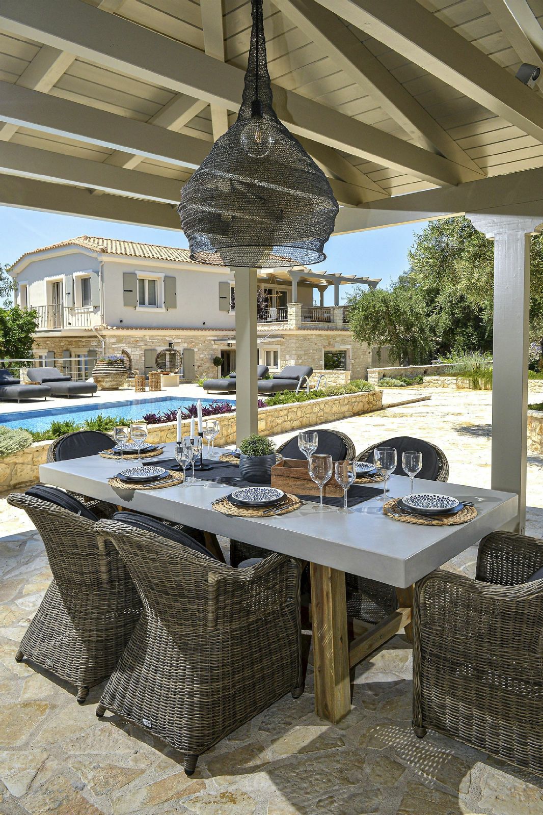 We love this home’s location – it’s just a five-minute drive to Gaios, while the island’s pristine beaches and picture-perfect villages are all within easy reach. Inside, the villa has a calm, contemporary aesthetic with large sofas to kick back on after a day of island exploring. There’s a well-equipped kitchen with views stretching over to the turquoise sea, as well as three serene en-suite bedrooms – so every couple has their own spot to get ready. But the pièce de resistance? The outdoor terrace with its sparkling pool and outdoor kitchen.