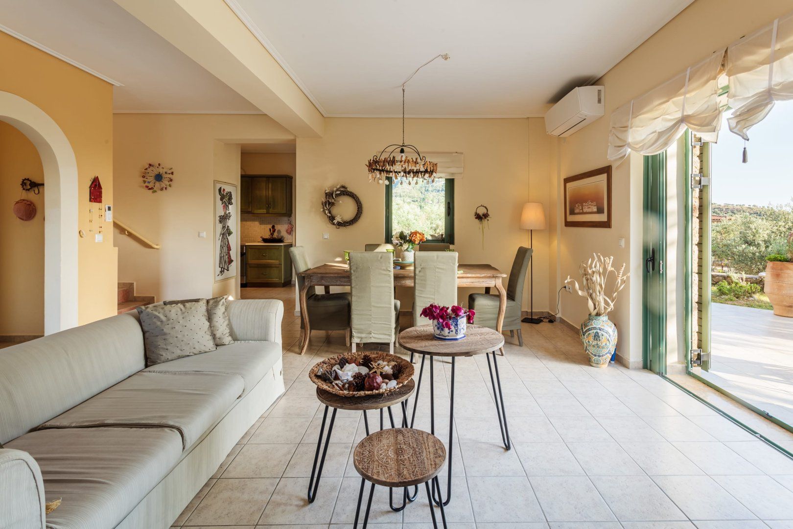 Nestled within a garden of olive trees with views across the Taïgetos mountains, everything about this home celebrates the rustic beauty of its setting.