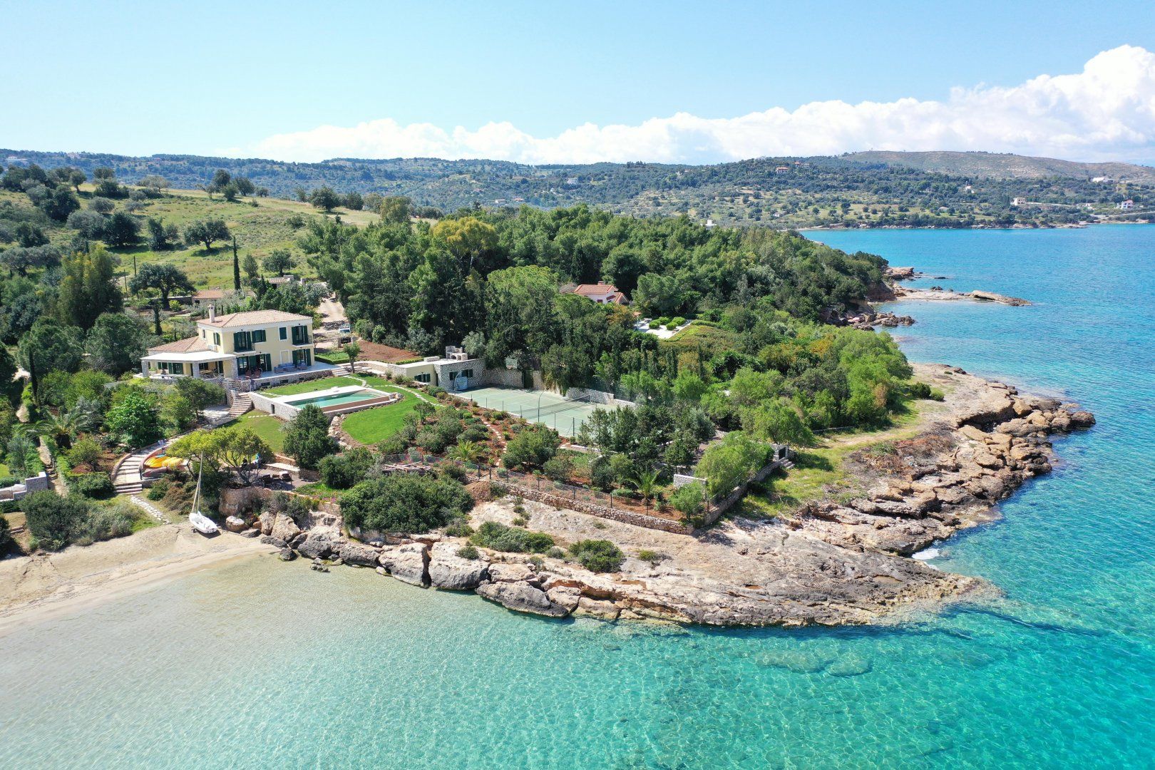 Whether you like to stay active during your holidays or you prefer to spend the bulk of your time horizontal, this dreamy villa found in a cove on the Argolic Gulf has you covered.