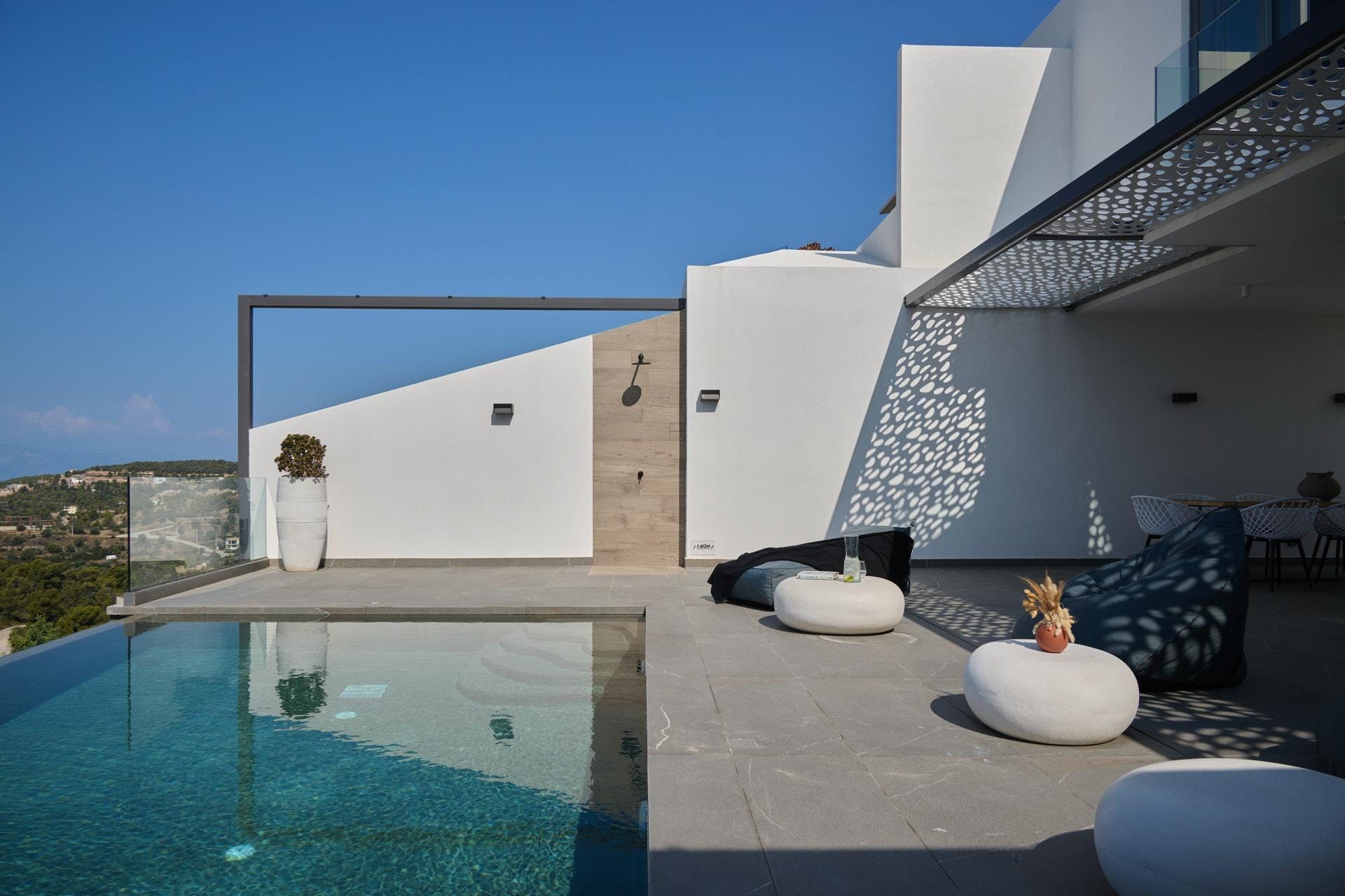 Groups of more than eight guests can find comfort during their stay by combining Villa Electra and Villa Orestis in one. The property combines two stunning buildings, to welcome you and yours into a heavenly retreat of luxury and comfort. In a world where comfort is a precious commodity, the property allows for carefree repose in privacy and style. Revel in the sun as you lounge poolside, admire stunning sea views and relax in a traditional steam bath, without compromising luxurious comforts throughout this extraordinary villa.