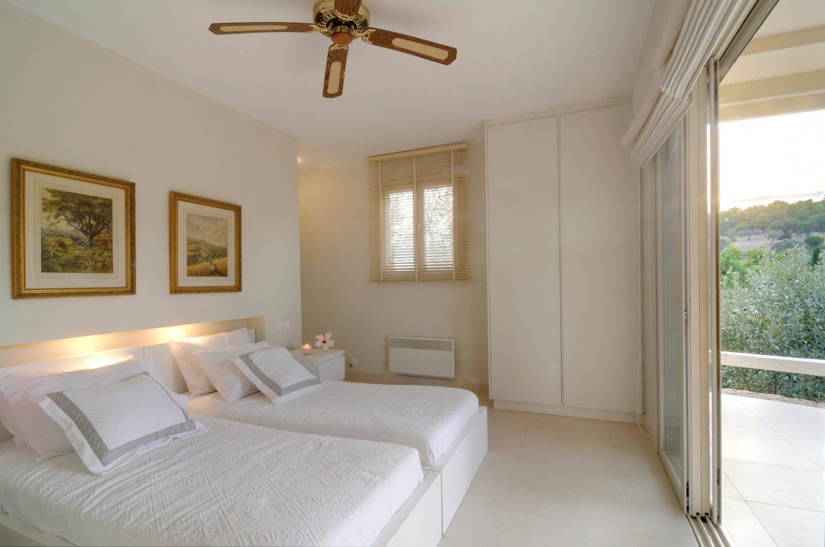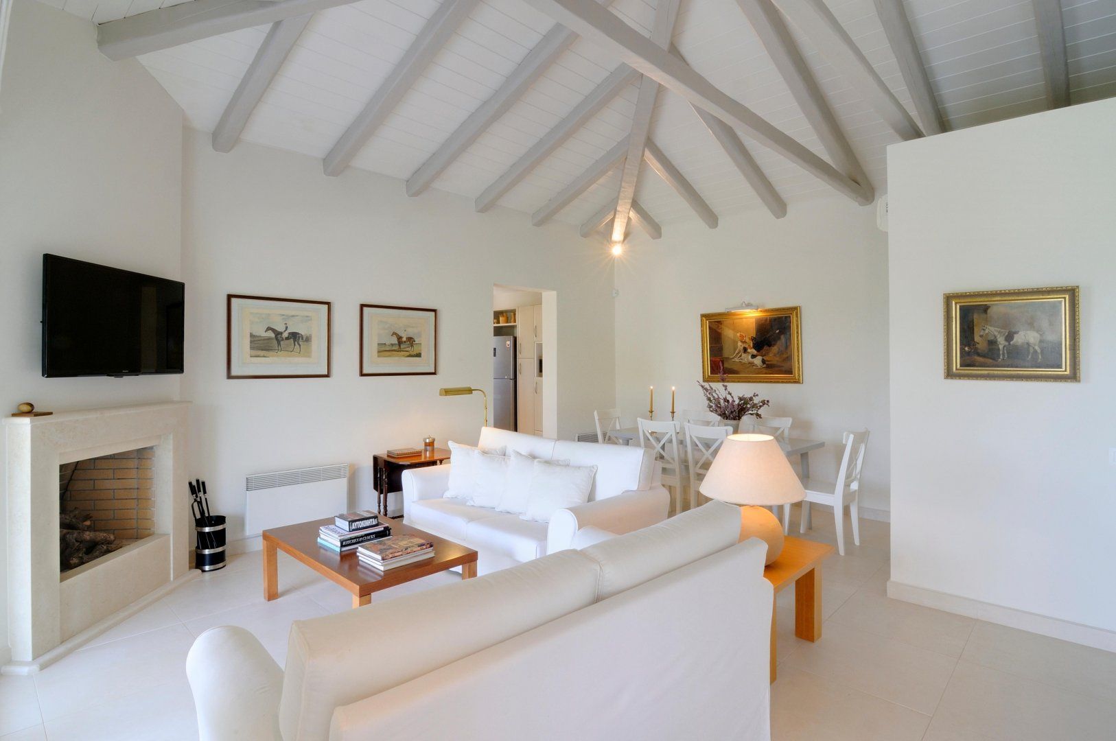 Inside the villa, you'll walk among a sea of white, punctuated by deluxe wooden furnishings and chic artwork. It stays cool, even in the scorching summer, perfect for a temporary shelter from the sun.