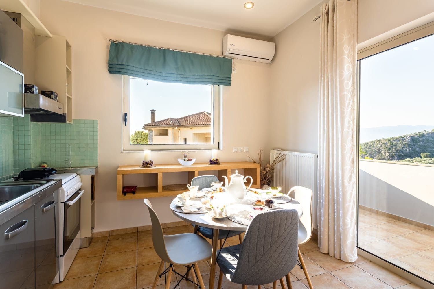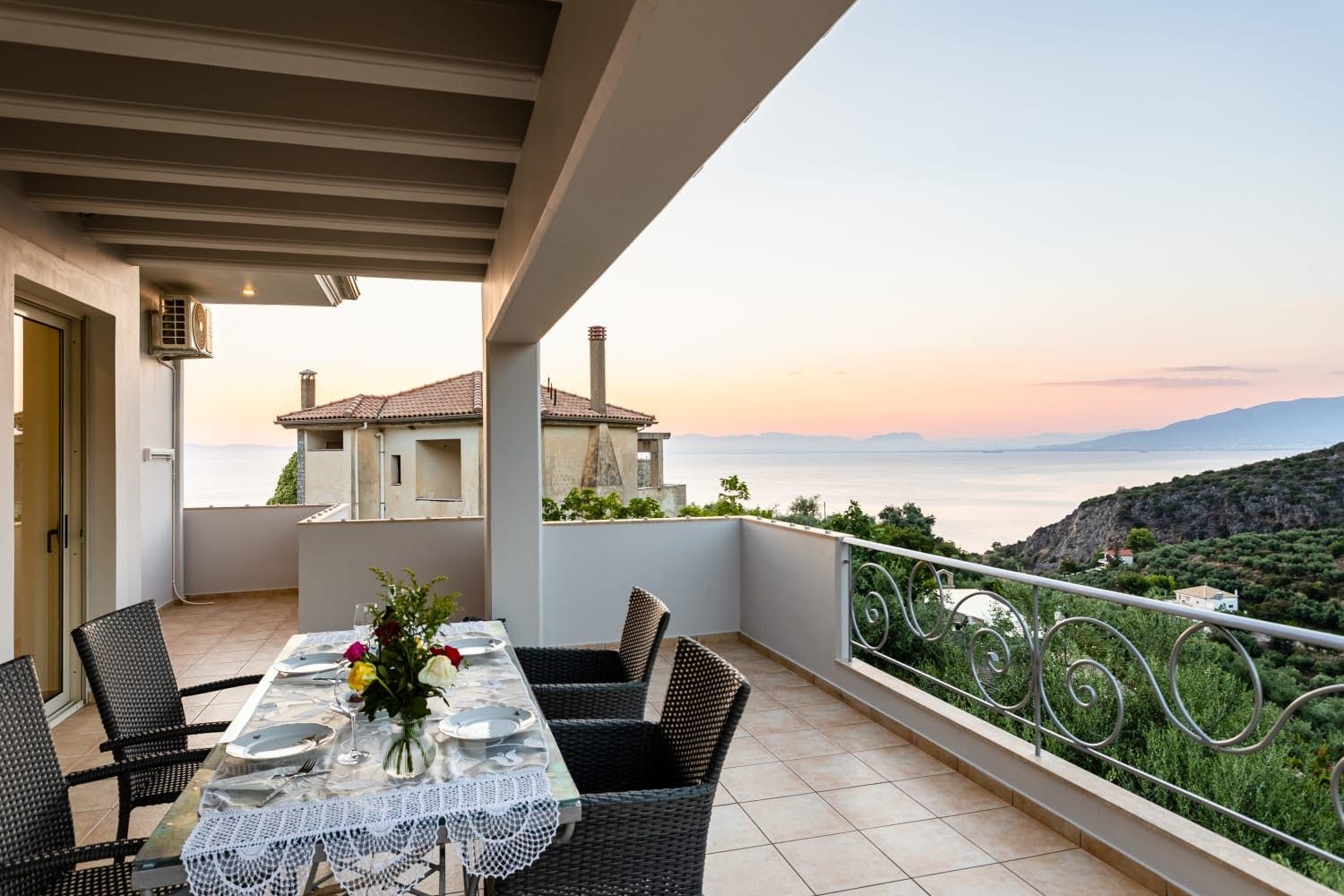Designed for spending quality time together, this open-plan apartment is all about informality and ease, as it flows straight to its standout feature – the balcony. If you have remote work to do, you will certainly be able to focus in this well-lit office. Each morning, open up the doors and let the sea breeze blow inside. Make plans over a Peloponnese breakfast at this intimate dining table. Following an adventurous road trip, why don't you come back to your shared garden for a social barbecue? We can't help but fall in love with the incomparable view from your private balcony, guaranteeing gorgeous sunsets every evening.