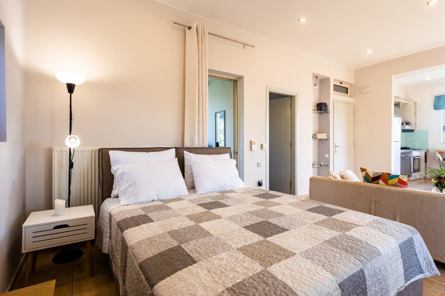 Far away from the everyday stresses of city life, your idyllic studio home sits a mere five minutes from the pebble beach of Kitries. This picturesque fishing village invites you to slow down among its hilly vistas, traditional taverns, and seaside restaurants. There is no better place for a relaxing and romantic getaway on the Messenian Gulf.