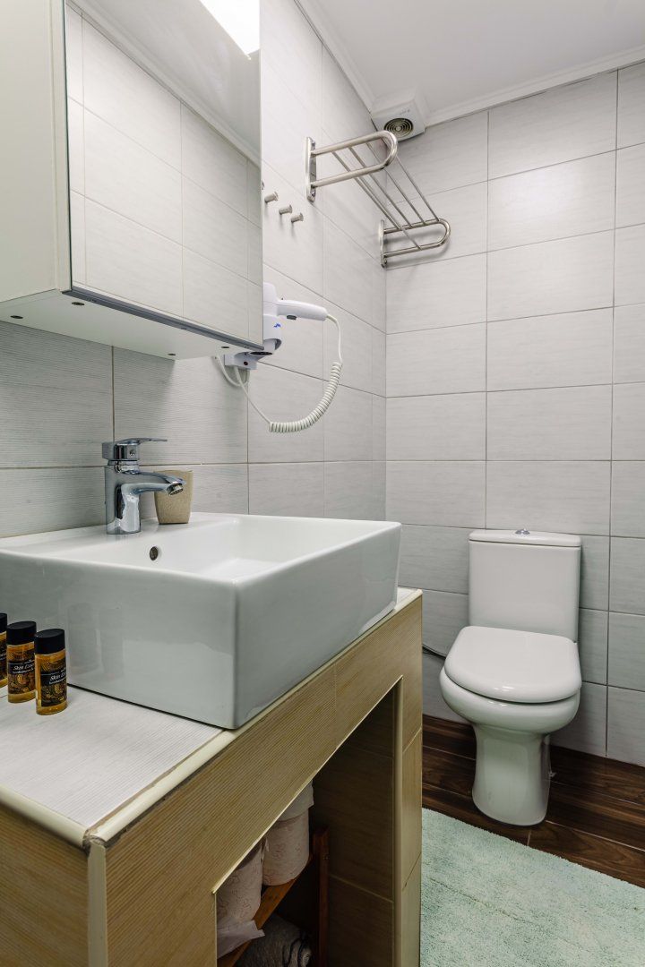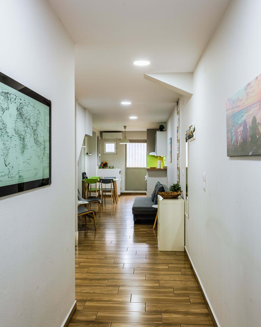 There's a contemporary sheen to the interior design, with Scandi-inspired furnishings and smart wooden floors rubbing shoulders with bursts of bright colours and artwork on the walls. The narrow shape of the space means that there aren't all too many windows and natural light, but there's a good amount of spotlights to combat any potential dullness.