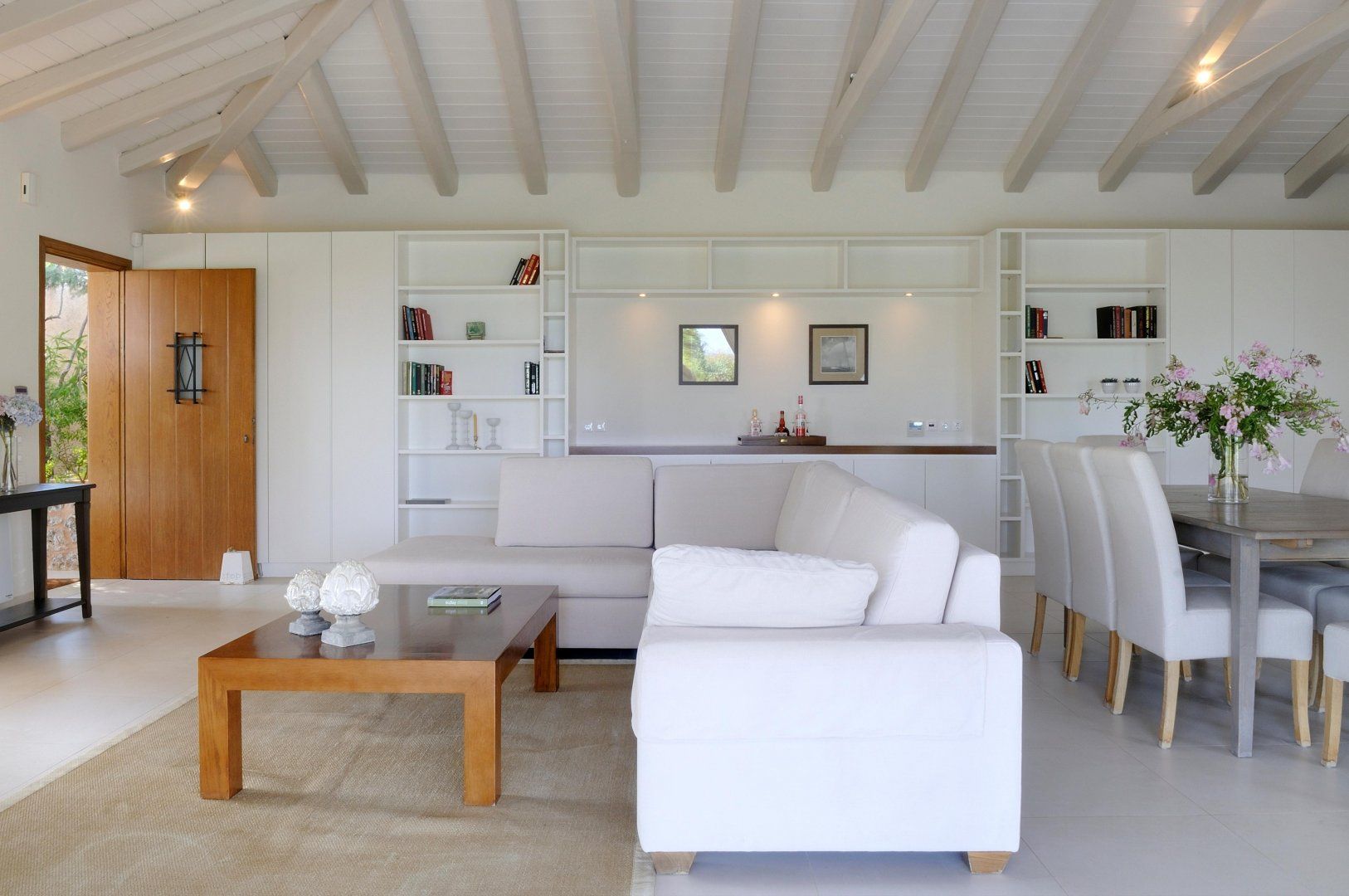 The villa's interior feels bright and breezy thanks to the large glass windows, high vaulted ceilings and the whitewashed walls, while the furnishings are generally contemporary in style, particularly the transparent dining room chairs and the super-sleek bathrooms.