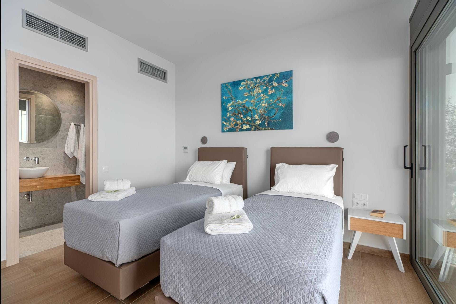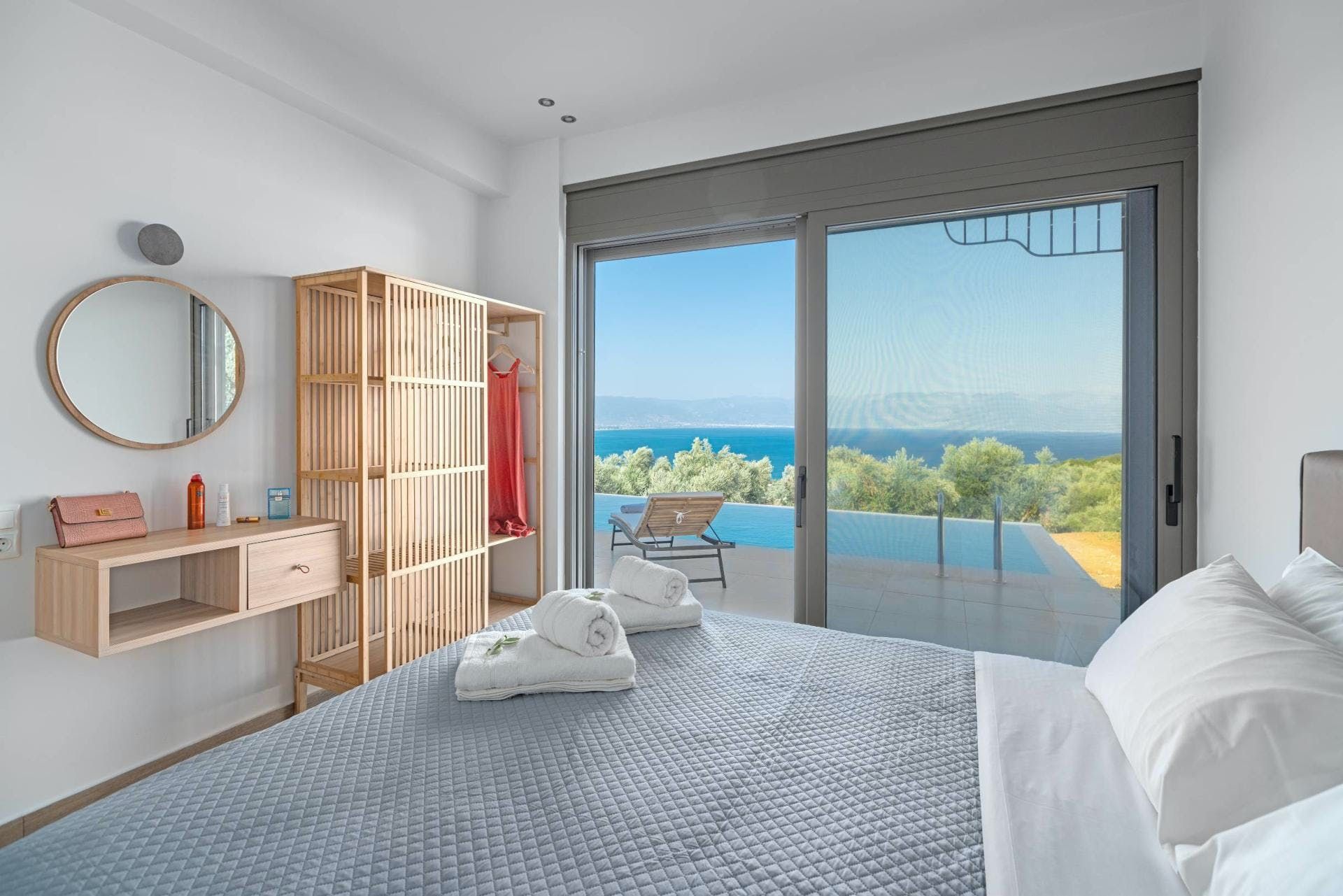 You’ll find this villa ranged up in the hillside, a ten-minute drive from Petalidi, a coastal town home to family-run tavernas and a small beach. It might not be the most characterful home in our collection, but it's functional yet comfortable, with two en-suite bathrooms providing privacy and convenience. Outside, the terrace is geared up for relaxing thanks to the loungers. And if you need to take a break from the heat, that’s when the swimming pool and shady spots come in handy.