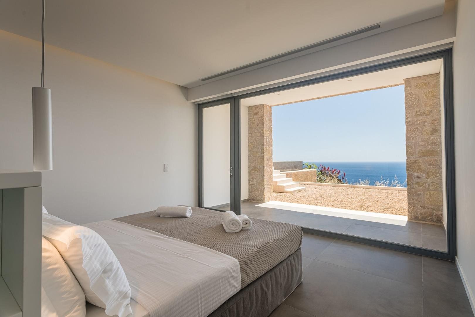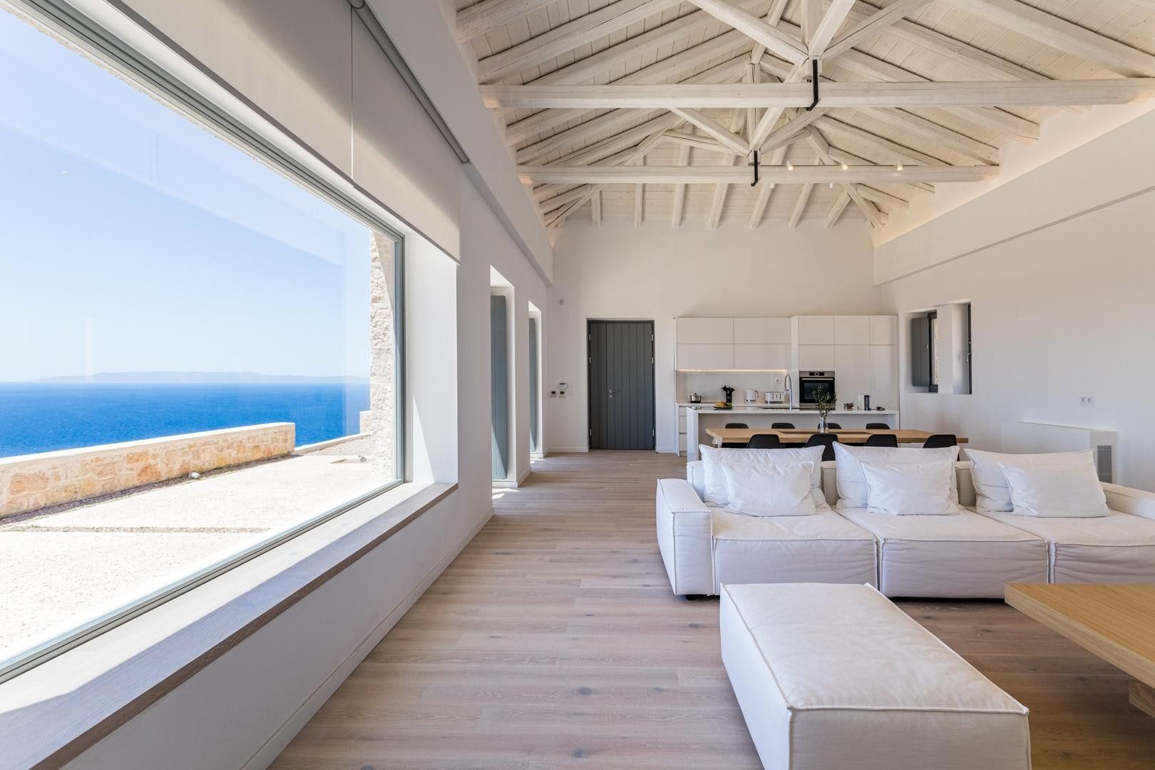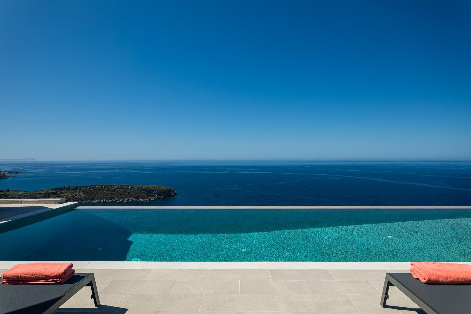 When you're not lounging poolside with the Grecian heat on your skin, hang out indoors and hit the air-con switch. Your hosts have opted for clean, contemporary decor that lets the outside in through floor-to-ceiling windows. Both of the sitting rooms and two double bedrooms look directly onto the expanse of sea, cradled by low hills on either side.