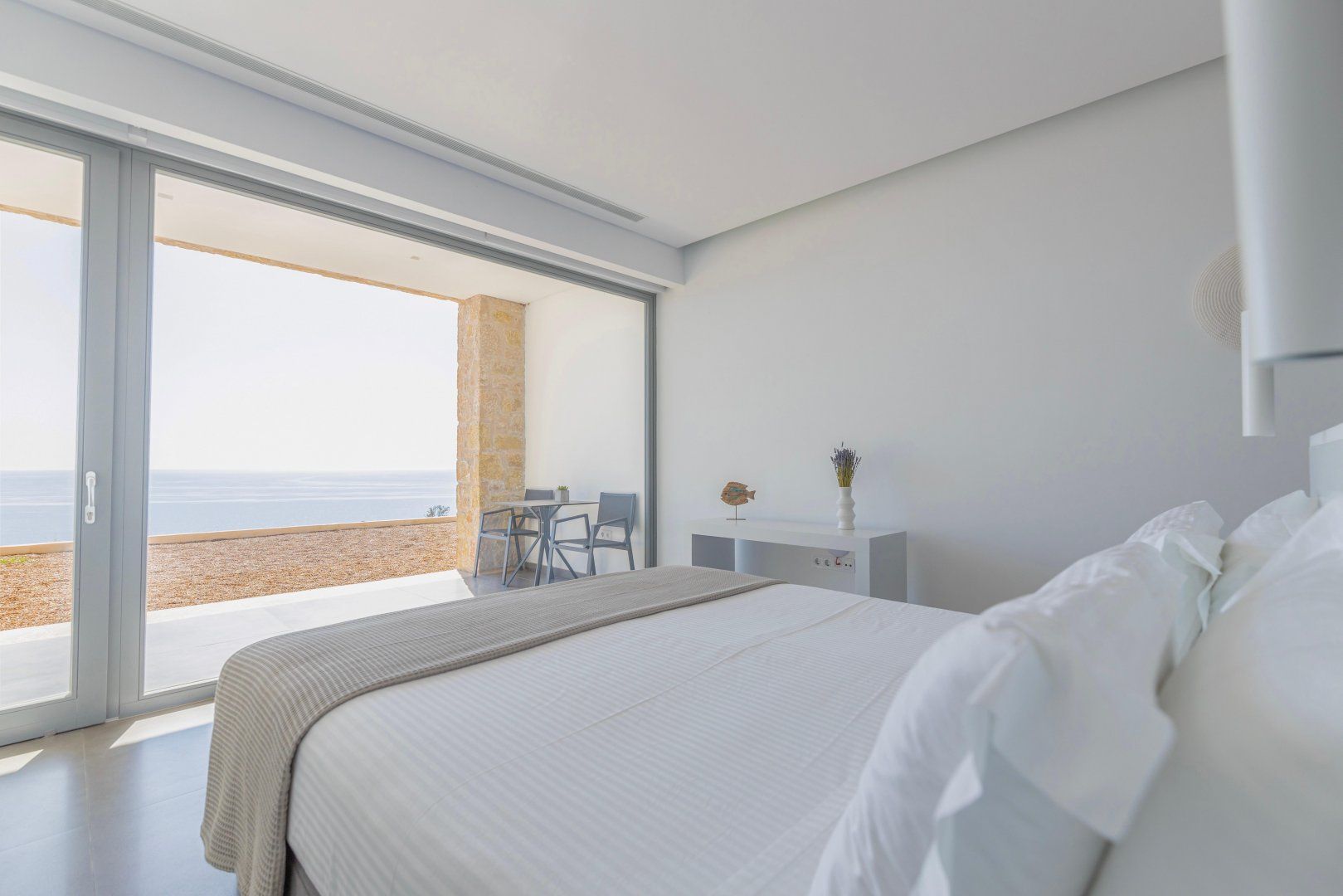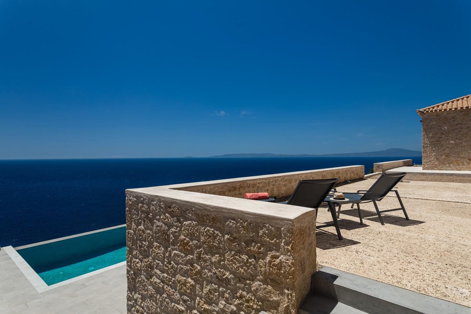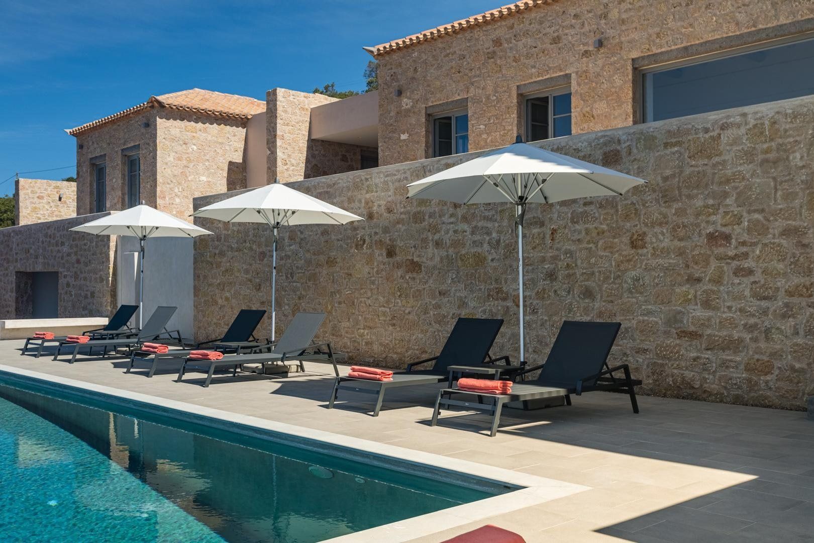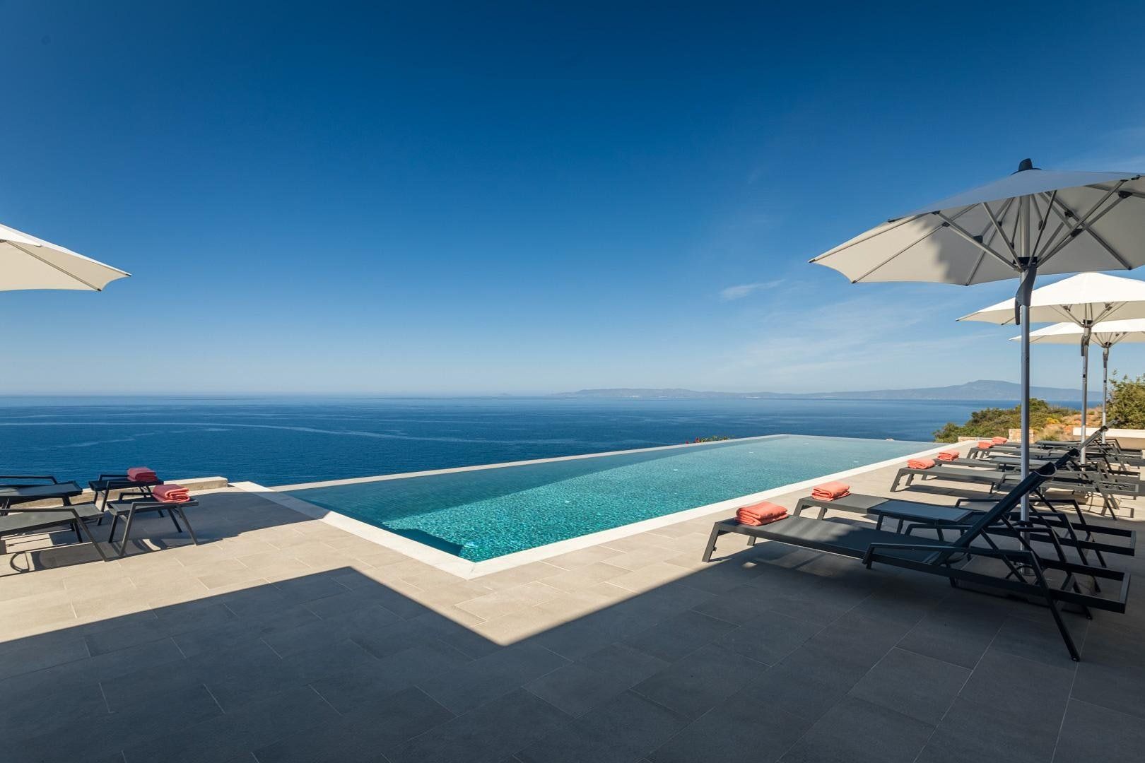 When you're not lounging poolside with the Grecian heat on your skin, hang out indoors and hit the air-con switch. Your hosts have opted for clean, contemporary decor that lets the outside in through floor-to-ceiling windows. Both of the sitting rooms and two double bedrooms look directly onto the expanse of sea, cradled by low hills on either side.