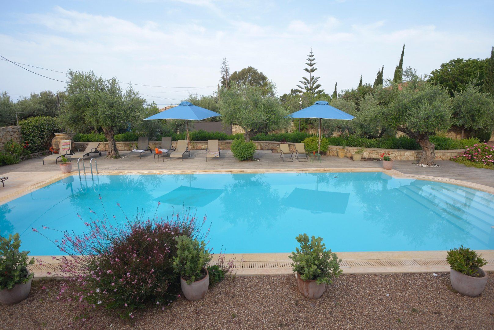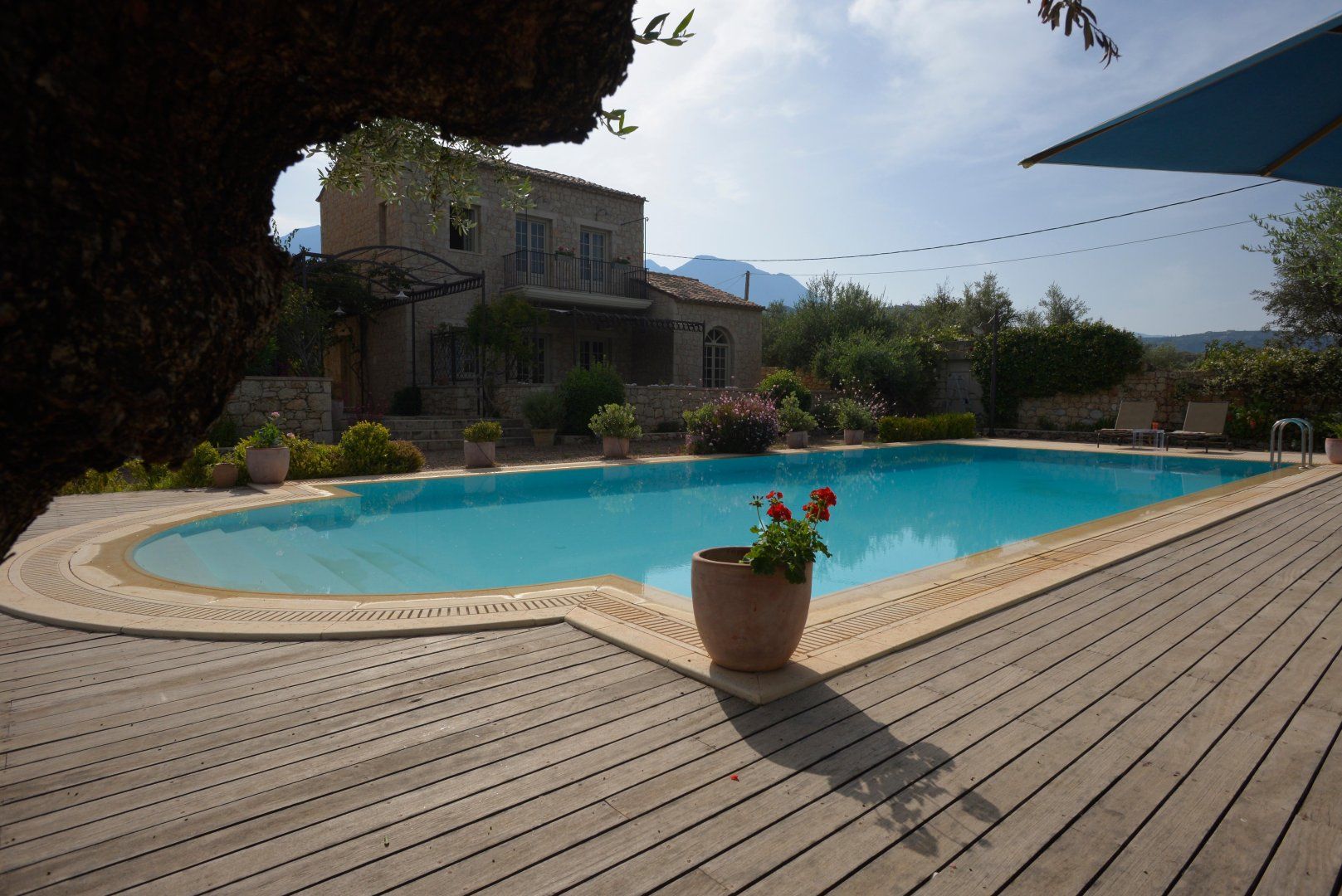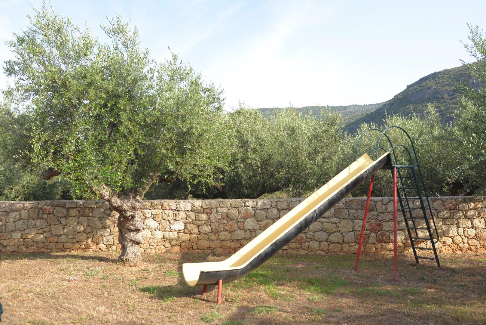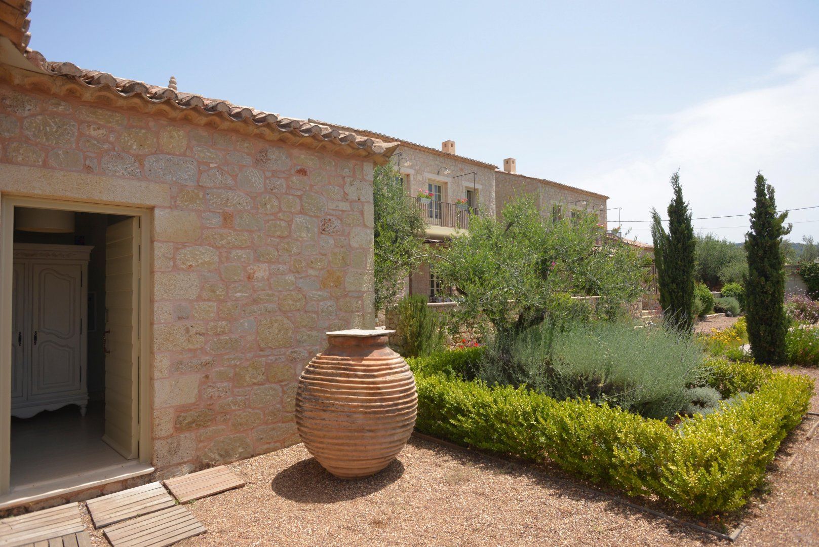 Two handsome villas made from local Mani stone and Byzantine tiles stand side by side at the centre of the plot, separated by a picturesque foliage-covered pergola leading to the garden. Out here, you'll find a long swimming pool, as well as plenty of loungers with views of the Greek countryside. Add to this a stone barbecue and a children's play area, and it's not hard to see where summer afternoons will be passed.
