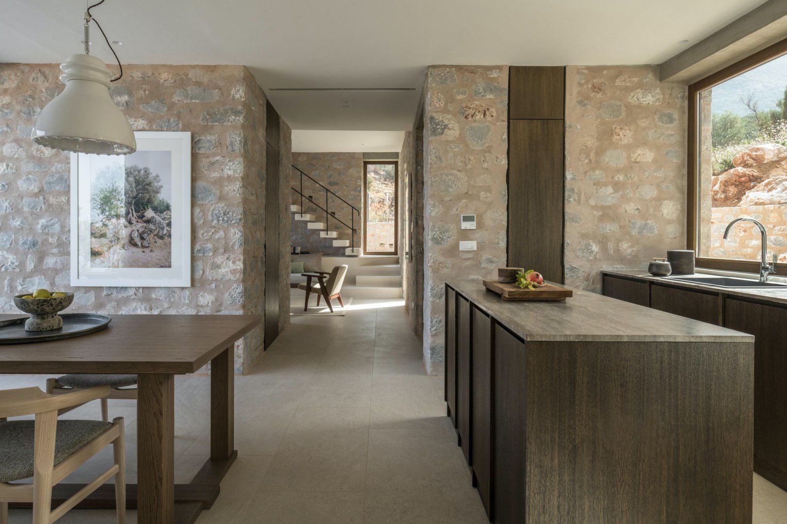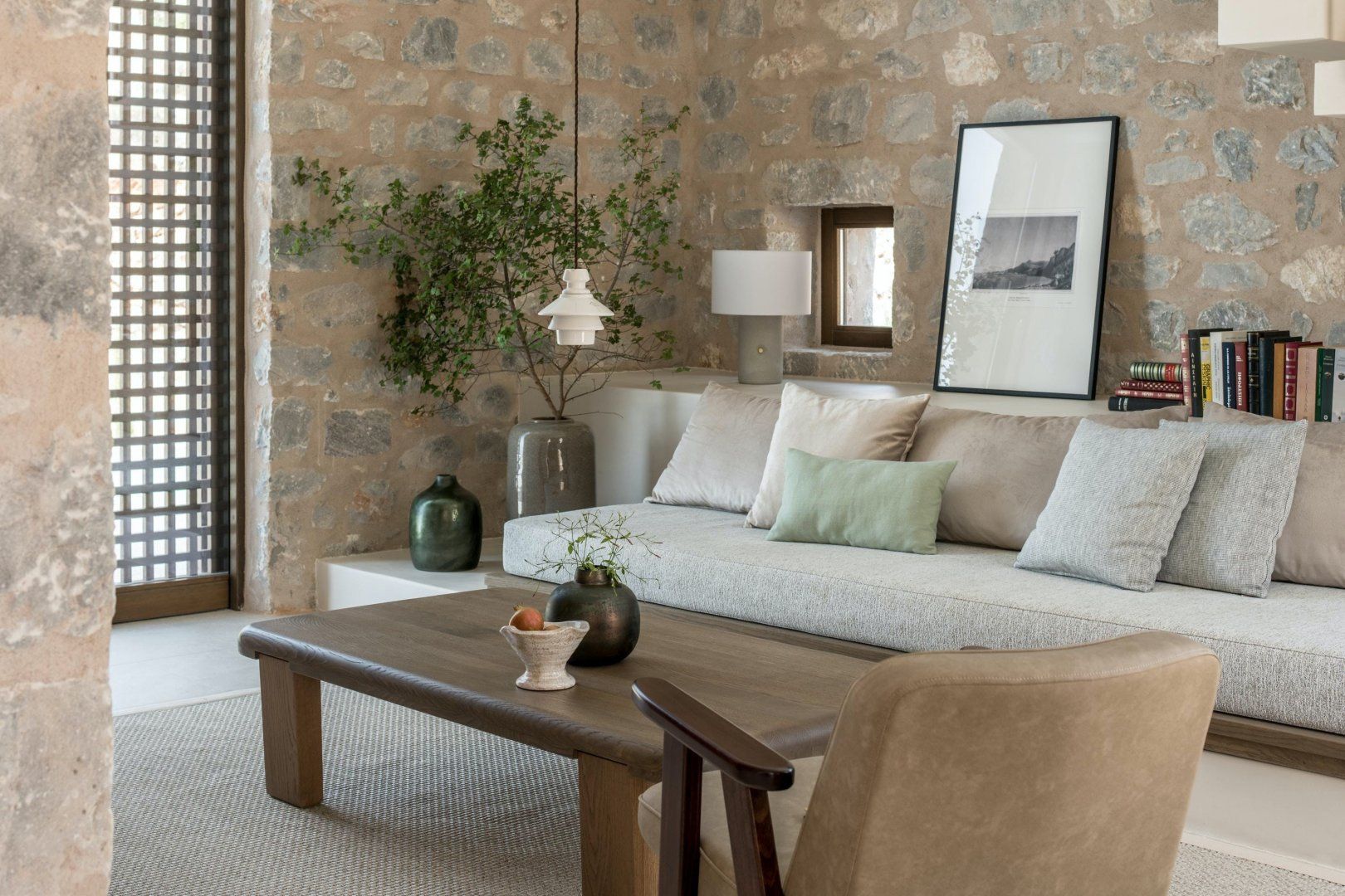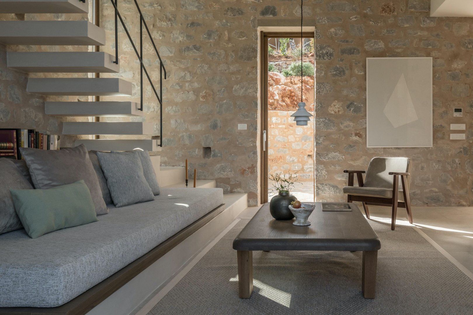 This modern stone villa makes an instant impression. Situated in a holiday complex in Lefktro, overlooking the rugged landscape of West Mani, this villa is an idyllic spot for friends or family to spend quality time. You’ll need a car here to access Pantazi Beach and the mountainous village of Pigi – there’s parking for you here. The complex has been celebrated in several architectural features, which is clear from the contemporary designs and thoughtful use of space. We love the central cantilever staircase, the sunken terrace that merges with the infinity pool and the sleek interiors – it’s a unique spot to share Greek feasts and while away the days under the Ionian sun.