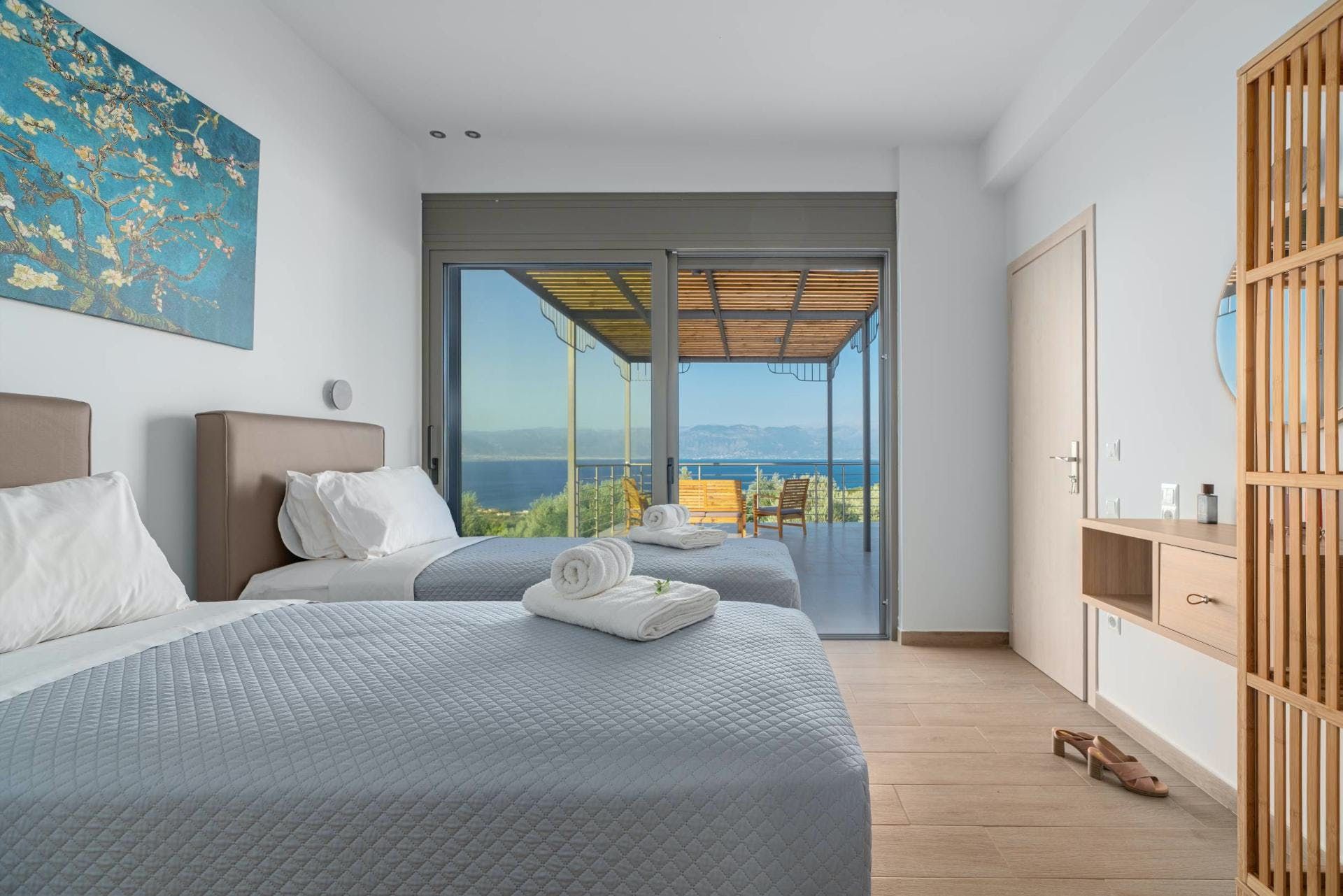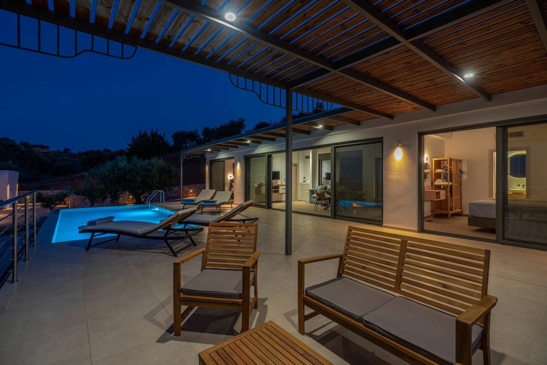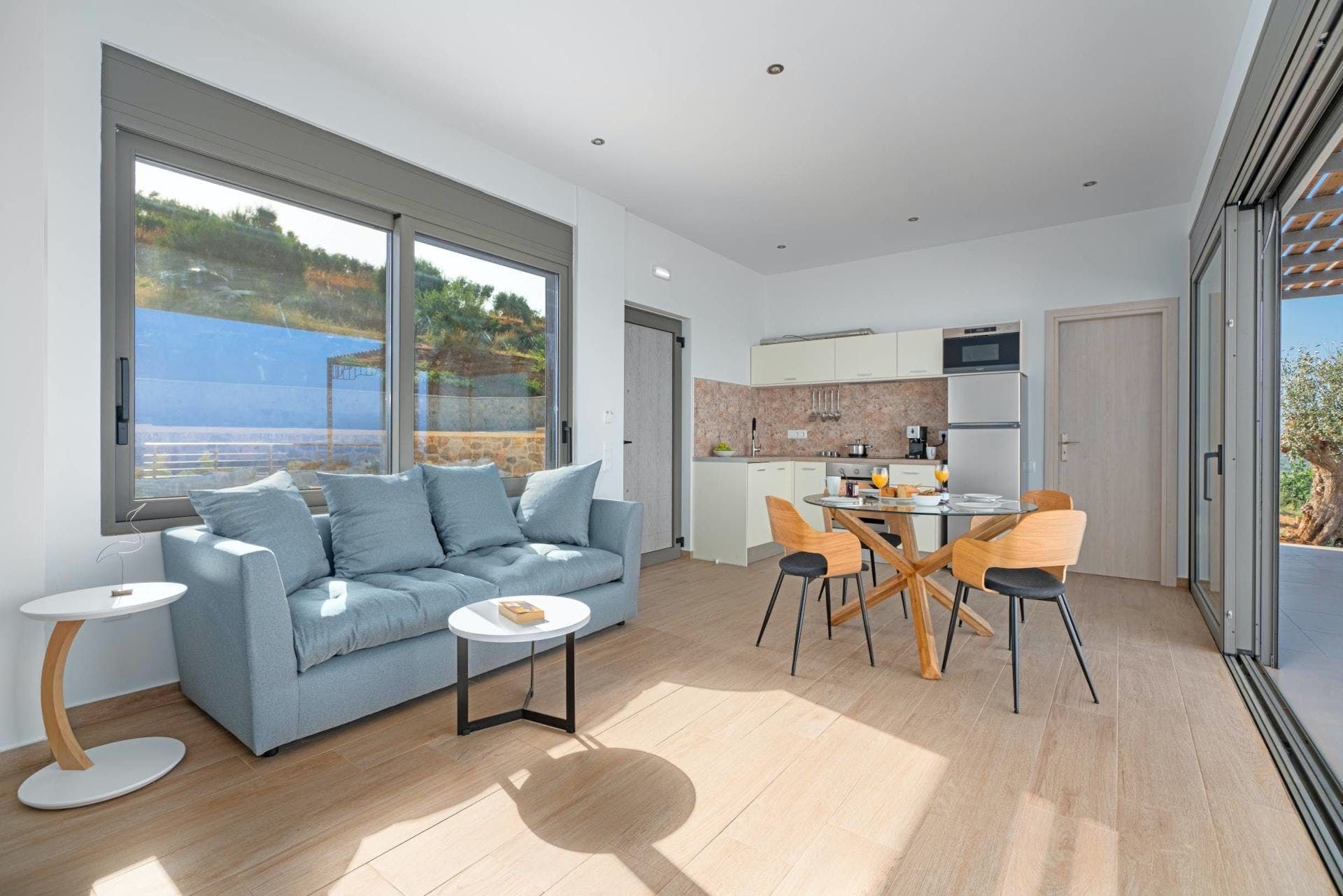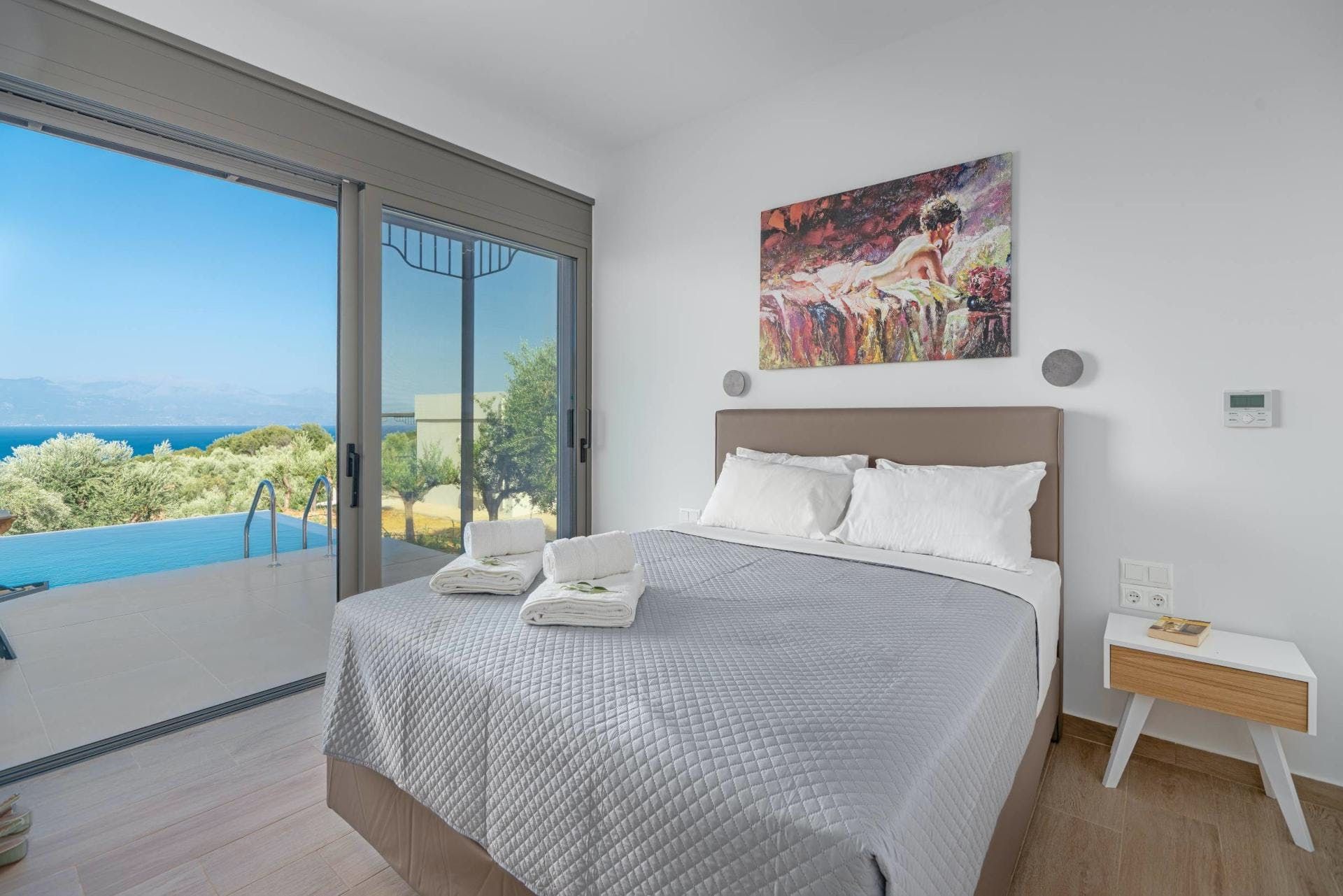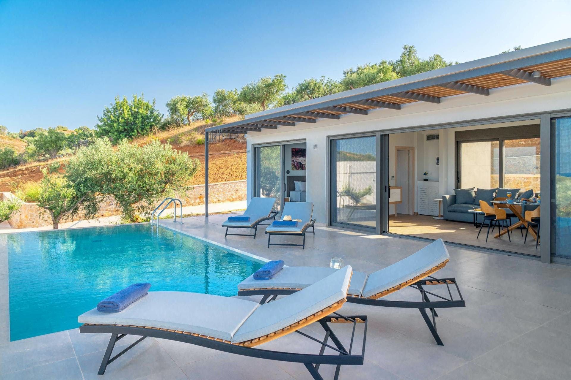 With sweeping sea views, this home has rest and relaxation at its core. Set on one level, a group of four fits comfortably here, and with both bedrooms boasting en-suites, there won’t be a queue for the bathroom in the mornings. After time spent cooling off in the private infinity pool, head to Petalidi (a ten-minute drive away) to sample some Greek cuisine in one of the many friendly tavernas. Before heading home, you’ll find the weekly market close to the beach – well worth a visit to stock up on some local delicacies.