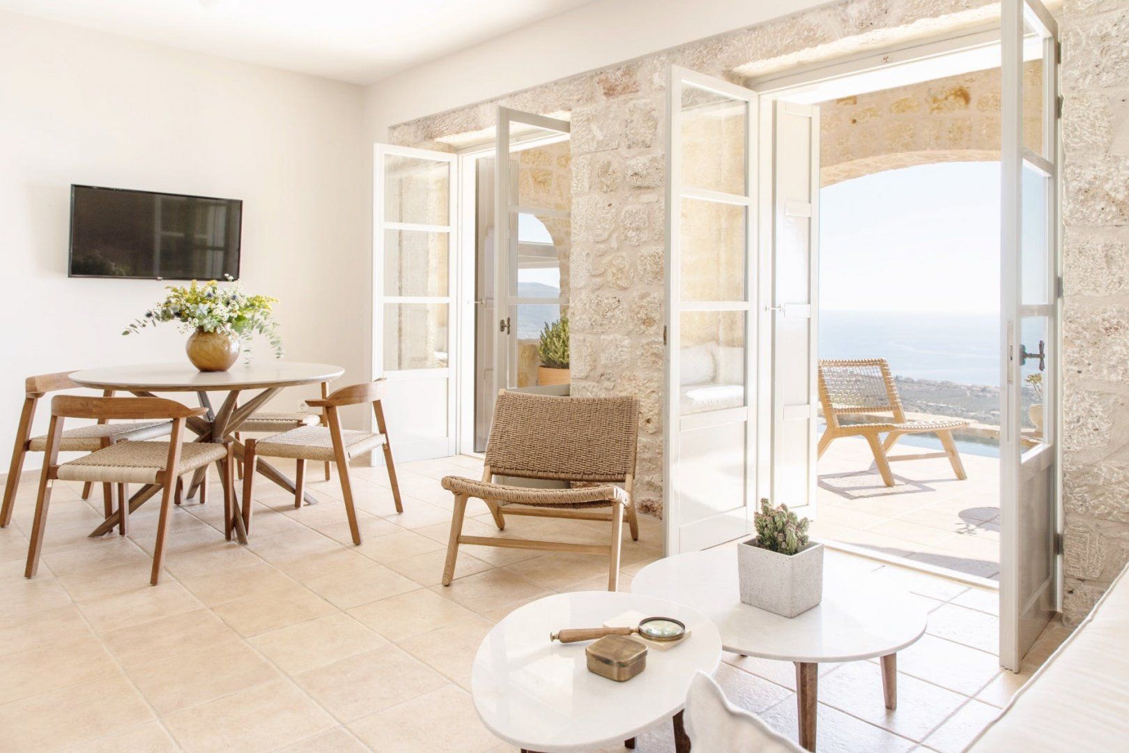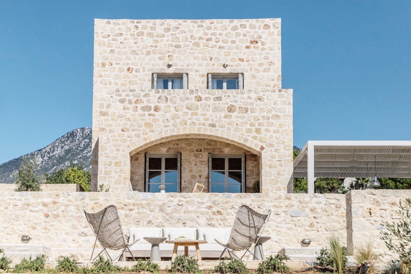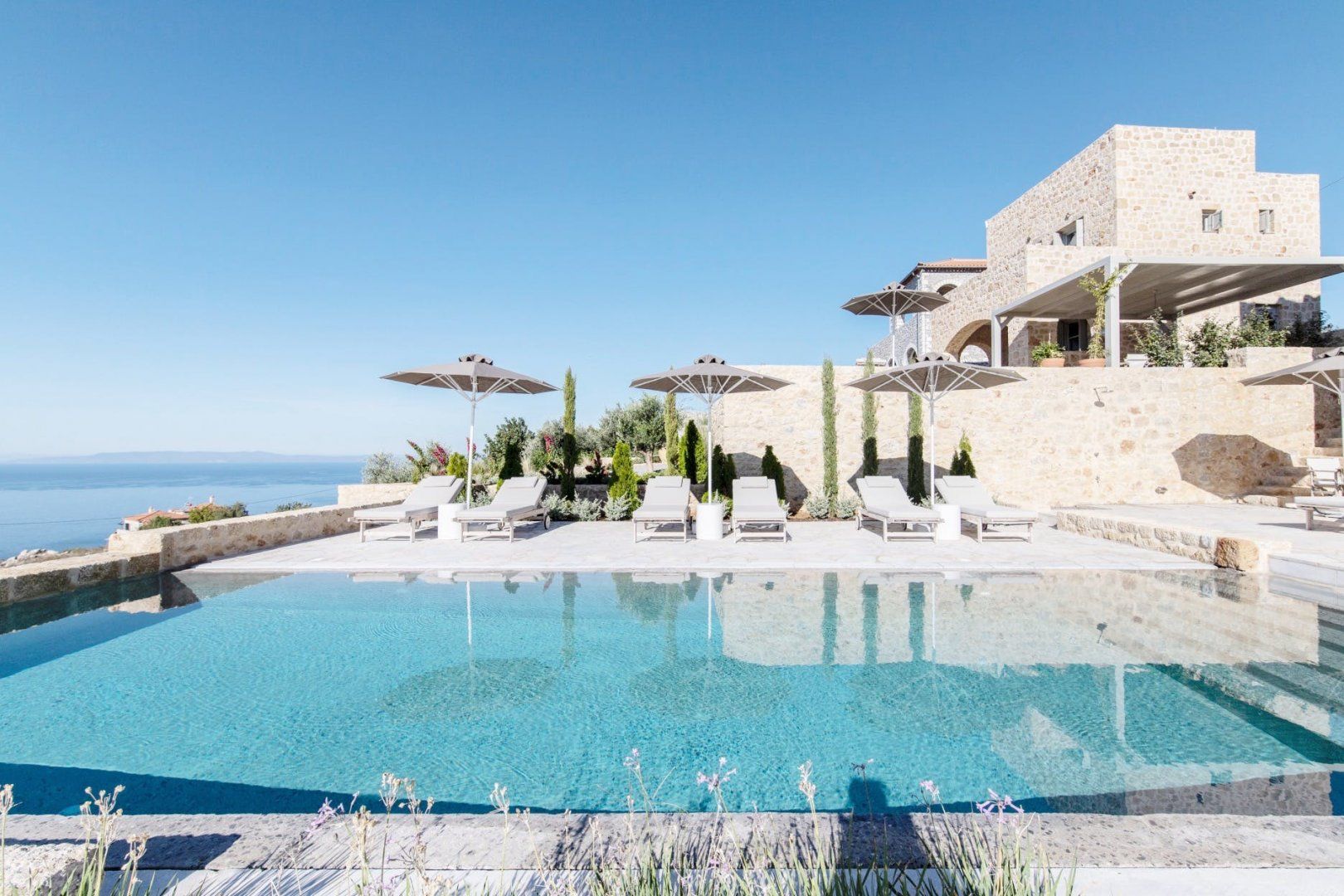 Looking like something out of a travel magazine, this modern accommodation's natural colour palette and minimal decor style isn't even the best bit when it has views of the Messinian Gulf to compete with. Drink them in from the private swimming pool or have your pick at the outdoor seating – there's a nook for everything from sunbathing to alfresco dining. And though the standout location might've drawn our eye, we also like the flexibility here – with two villas at your disposal, each with its own living, dining and kitchen spaces, it gives the entire family a little more space and privacy. Find Stoupa Beach and Neochori village, a short drive away.