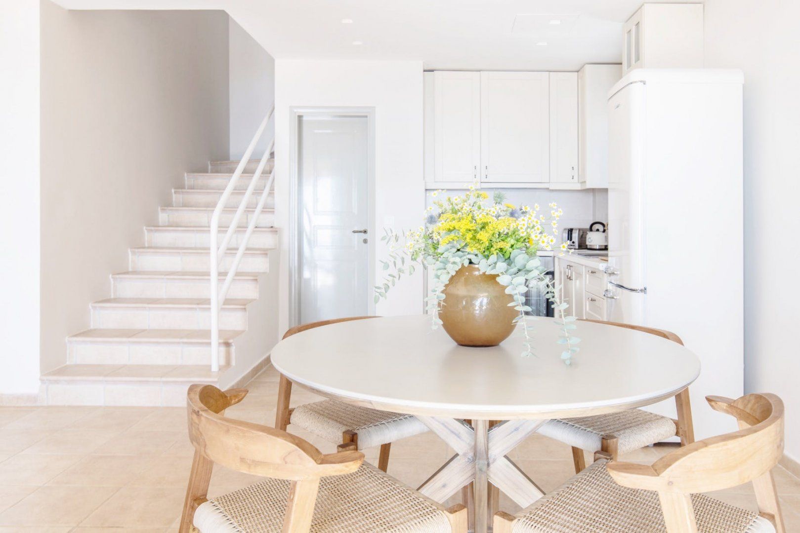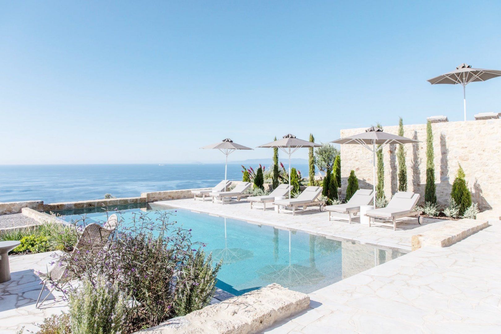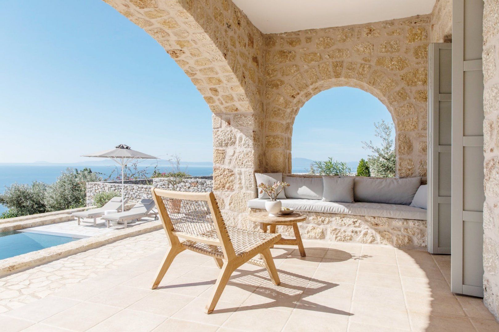 Looking like something out of a travel magazine, this modern accommodation's natural colour palette and minimal decor style isn't even the best bit when it has views of the Messinian Gulf to compete with. Drink them in from the private swimming pool or have your pick at the outdoor seating – there's a nook for everything from sunbathing to alfresco dining. And though the standout location might've drawn our eye, we also like the flexibility here – with two villas at your disposal, each with its own living, dining and kitchen spaces, it gives the entire family a little more space and privacy. Find Stoupa Beach and Neochori village, a short drive away.