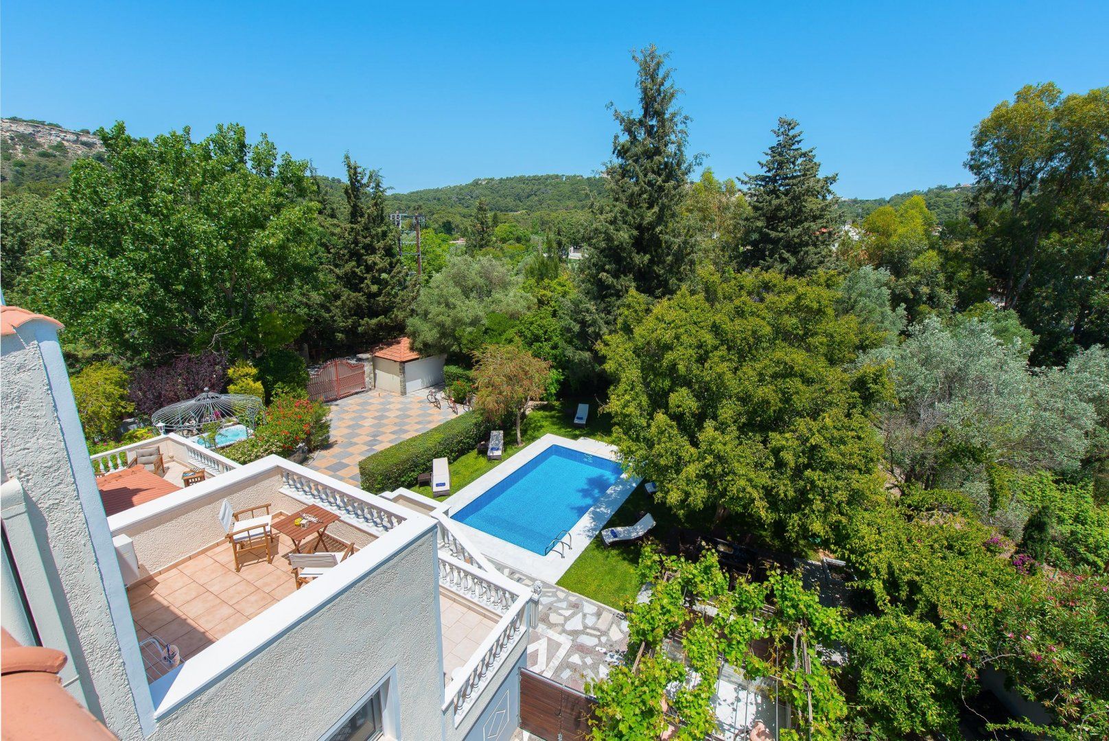 Surrounded by towering trees and out in the quiet hills beyond Rhodes Town, this villa is a shining example of relaxation and calm. The medieval streets and sights of Rhodes Town is 7km away, and a day at the beach awaits just 3km away at Ialisos.