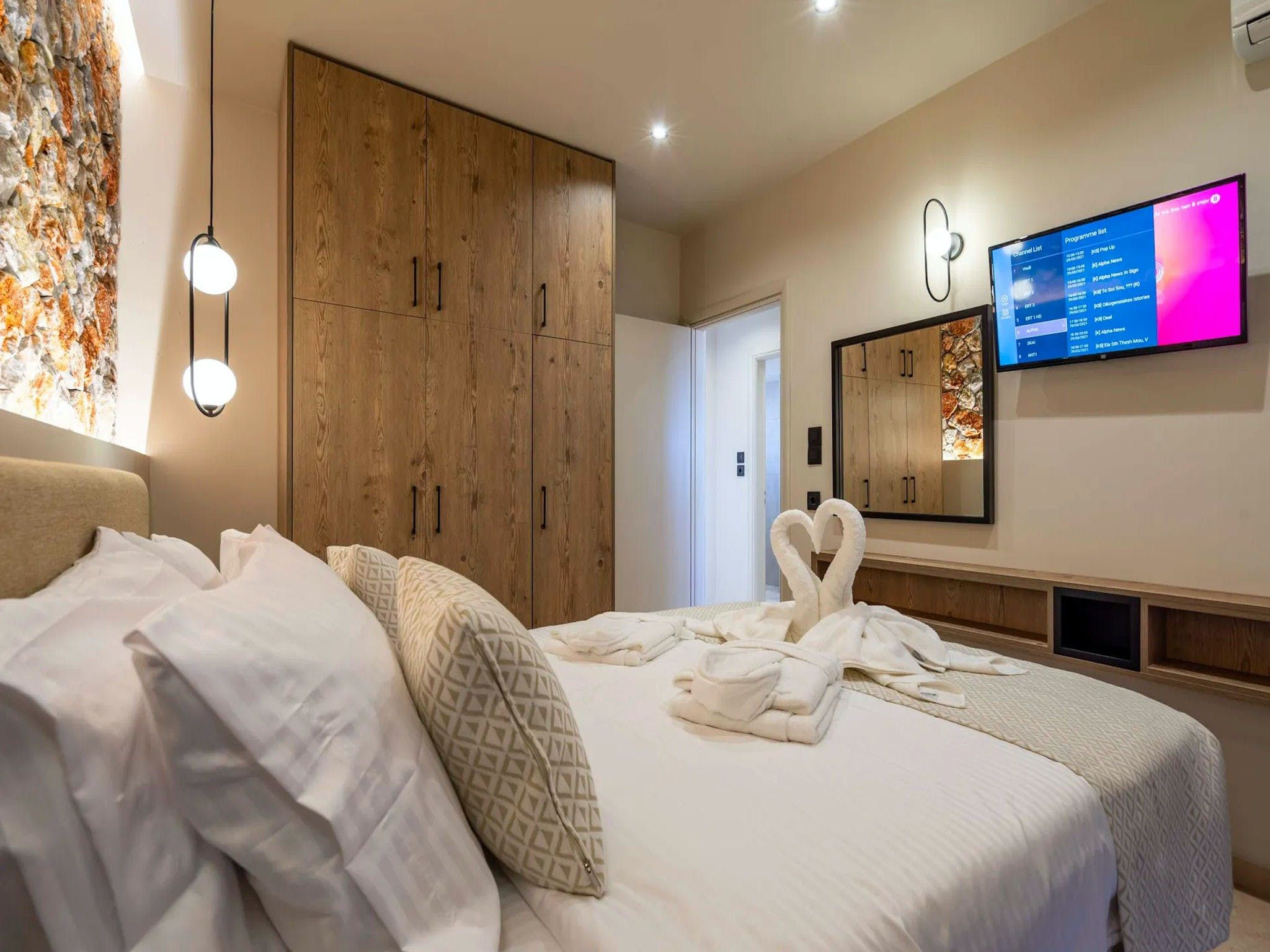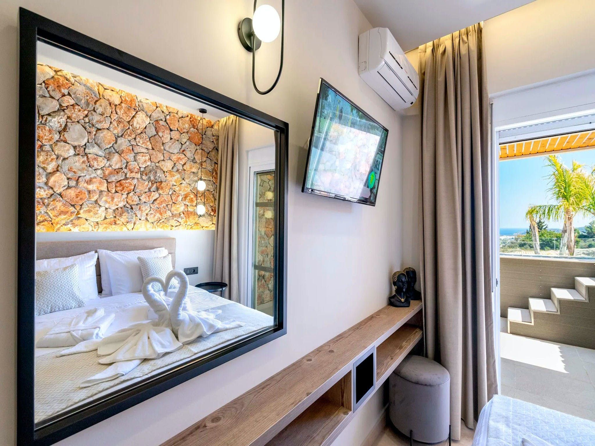 Premium Luxury Villa with Private Pool at Venezia Luxury Living is situated on Faliraki Hill overlooking the blue Aegean Sea. Featuring a balcony with pool views and a private jacuzzi, this villa provides the ultimate relaxation experience. Inside, you'll find two charming bedrooms, a cozy living room with flat-screen TVs, and a fully equipped kitchen suitable for up to 4 people. The villa also boasts an outdoor swimming pool, perfect for swimming under the Greek sun, and an outdoor BBQ area for delightful meals al fresco. This luxurious property is part of a family-owned complex that focuses on privacy, serenity, and offering exceptional amenities. With free Wi-Fi and private parking included, enjoy a memorable stay at one of Rhodes' most enchanting getaways.