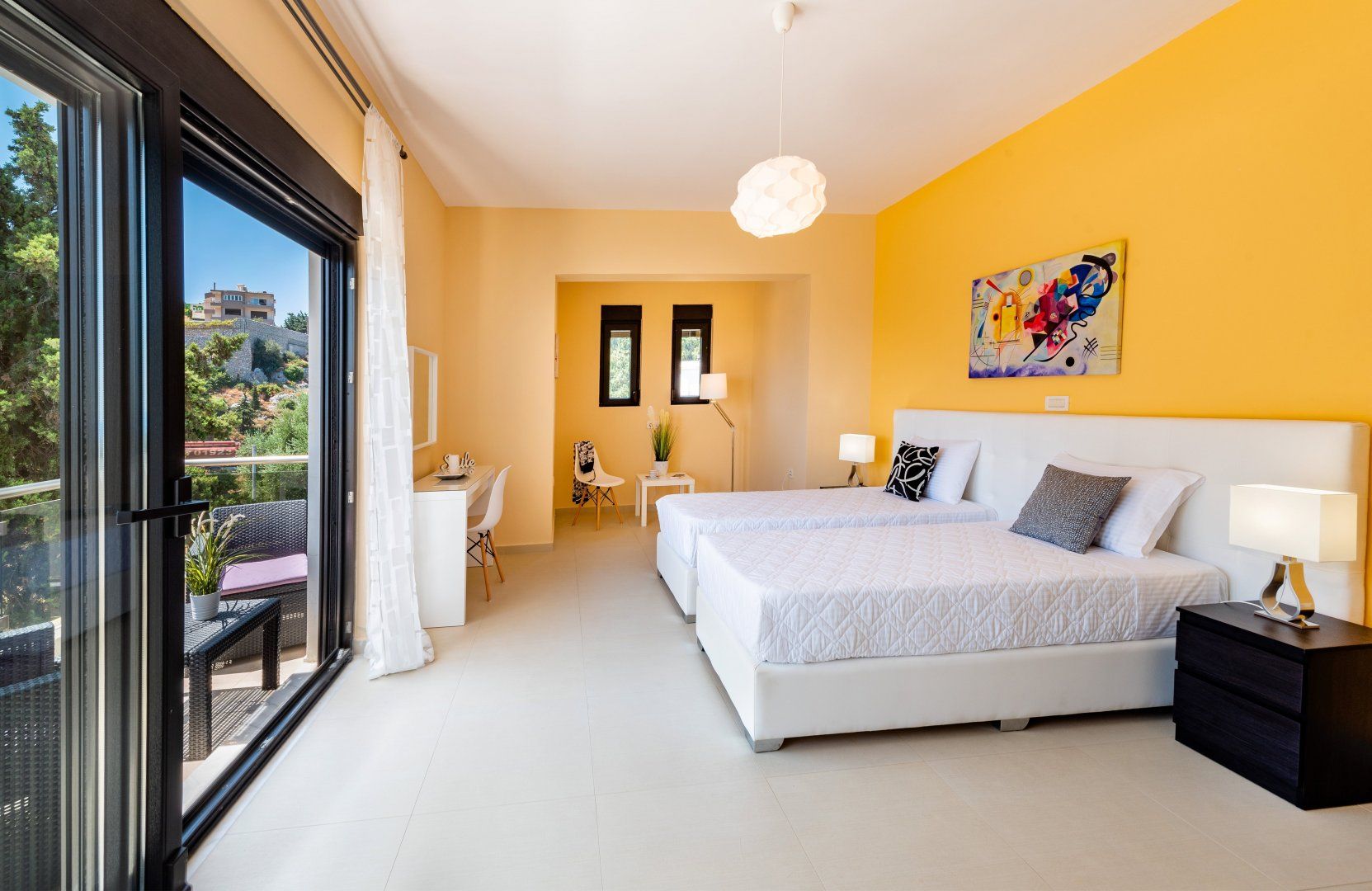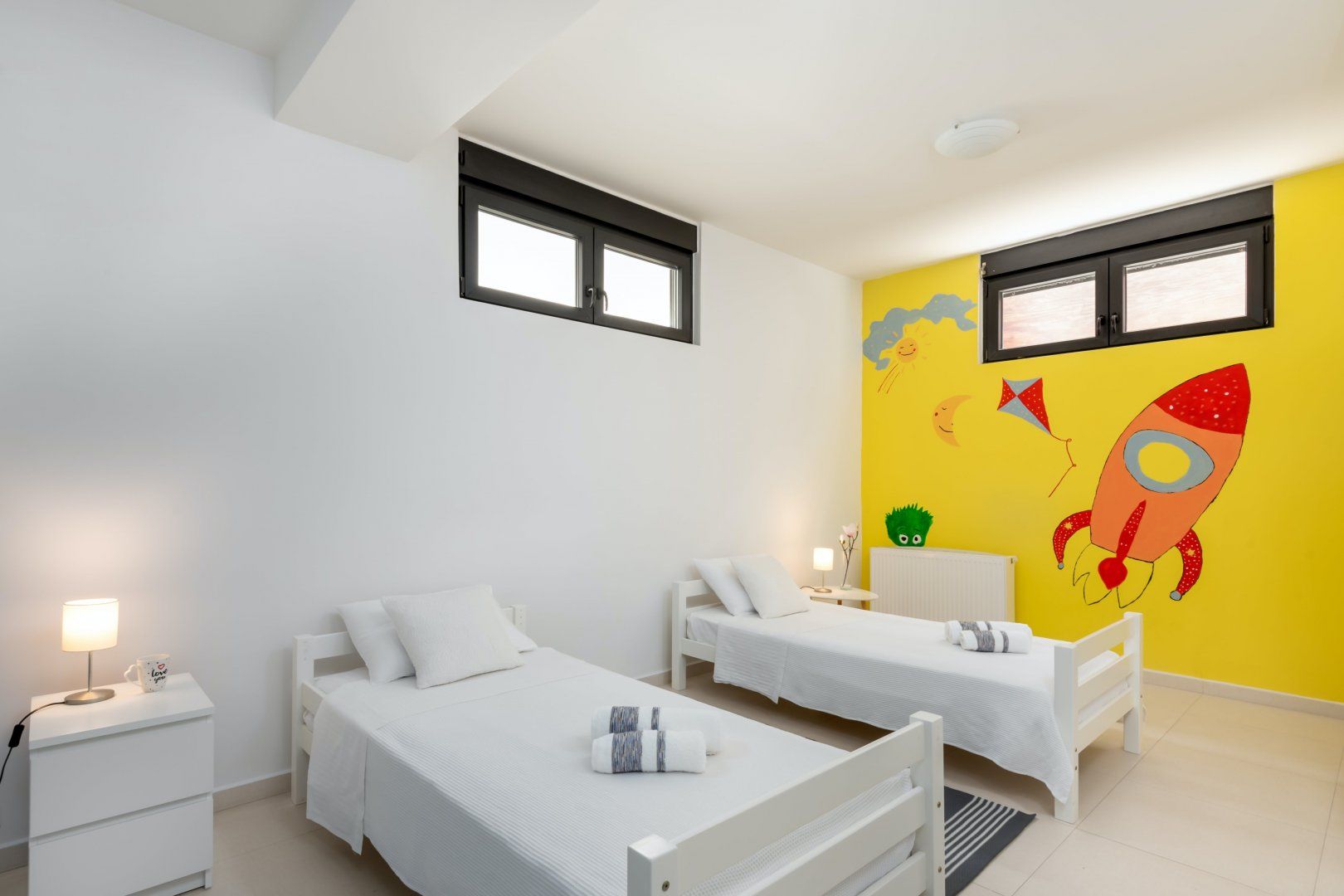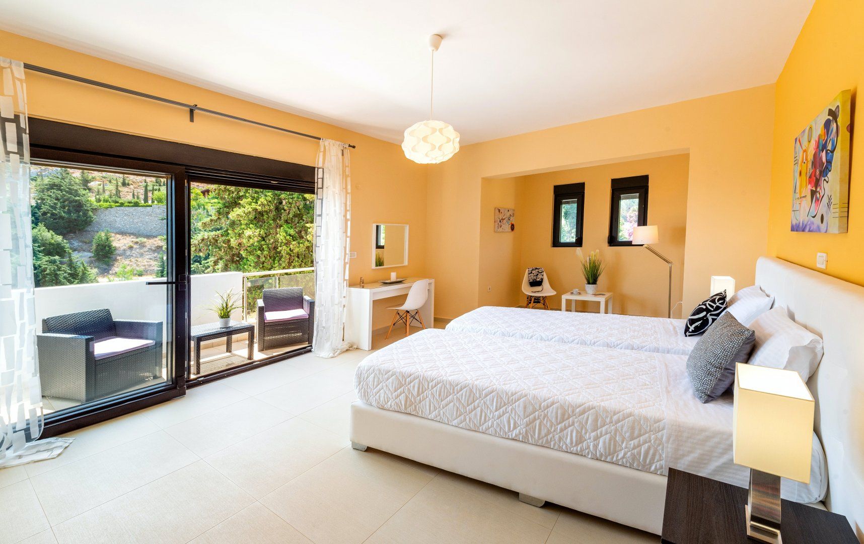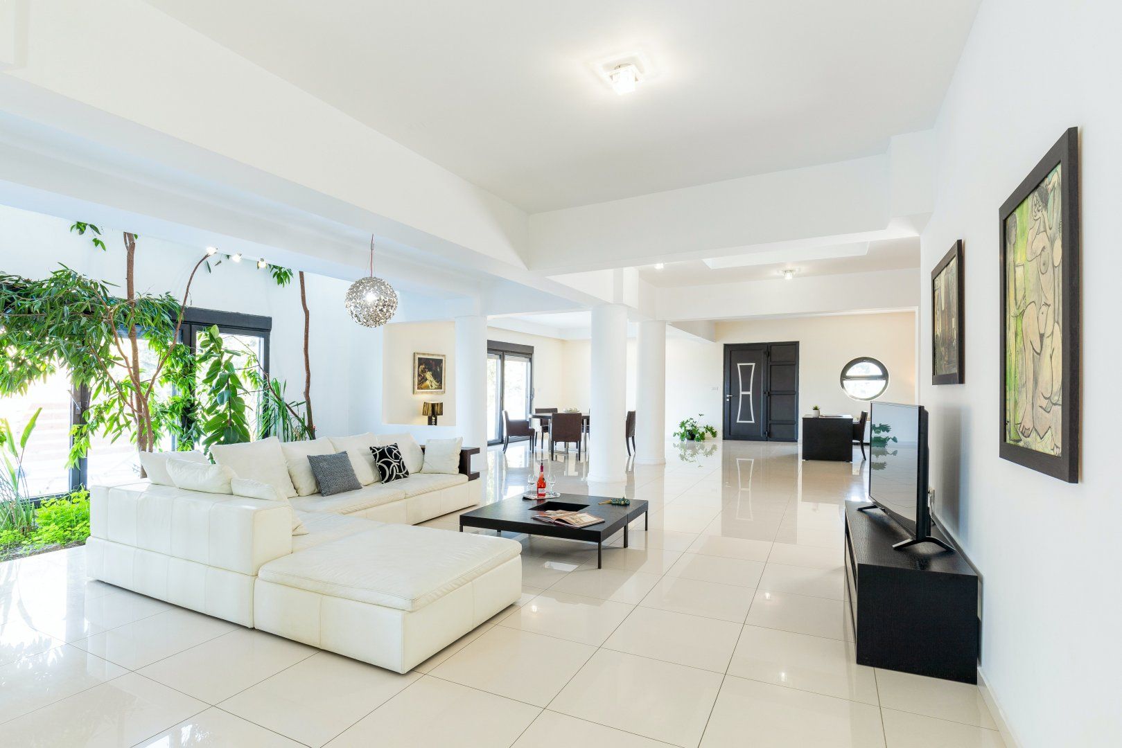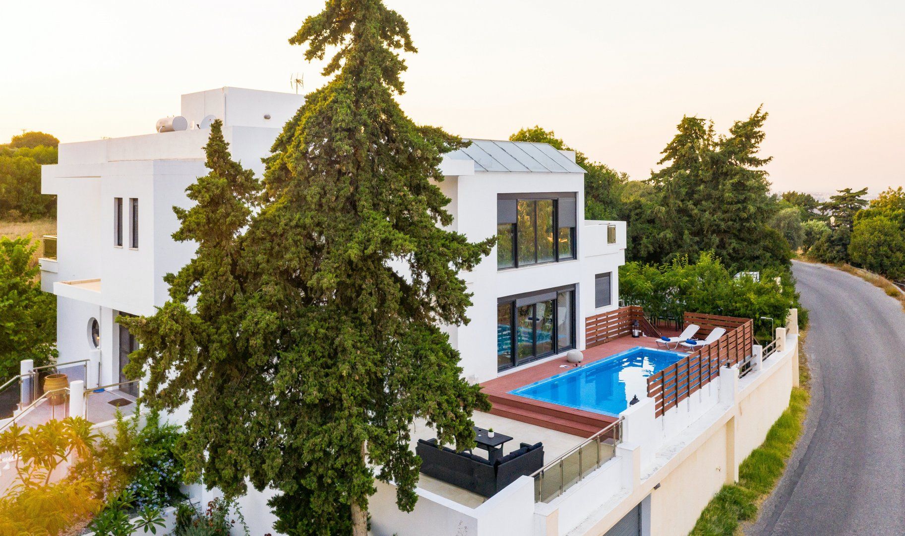 Melograno Villa is a magnificent property located in the charming village of Koskinou, Rhodes. Offering breathtaking views of the sparkling sea, this villa provides the ideal escape for up to 10 guests. Step inside and discover spacious and elegantly designed interiors, exuding a warm and welcoming atmosphere. With five beautiful bedrooms, including three ensuite bathrooms, you'll have plenty of space to relax and unwind. Enjoy the fully equipped kitchen, two inviting living rooms, library, gym area and game console. Outside, the large well-tended gardens surround the stunning pool area, complete with parasols and sun beds. Indulge in outdoor relaxation on the spacious verandas or gather around the BBQ installation in the garden for a unique dining experience. Koskinou village is conveniently located near Rhodes town and major attractions such as Kallithea Springs and Lindos acropolis. Experience a truly unique holiday at Melograno Villa.
