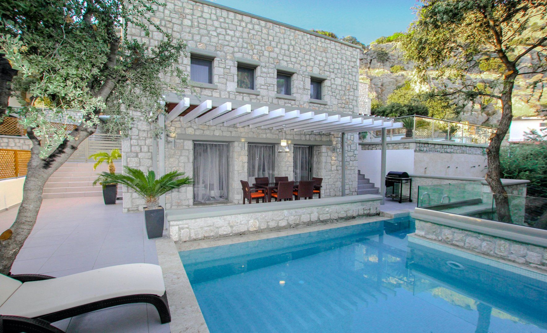 Set just 150 metres from the beach and with the bustle of Pefkos Village all within walking distance, the location of this charming villa on the eastern coast of Rhodes is spot-on. Inside, the interiors may feel a little pared back for some, but the exposed stonework is a lovely, characterful touch. When you’re not down at the beach, you’ll love the small but beautifully formed pool with views of the sea for a cooling dip and shady terraces beneath the mature olive trees.