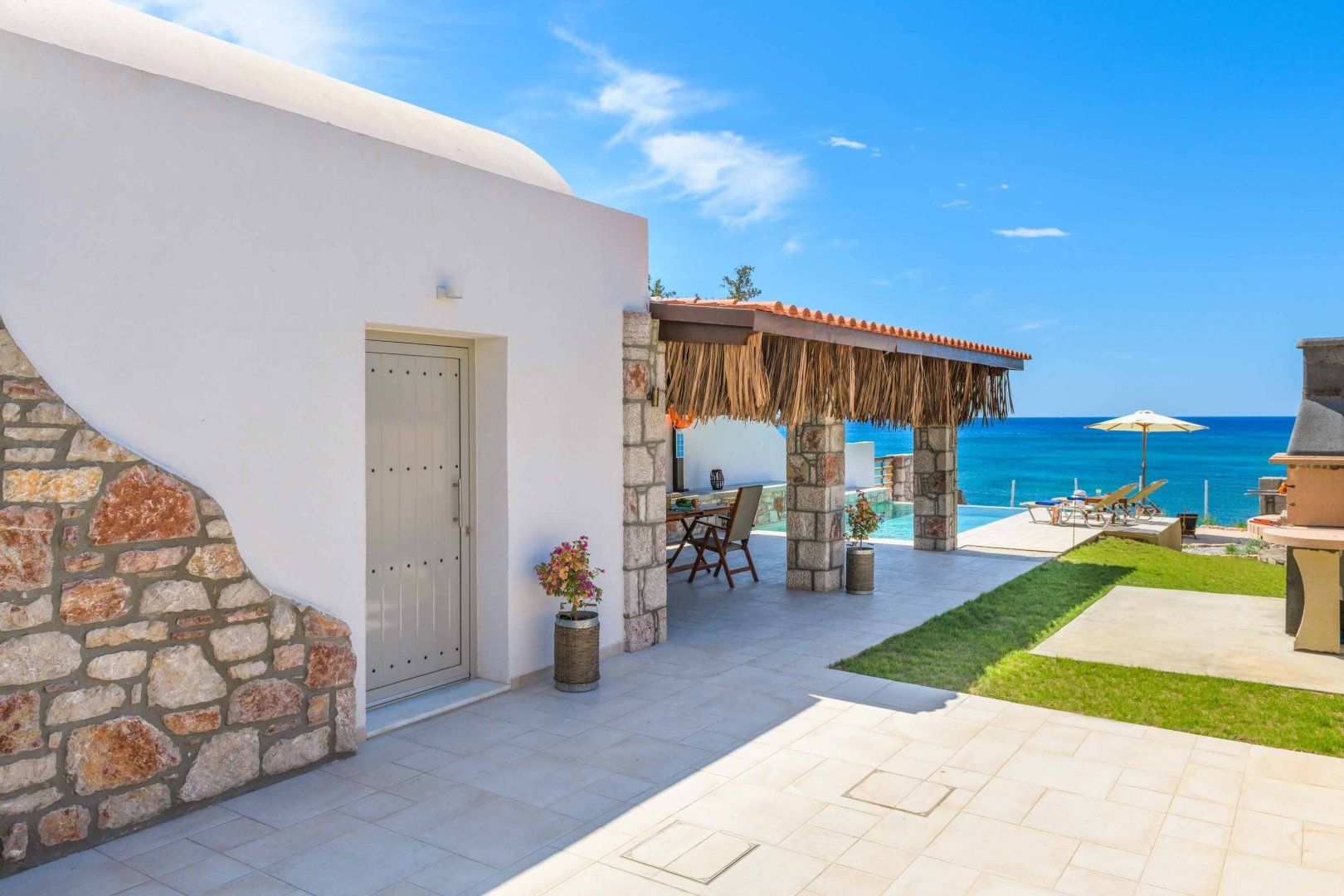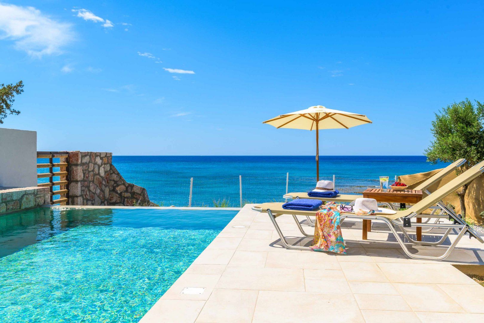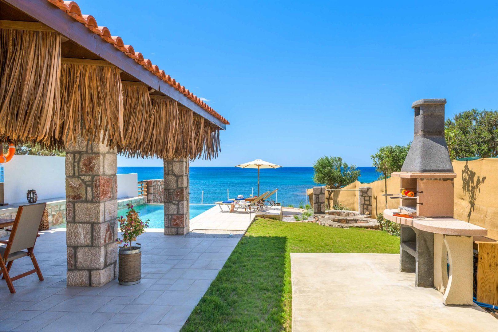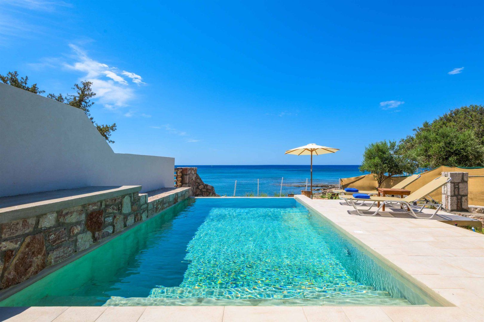 Just a stone's throw from the beach and a short taxi ride from the resort of Pefkos, this villa offers unbeatable views. A little on the small side, you won't find a living room in this home, but the private pool and rich outdoor space more than make up for it. The terrace offers plenty of shade and comfy seating with dining tables both indoors and out, and you'll find plenty of space to sunbathe. Inside, the kitchen is very compact, but you'll be a few minutes walk from some great local restaurants.